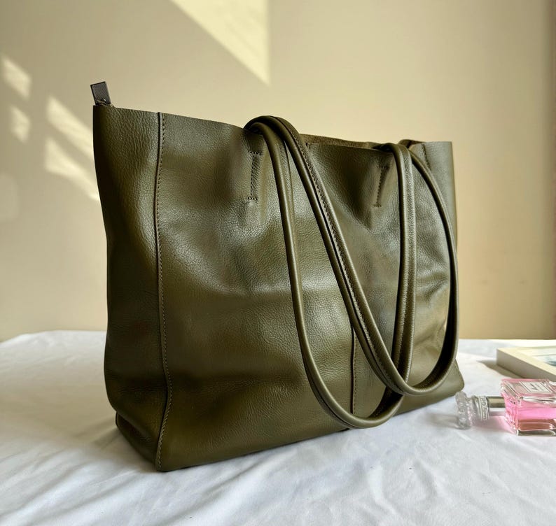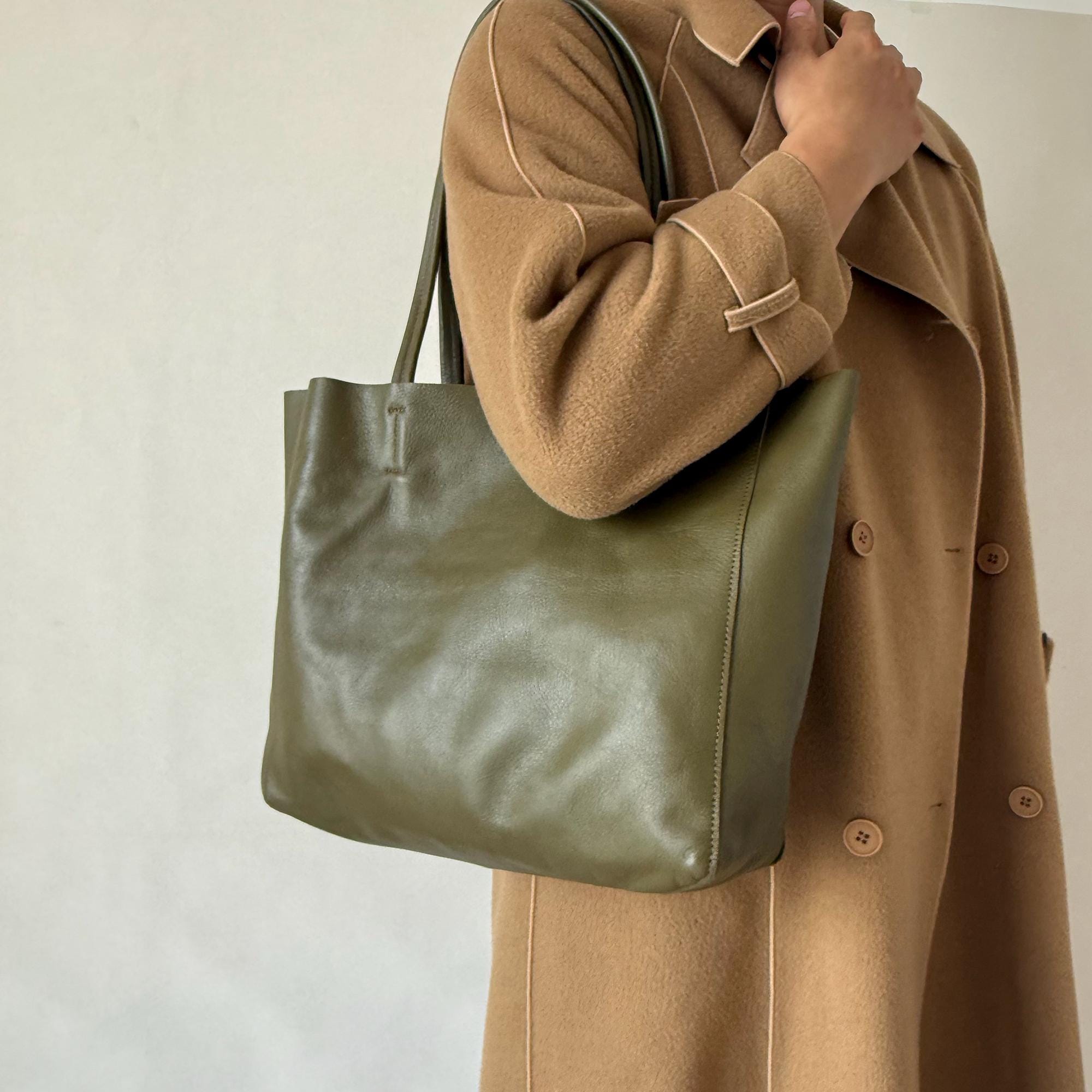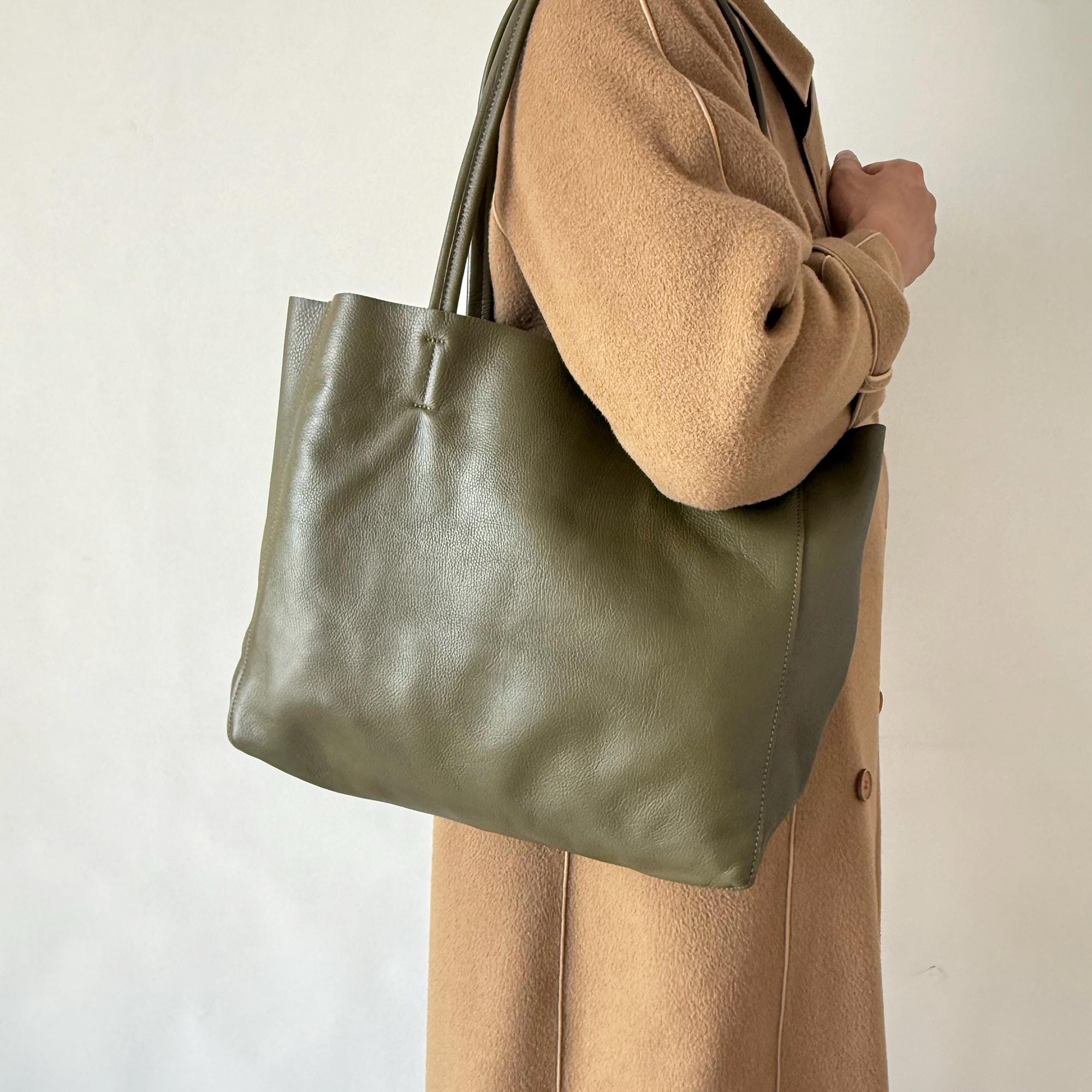 This tote pairs seamlessly with a blazer and trousers for a polished office look, a sweater and jeans for a cozy casual vibe, or a midi dress for a relaxed brunch outfit. Its muted olive hue elevates any ensemble, transitioning effortlessly between work, daily life, and casual events.