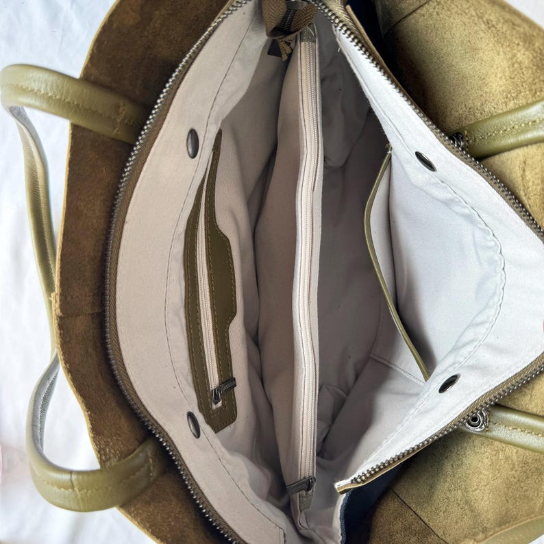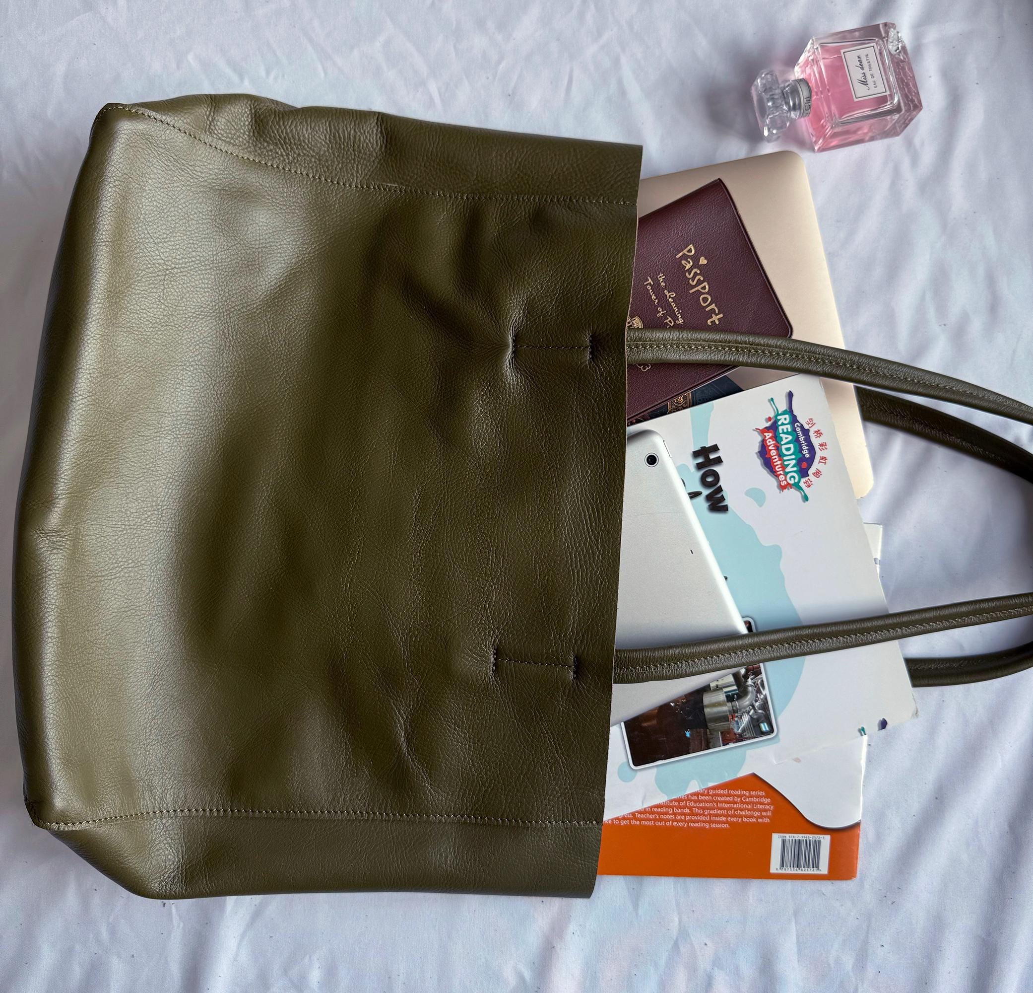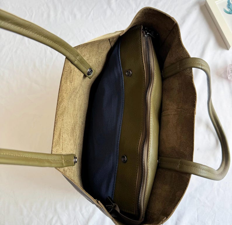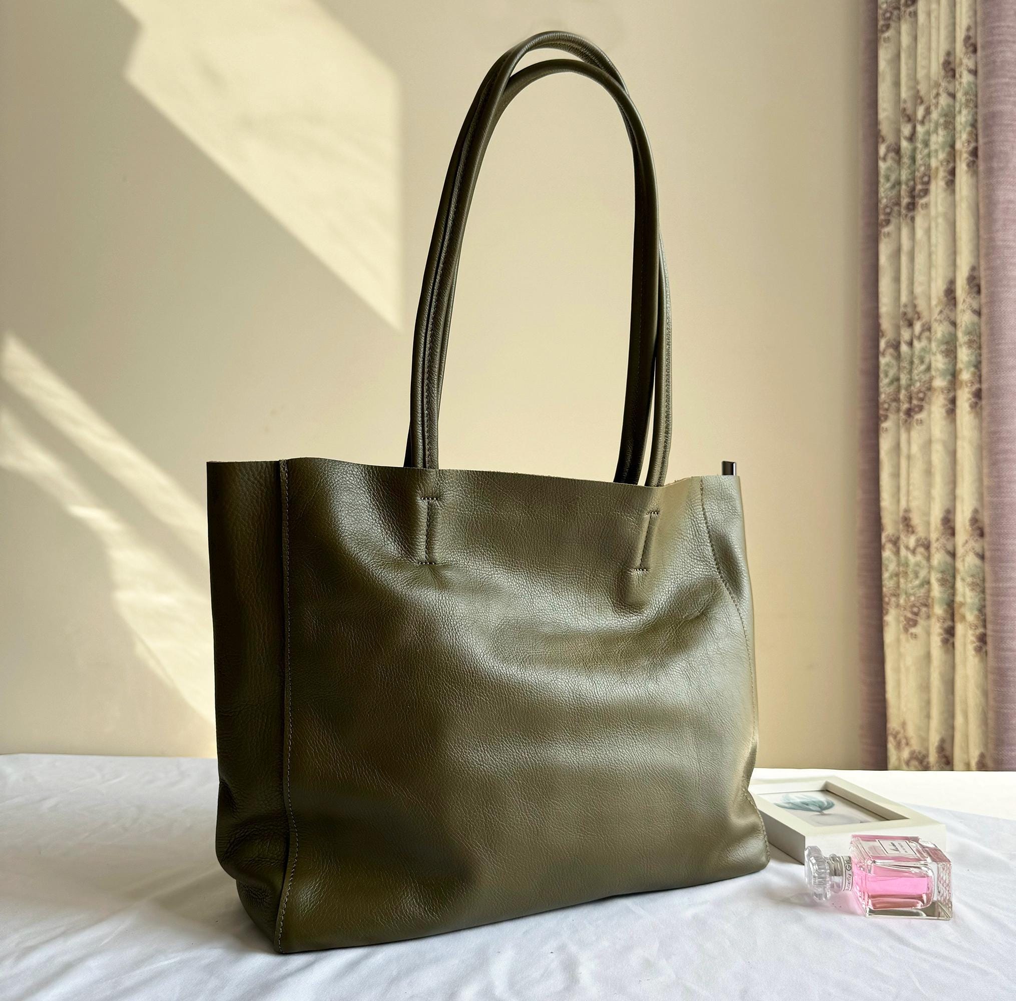 This tote pairs seamlessly with a blazer and trousers for a polished office look, a sweater and jeans for a cozy casual vibe, or a midi dress for a relaxed brunch outfit. Its muted olive hue elevates any ensemble, transitioning effortlessly between work, daily life, and casual events.