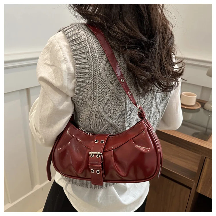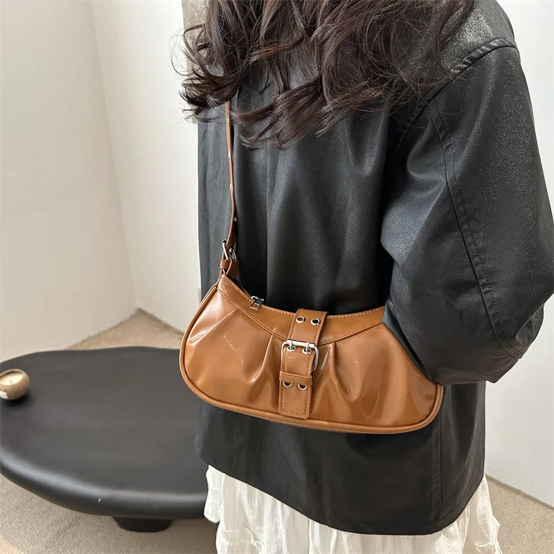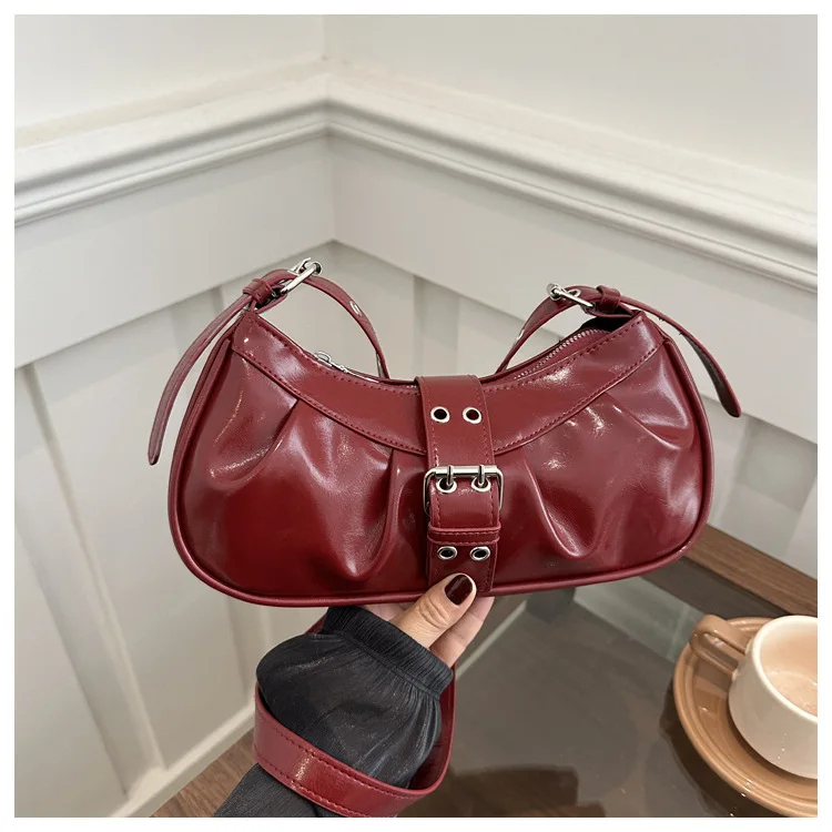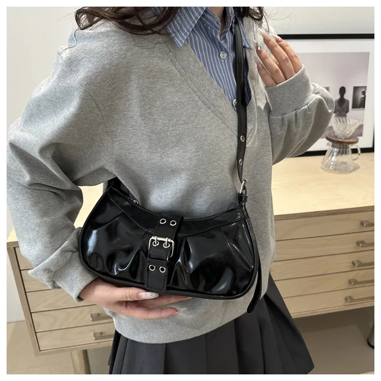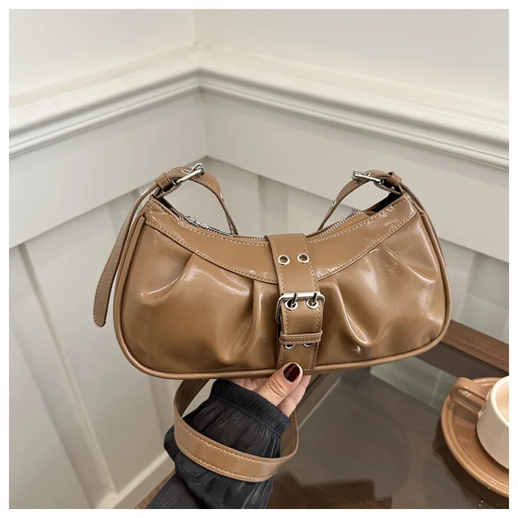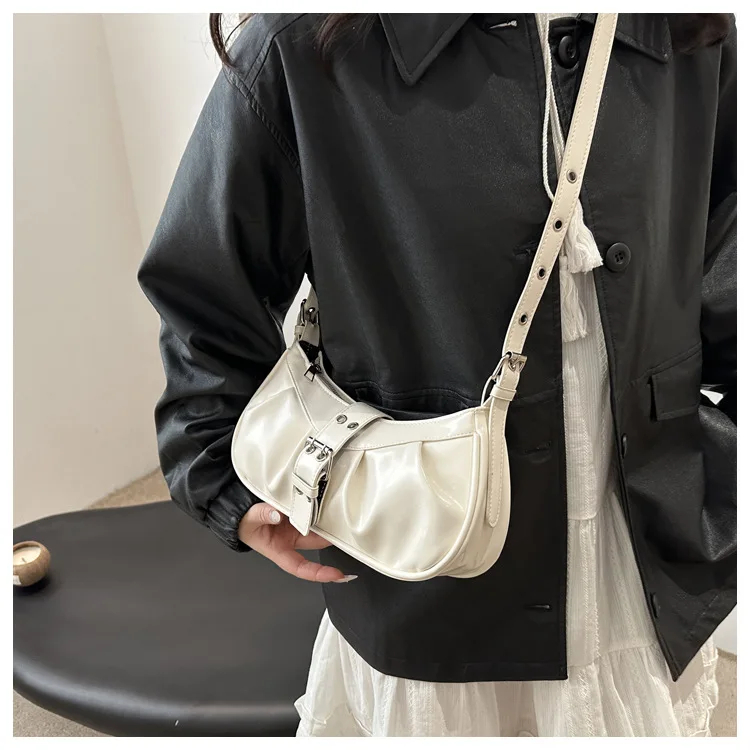 Chic Buckle Accent: Elevate your ensemble with the bold metallic buckle detail and gathered texture. These eye-catching elements enhance the bag’s trendy, retro-inspired flair while keeping the design cohesive, making it a standout accessory for everyday looks.