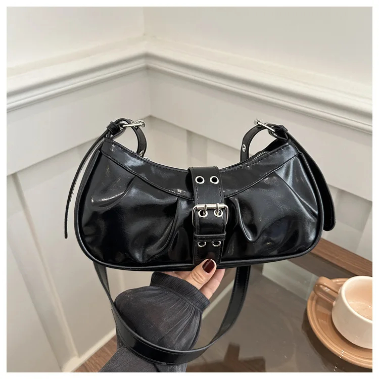 Retro Designer Buckle Armpit Bag Pu Leather Gothic Shoulder Bag Vintage Cross Body Spicy Girl Handbag Female Purses