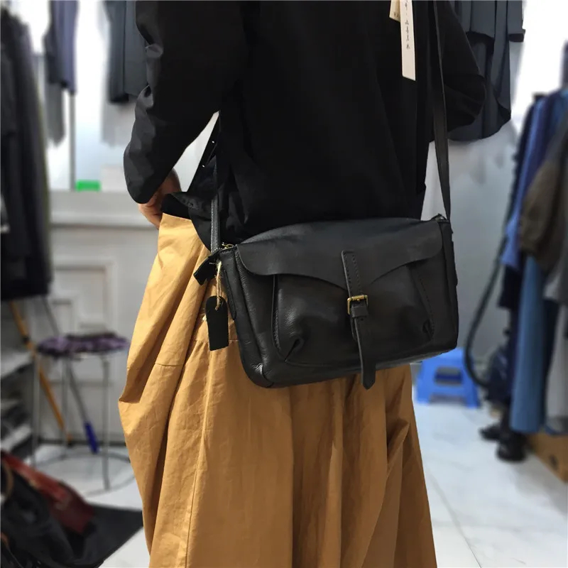 Retro Women Crossbody Bags Natural Real Leather Shoulder Bag Female Solid Casual Daily Messenger Bags Satchel Designer Handbags