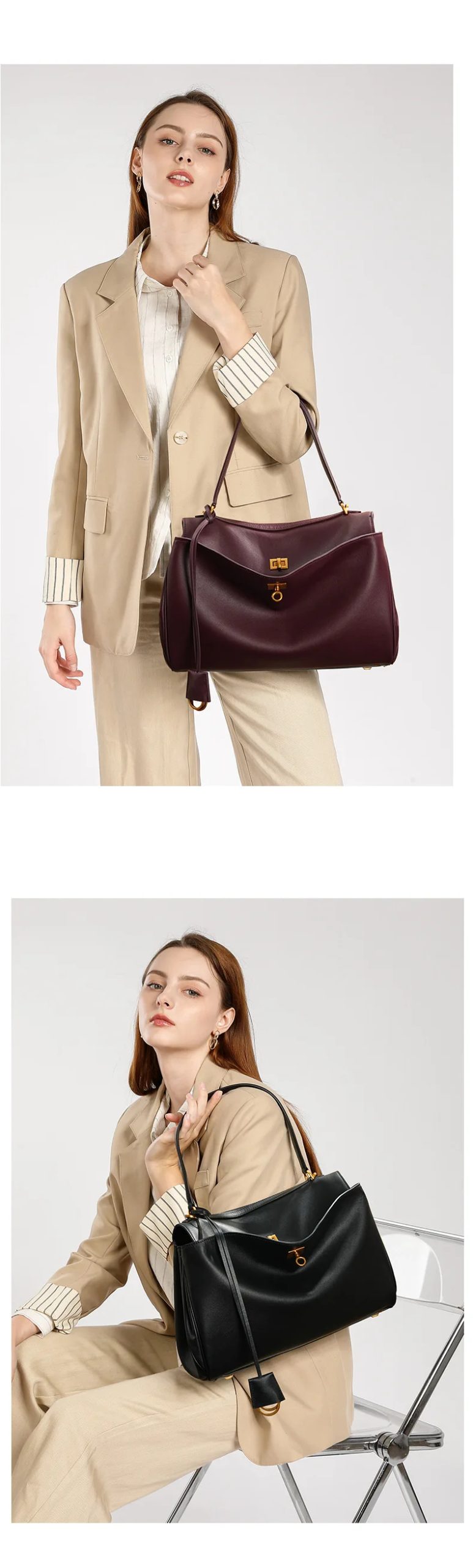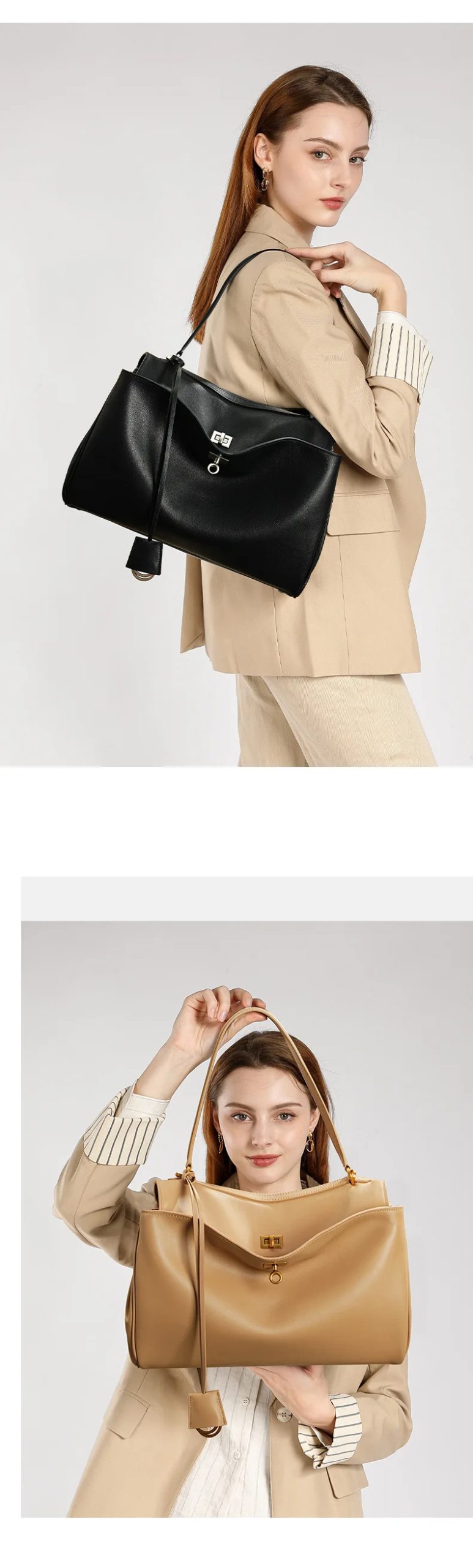 Leather handbag, single shoulder crossbody bag, large capacity women’s commuting high-end tote bag