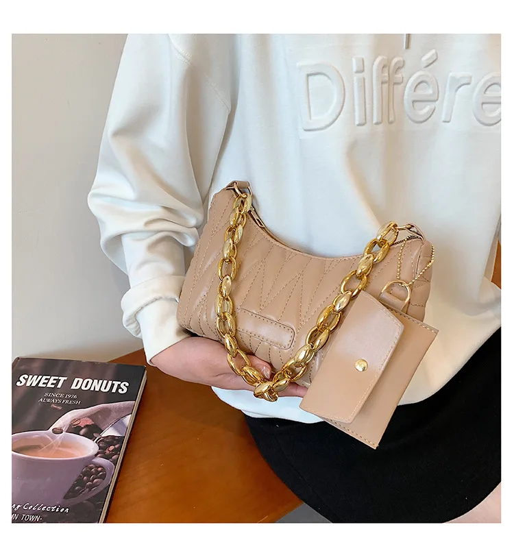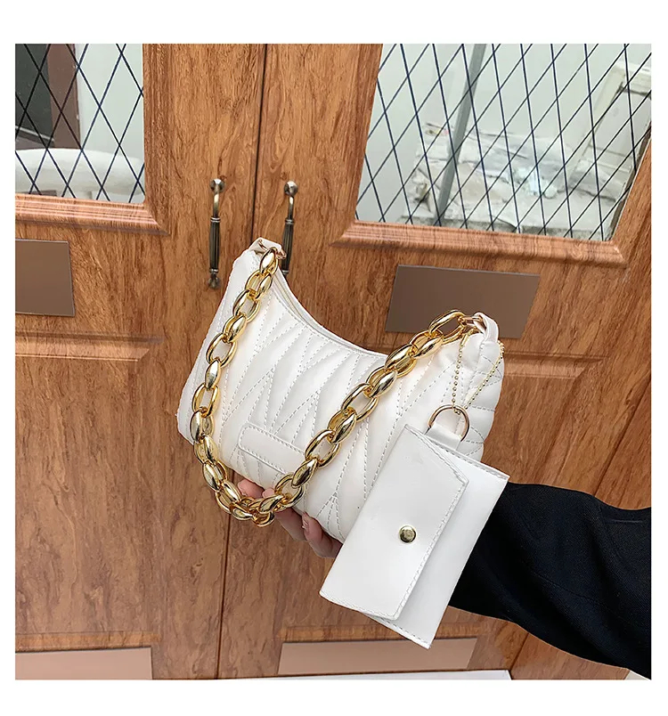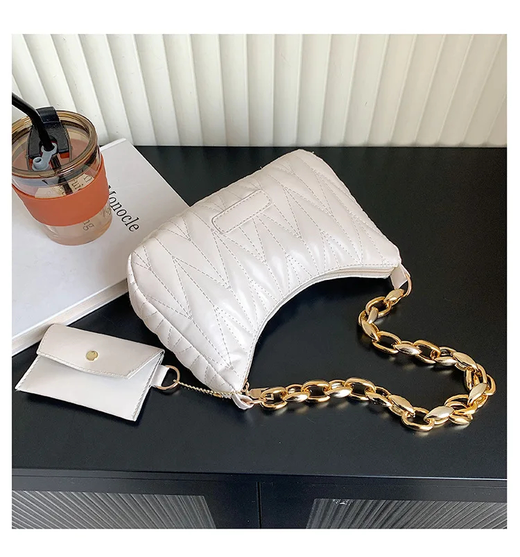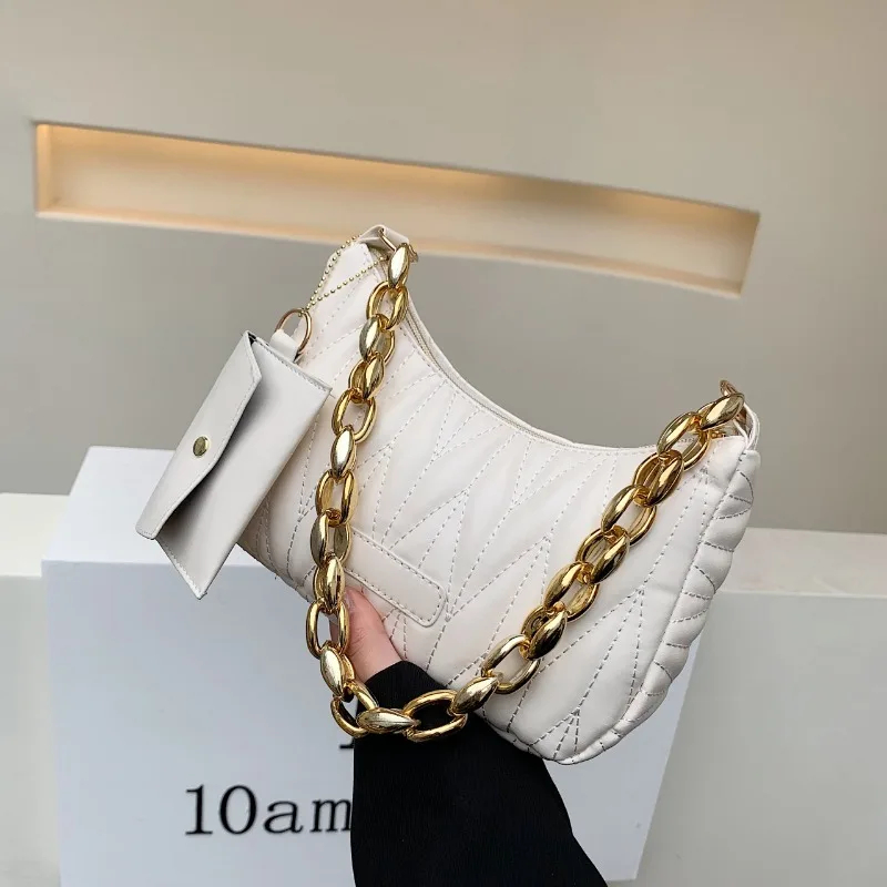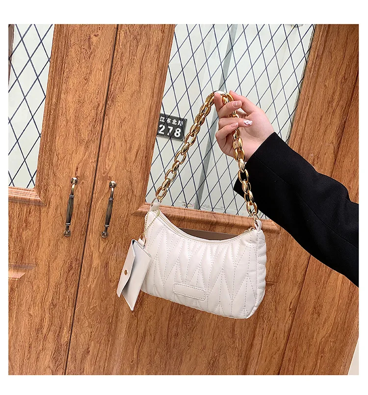 Chic Statement Chain Strap: Featuring a bold metallic chain strap, this bag adds a glamorous, personalized touch to your styling. The chain doubles as a decorative accent and a functional shoulder strap, balancing eye-catching flair with practical wearability for various occasions.