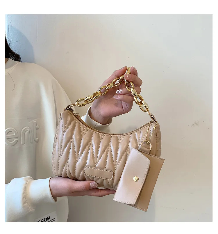 Ruched Crescent Bag, Fashion Chain Shoulder Bag, Women's Handbag with Coin Purse for Summer Every Day