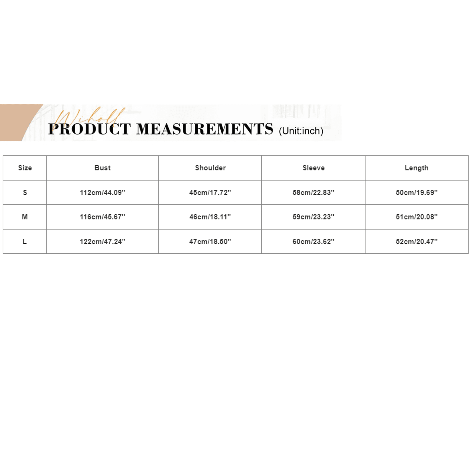| Clothing Size | S, M, L |