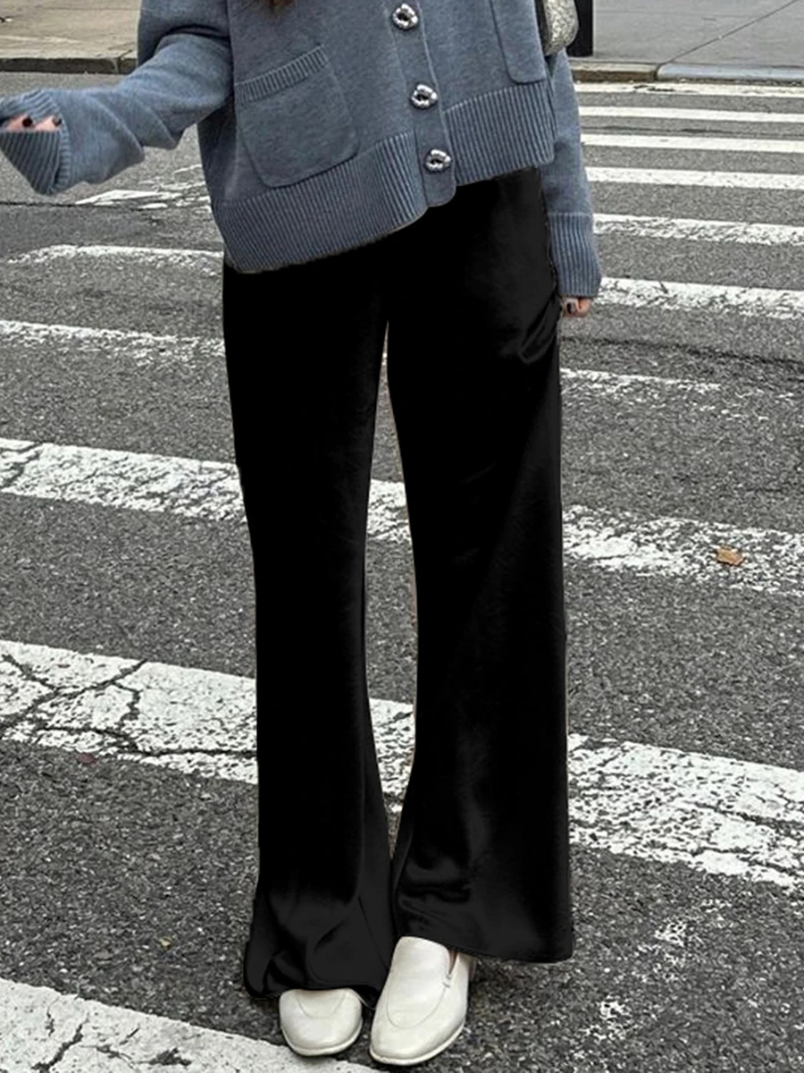 Crafted from premium satin-like fabric, these pants offer a sleek, silky texture with a subtle sheen—ideal for spring, summer, or semi-casual occasions. The lightweight material drapes effortlessly, keeping you comfortable while exuding elegant charm.