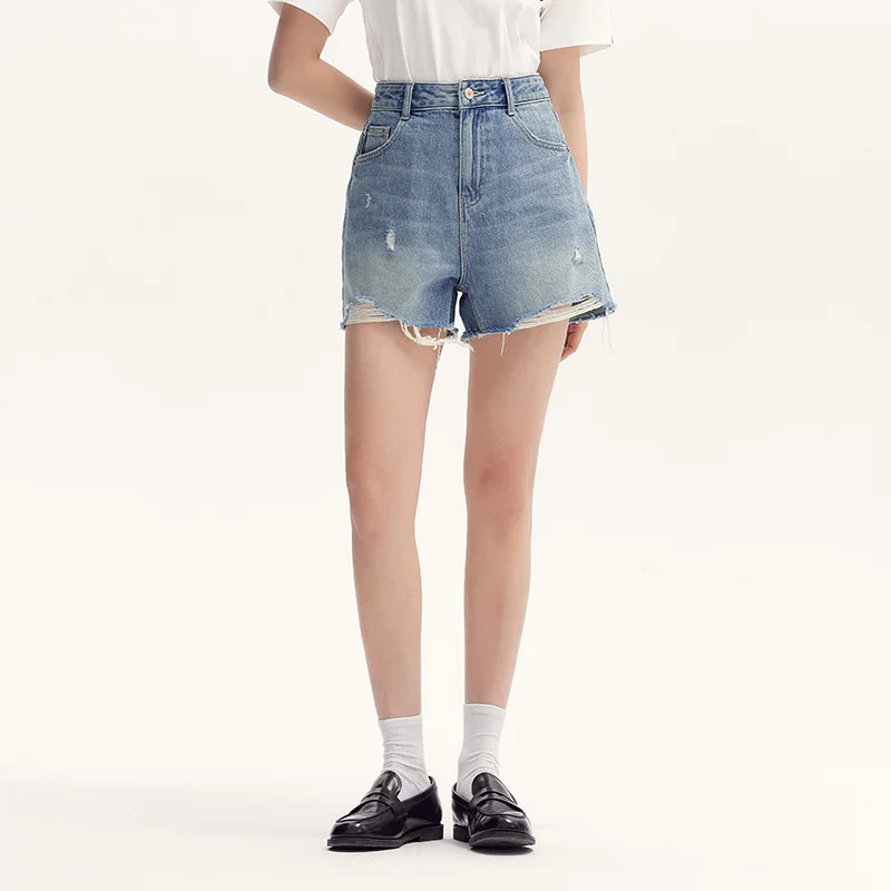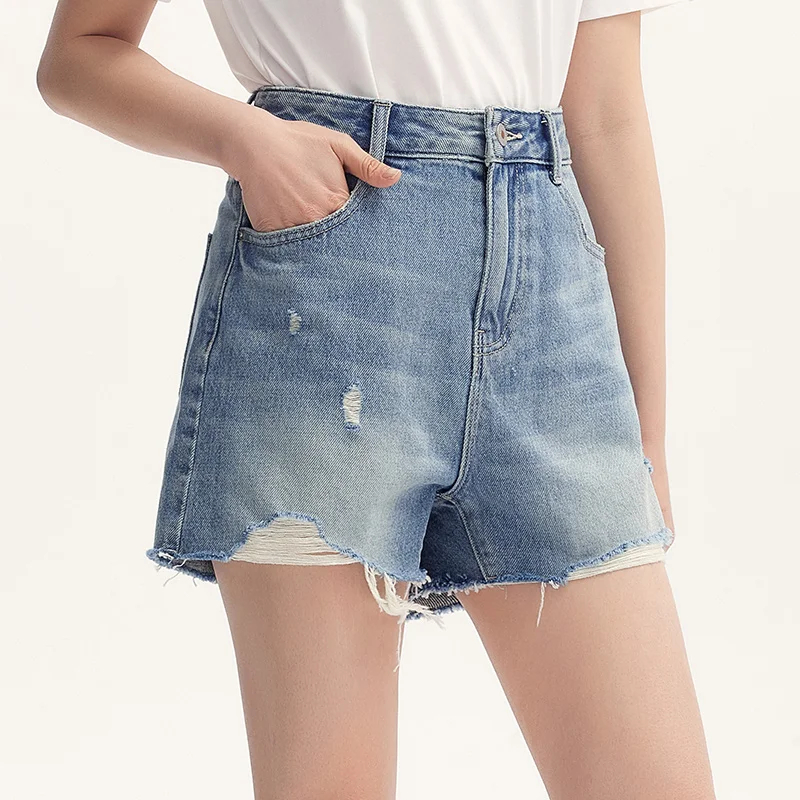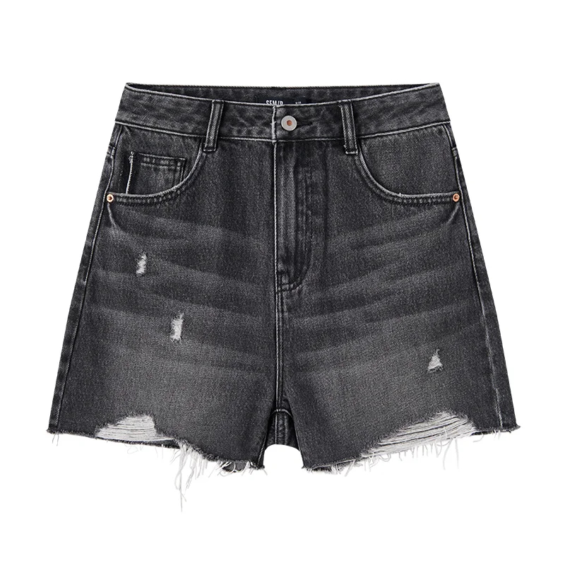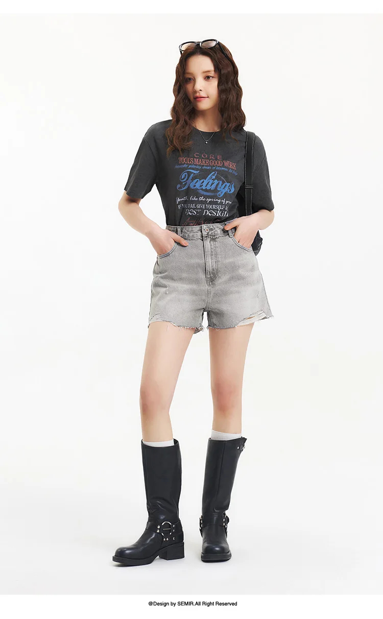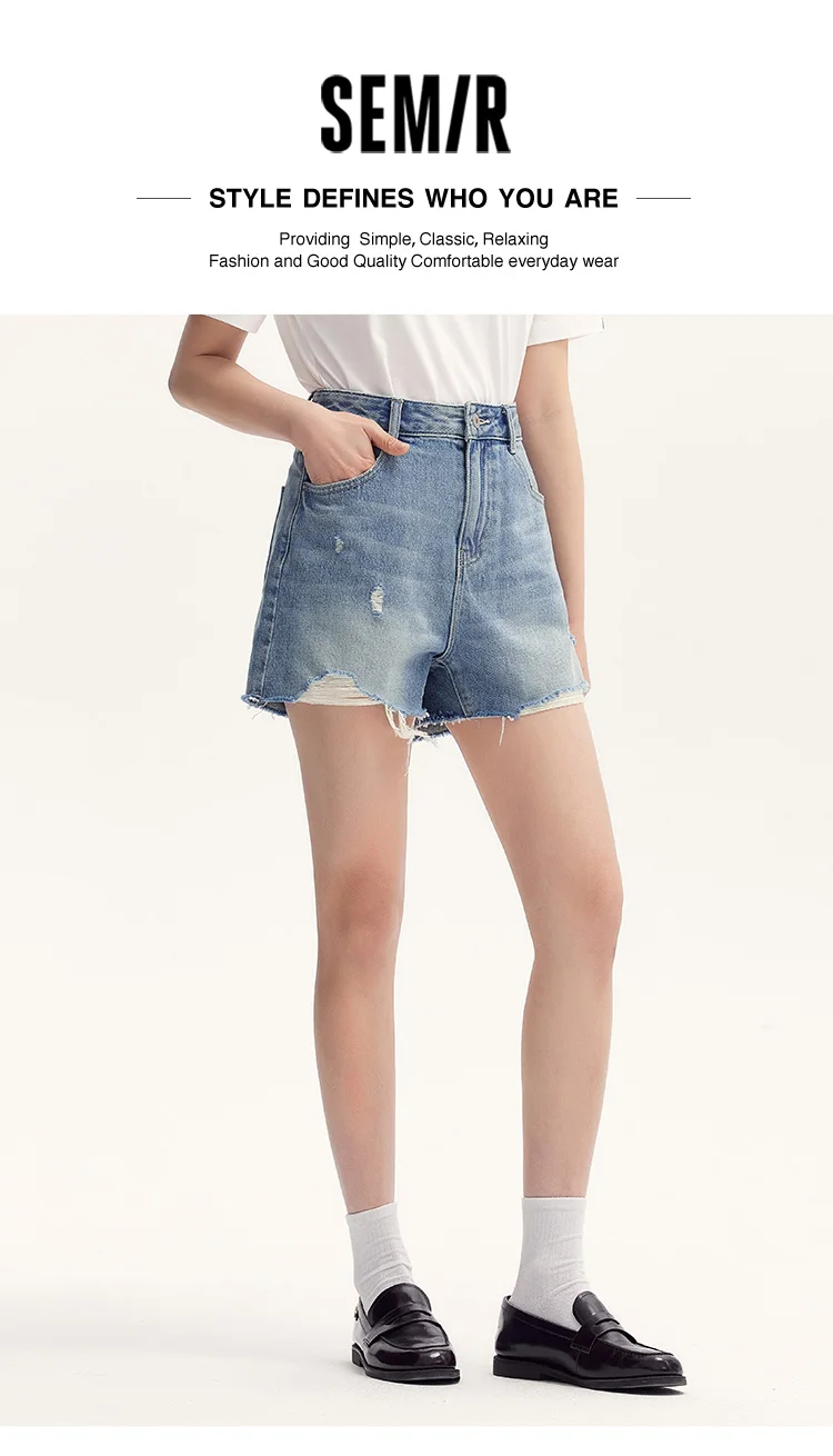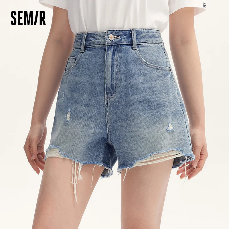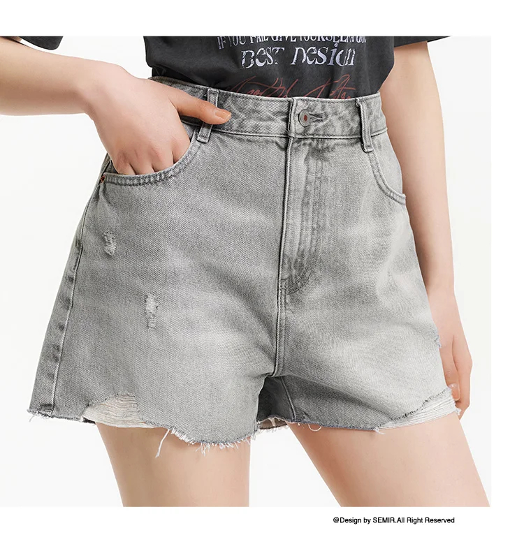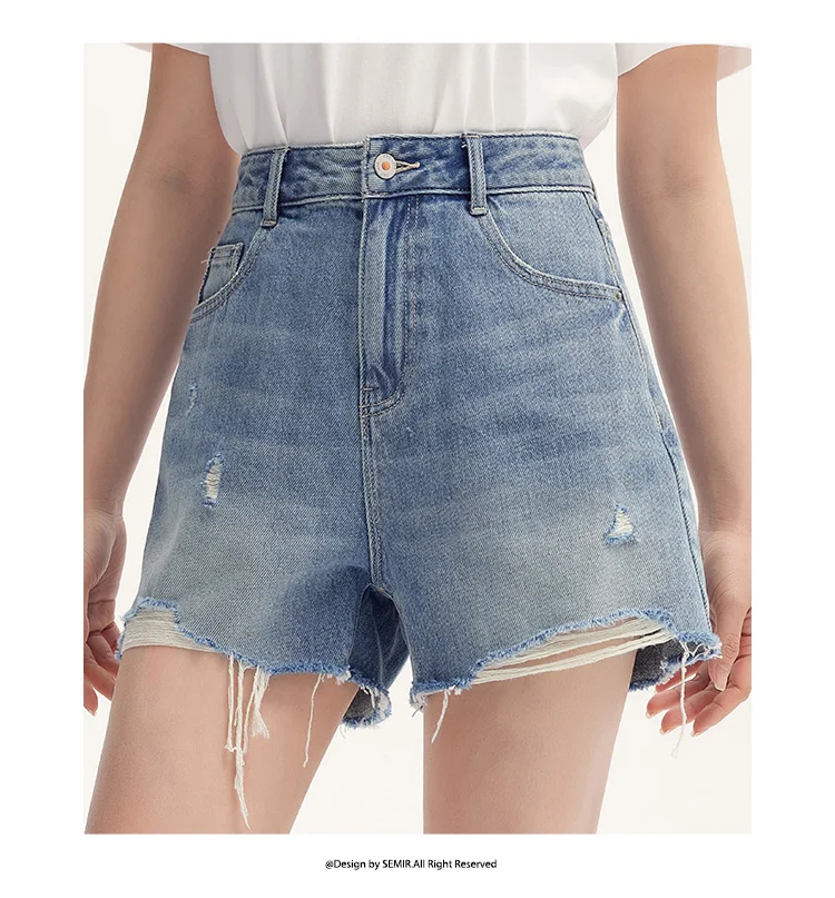 Semir Denim Shorts Women Loose Trendy Street Style Hot Pants Cool Summer Street Frayed Hem Shorts