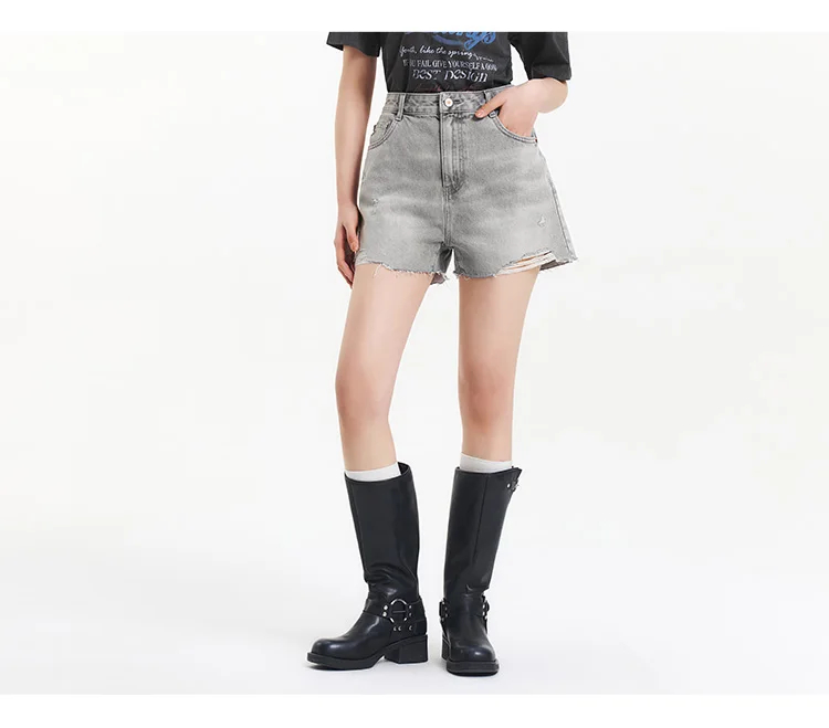 Trendy Distressed Detail: Featuring stylish distressed and frayed edges, these shorts add a trendy and edgy flair to your look, making them stand out with a sense of casual chic.