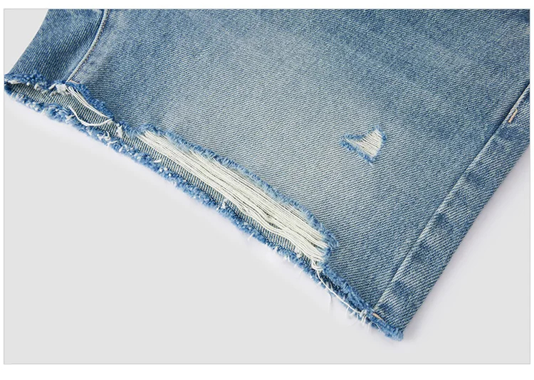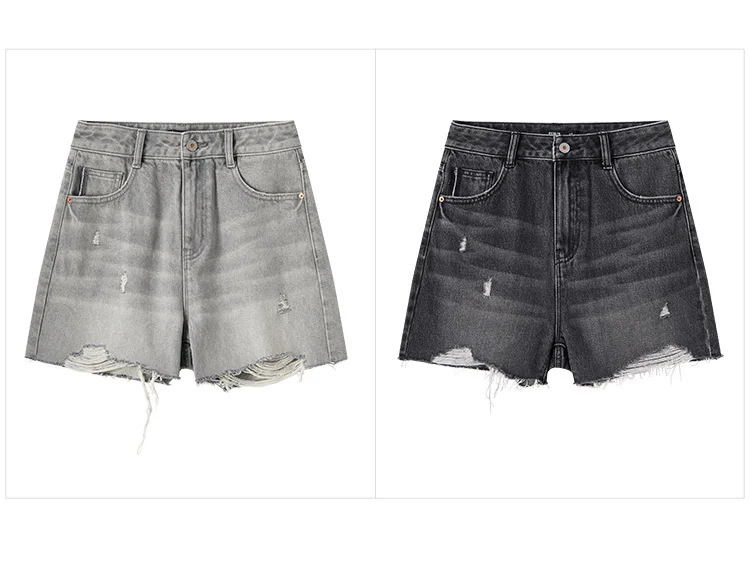 Description: These women’s denim shorts are a versatile addition to your wardrobe. Made of soft and durable denim fabric, they ensure comfort in spring and summer. The trendy distressed detail adds a stylish touch, and the high-waisted fit flatters your figure, making it suitable for daily wear, casual gatherings, or street style. Pair it with t-shirts, tank tops, or blouses for a chic look that can be accessorized to suit various occasions. Stay comfortable and fashionable with these trendy denim shorts.