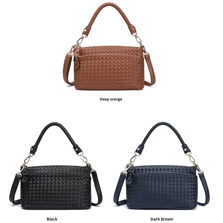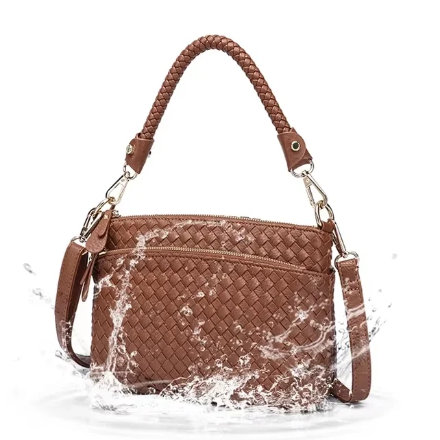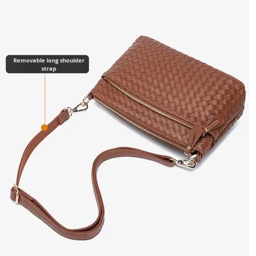Single Shoulder Women's Crossbody Bag Simple Woven Zipper for Baguette Handbag Waterproof Fashionable Versatile for