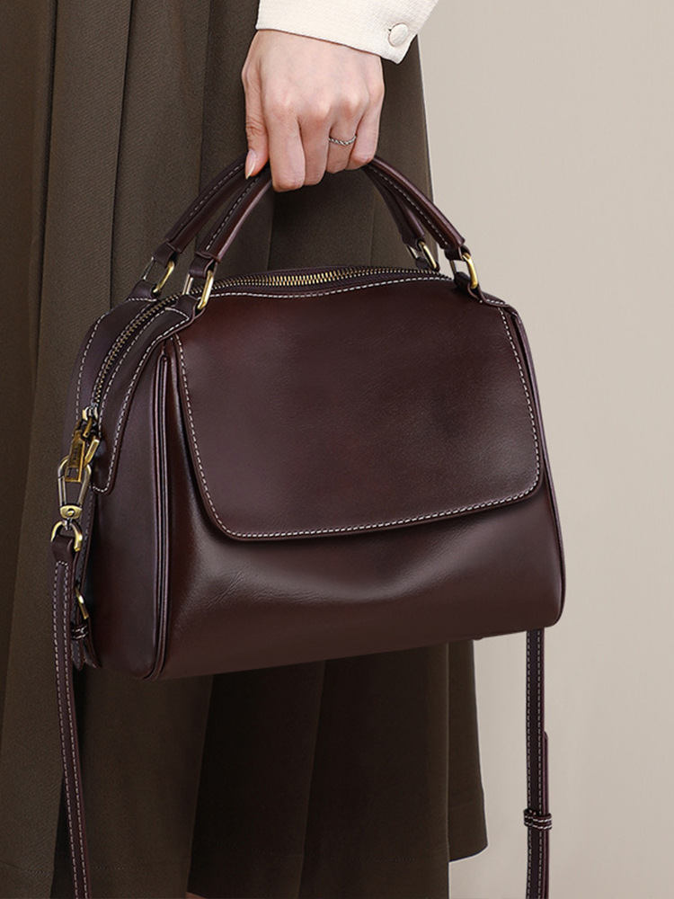 Smooth Leather-Like Satchel: Timeless Elegance for Daily & Polished Looks