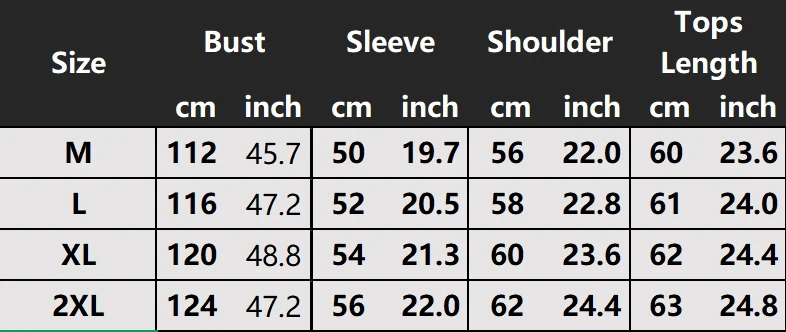 | Size | XXL, XL, M, S, L |