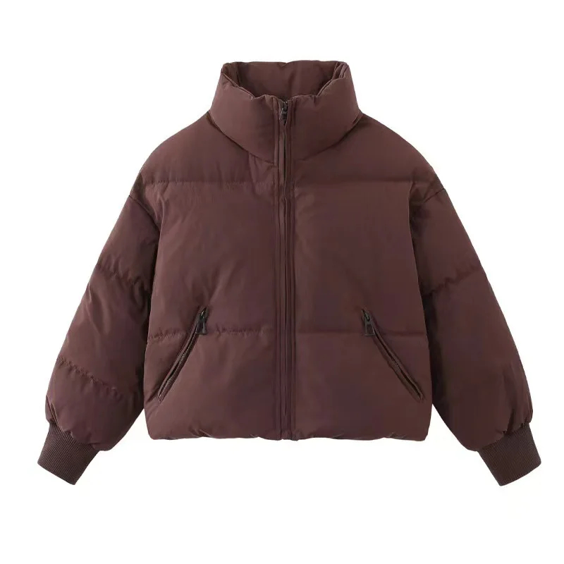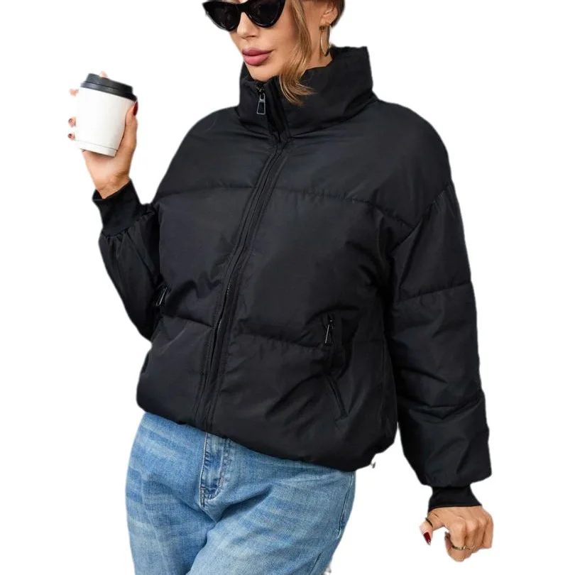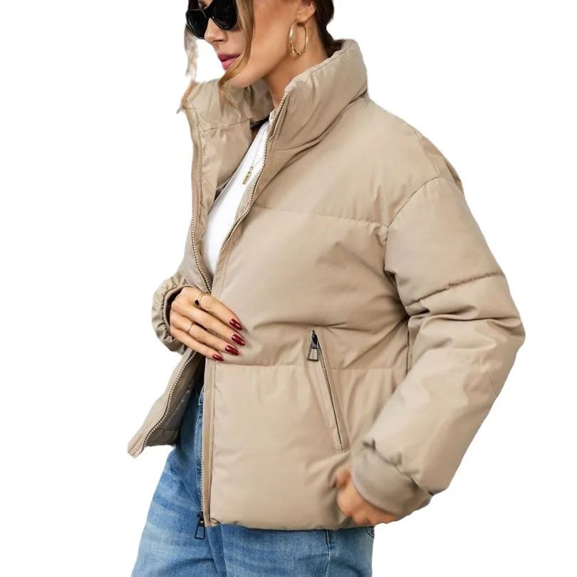 Warm & Comfortable: Crafted from high-quality padded fabric, this jacket delivers excellent warmth and comfort, ensuring you stay cozy in winter while maintaining a stylish appearance.Stand-Up Collar Design: Featuring a sleek stand-up collar, this jacket adds a sophisticated touch to your look and provides extra protection against cold winds.Practical Pocket Detail: Elevate your outfit with the functional side pockets that bring a trendy element to the design. These pockets not only enhance style but also offer convenient storage for small essentials like keys or a phone.Relaxed Fit: Designed in a relaxed fit, this women’s long-sleeved jacket offers a comfortable wearing experience and suits various body shapes, allowing you to showcase a confident and fashionable look effortlessly.Versatile Styling: Perfect for various winter occasions, this jacket pairs seamlessly with jeans, leggings, or skirts for casual outings. Customize your look by accessorizing with different scarves, boots, and bags to suit different settings from daily life to weekend gatherings.