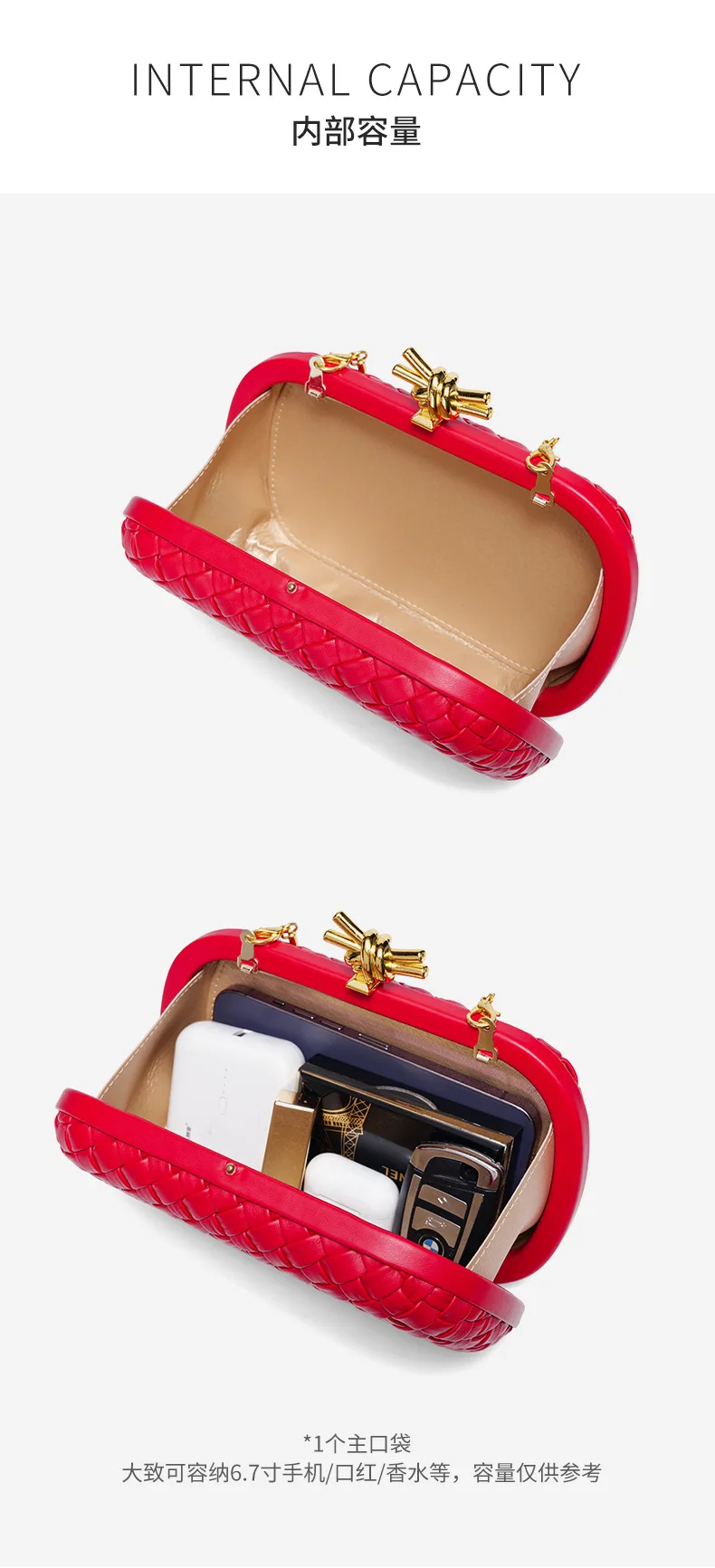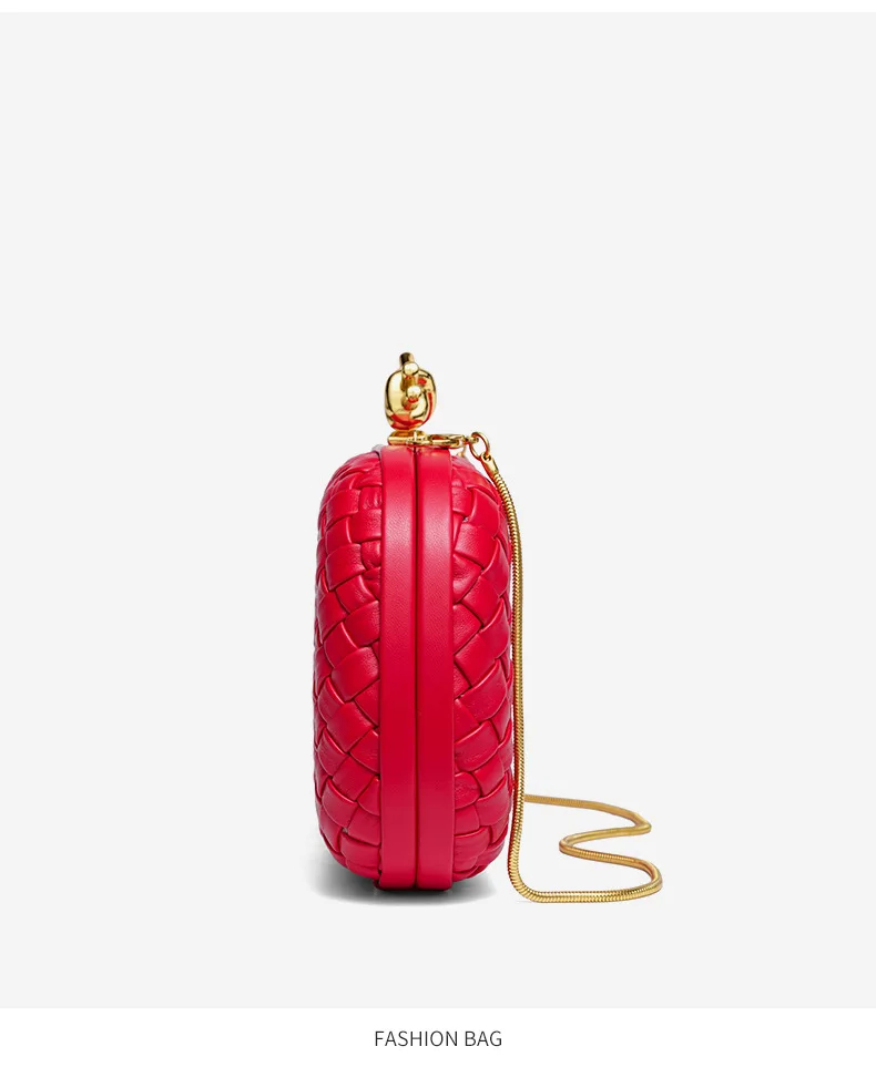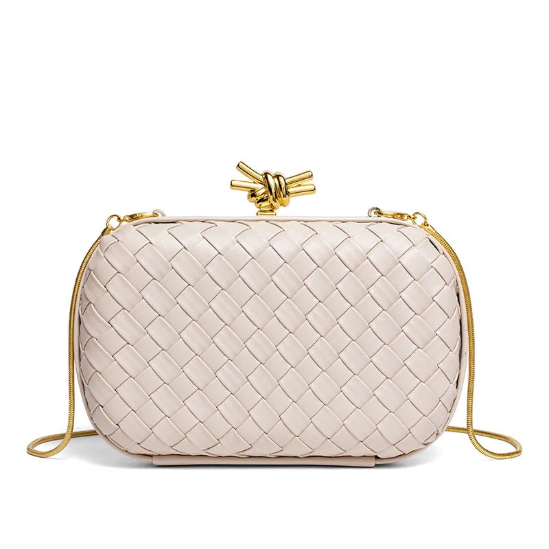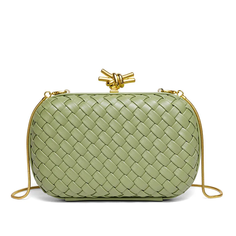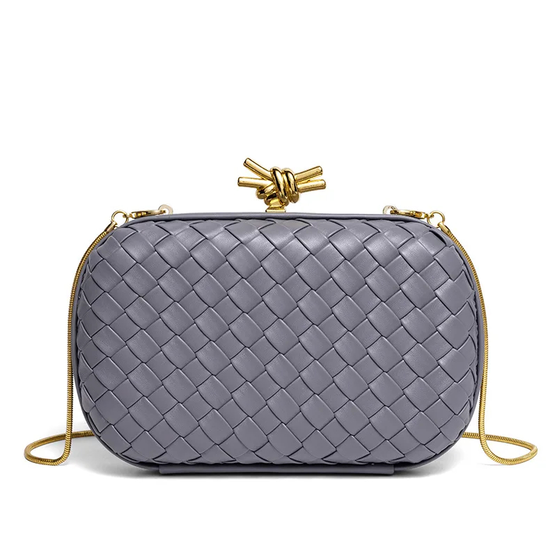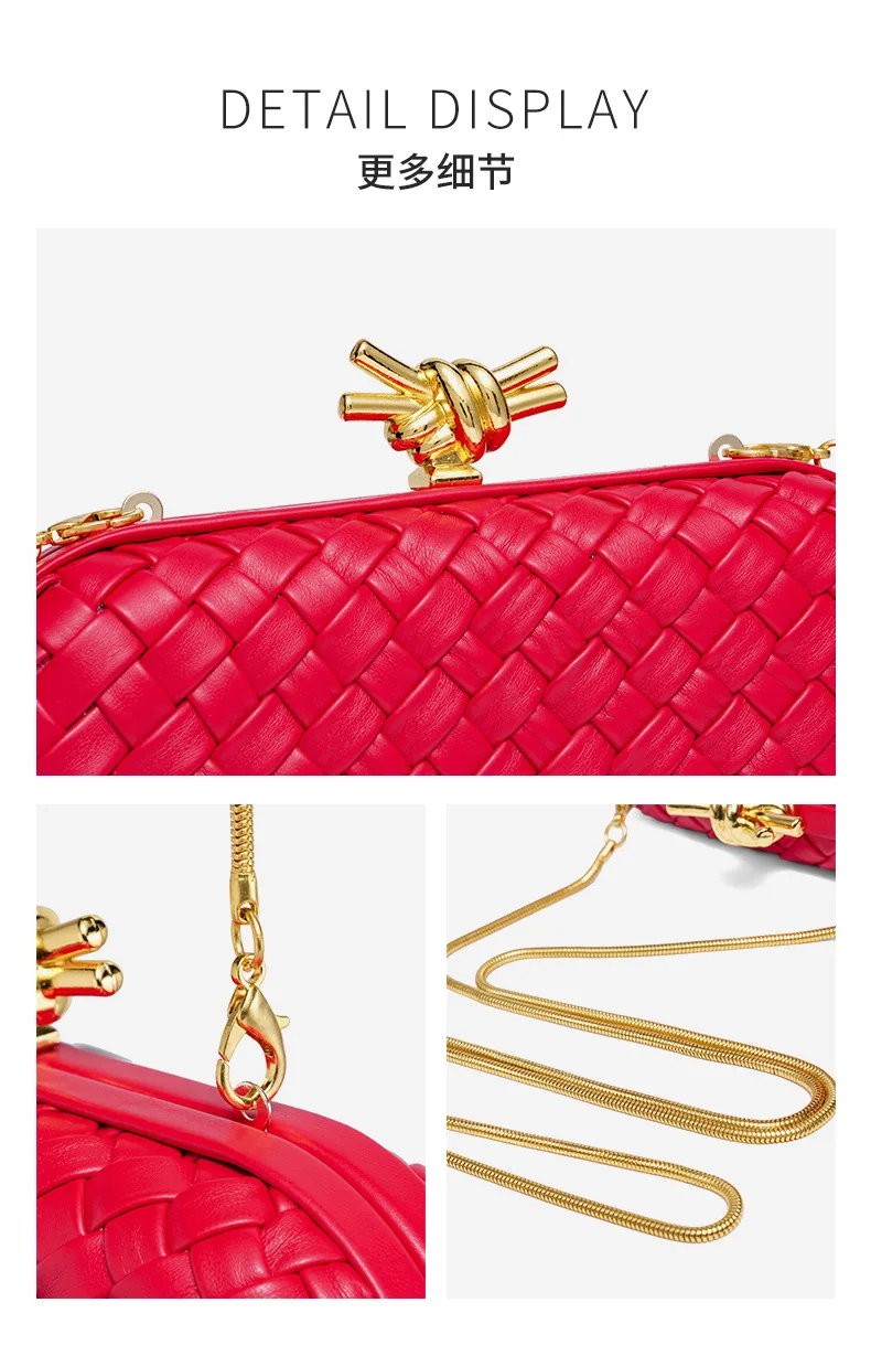 Description: This stylish bag is a versatile addition to your accessory collection. Made of luxurious woven material, it ensures a refined aesthetic and longevity. The unique gold-tone hardware and chain strap add a fashionable element, while the clutch silhouette offers practical storage for essentials. Its formal design flatters any outfit, making it suitable for special events, evening wear, or upscale gatherings. Pair it with evening gowns, dresses, or suits for a chic look that adapts to various formal settings. Stay stylish and sophisticated with this trendy bag.