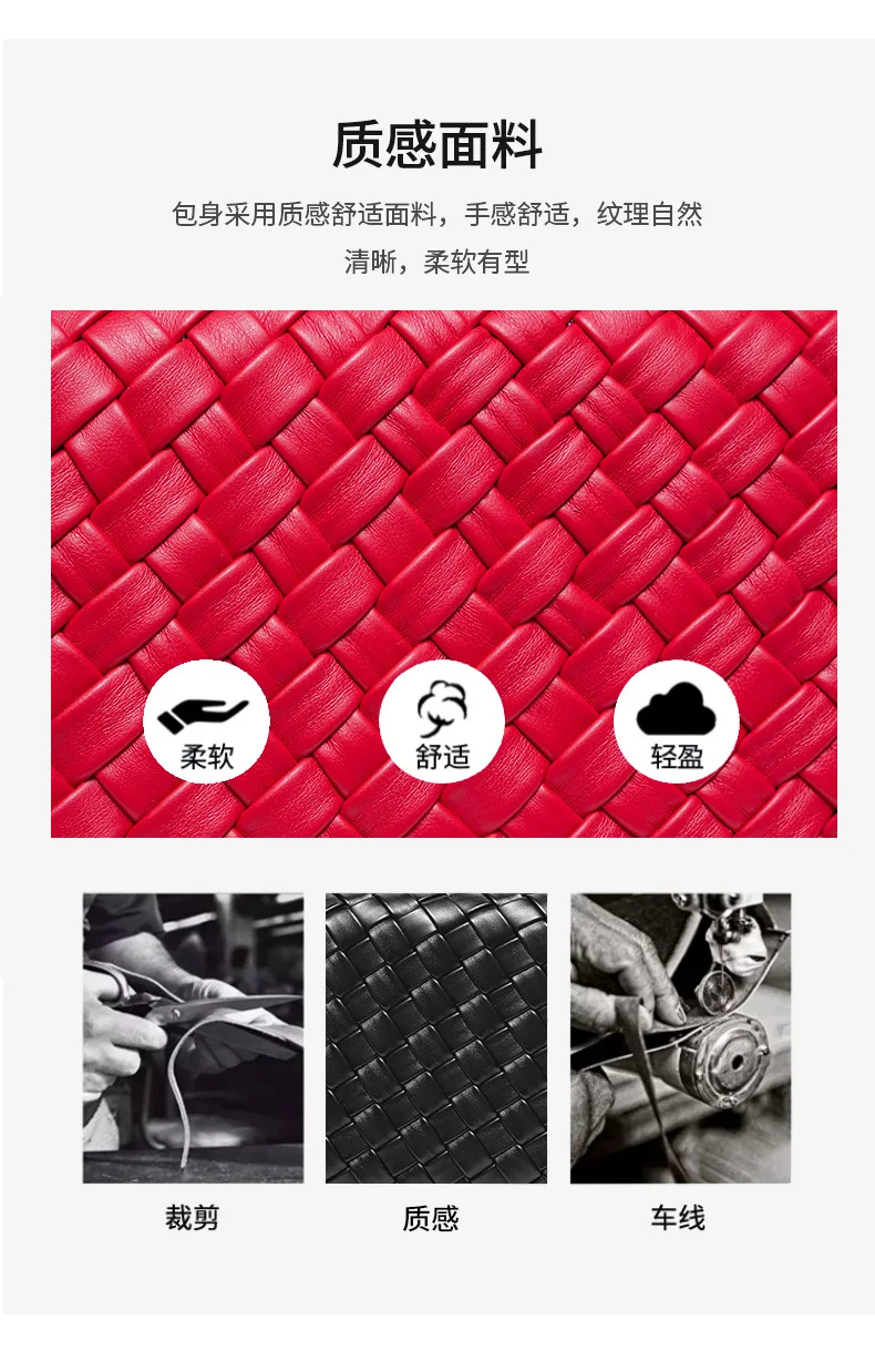 Chic Woven Design: Elevate your outfit with the intricate woven pattern that adds a trendy, upscale flair to the design. It not only enhances style but also offers convenient storage for small essentials like wallets and cosmetics.