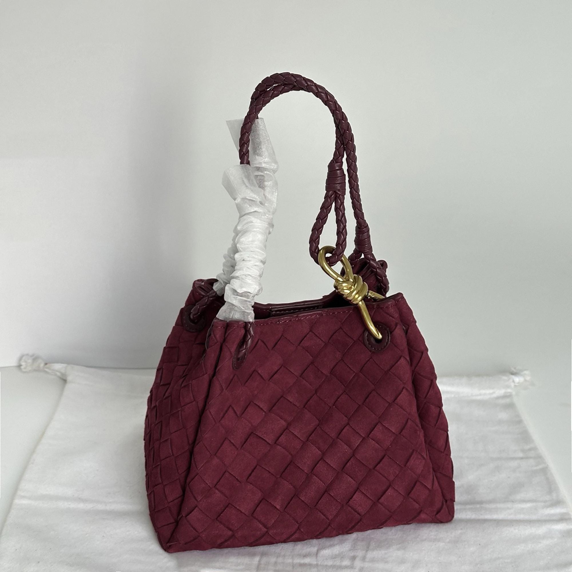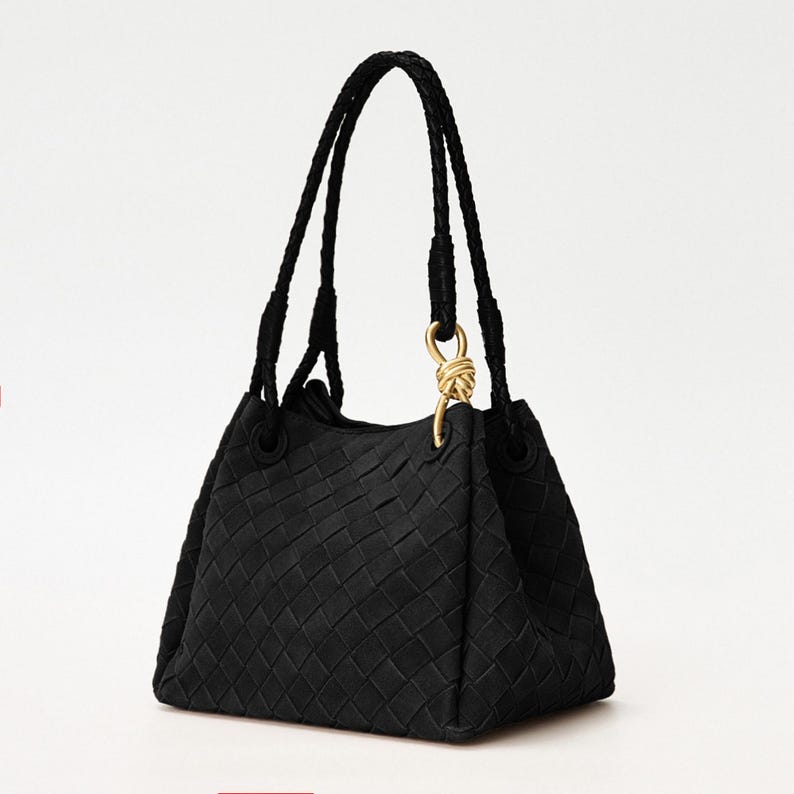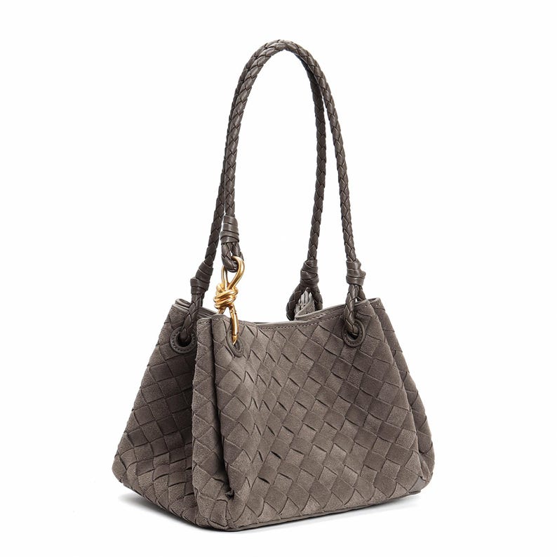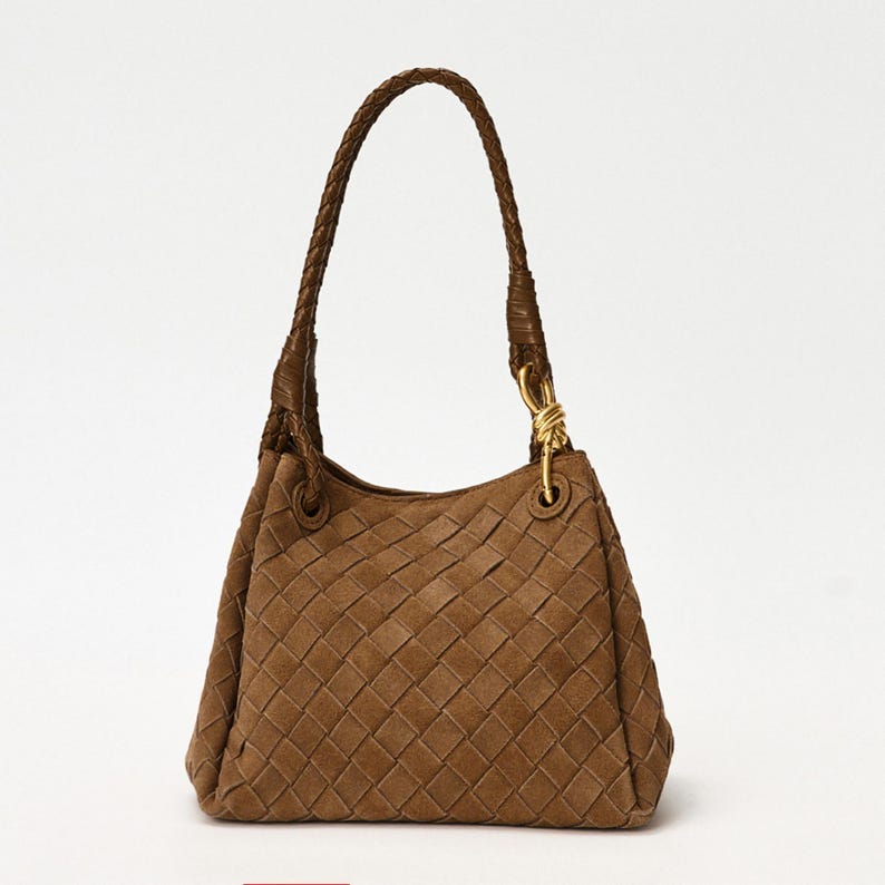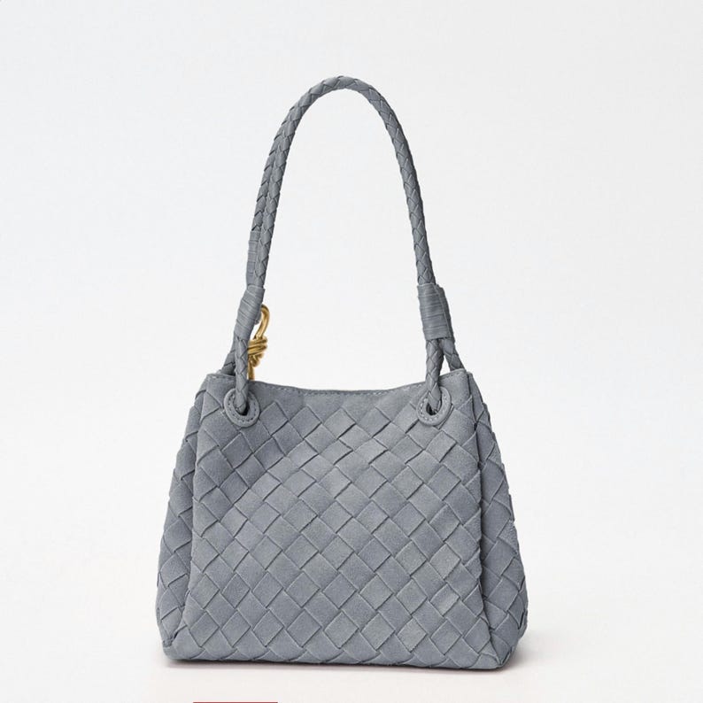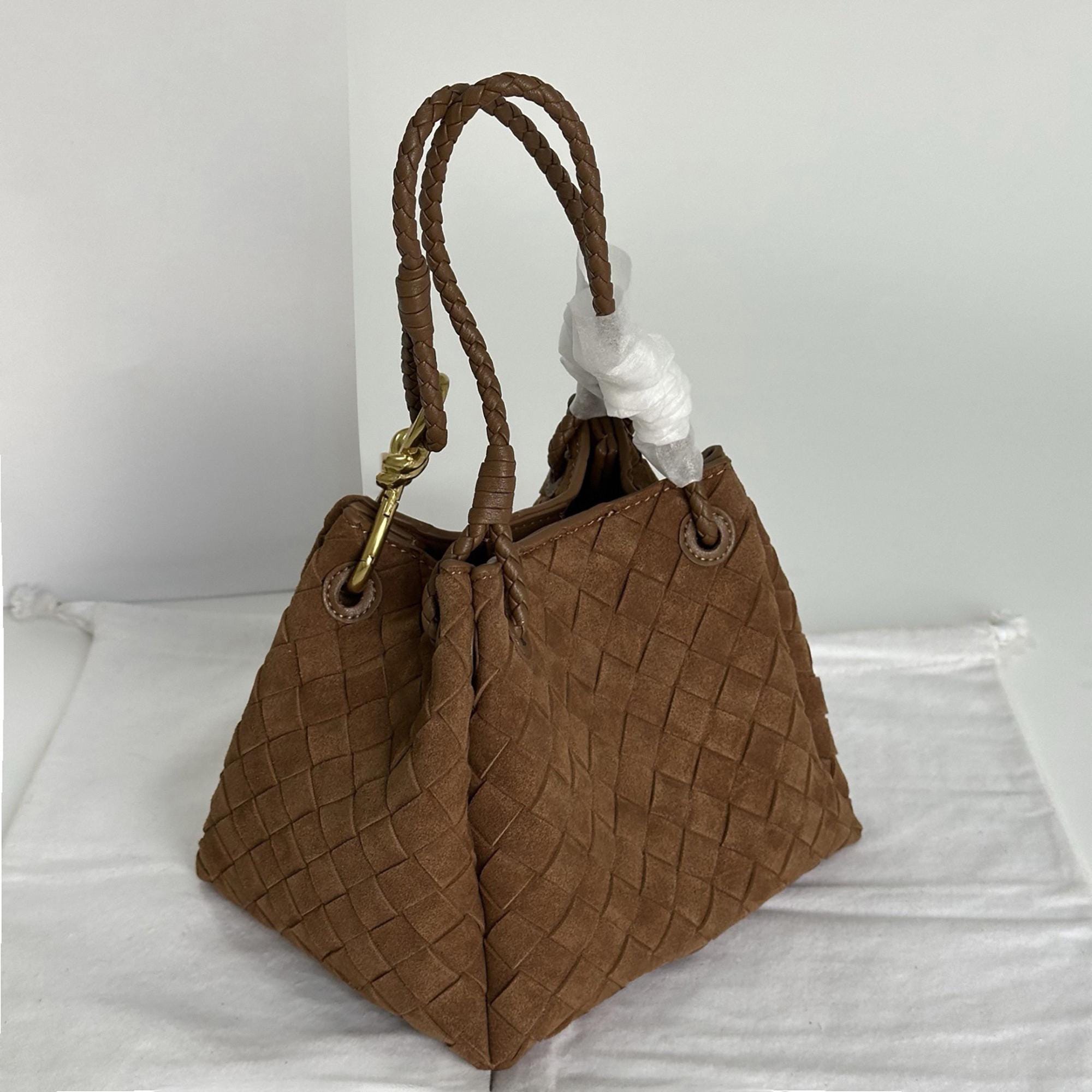Suede Tote Bag, Woven Suede Top Handle Bag, Suede Shoulder Bag, Weaved Leather Handbag