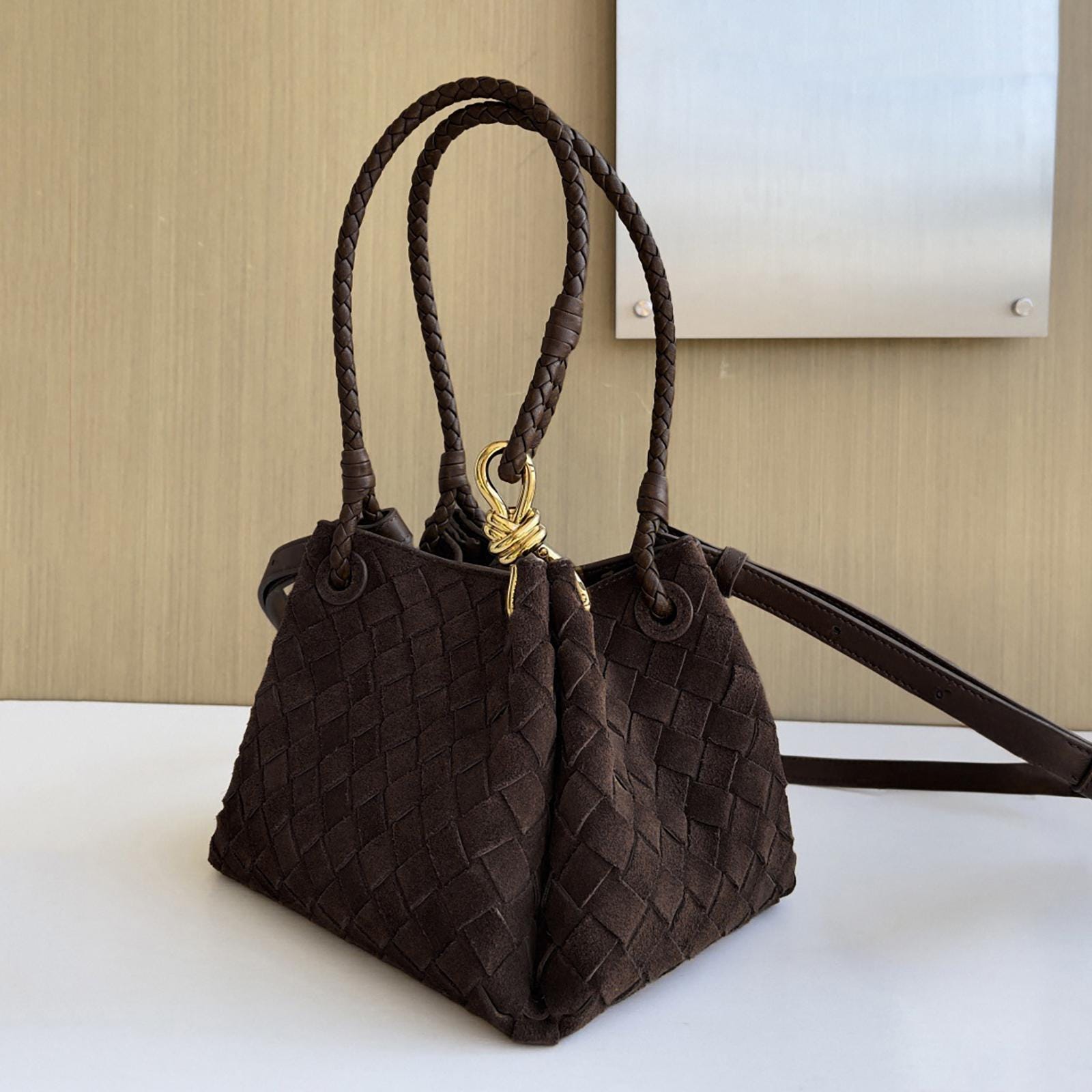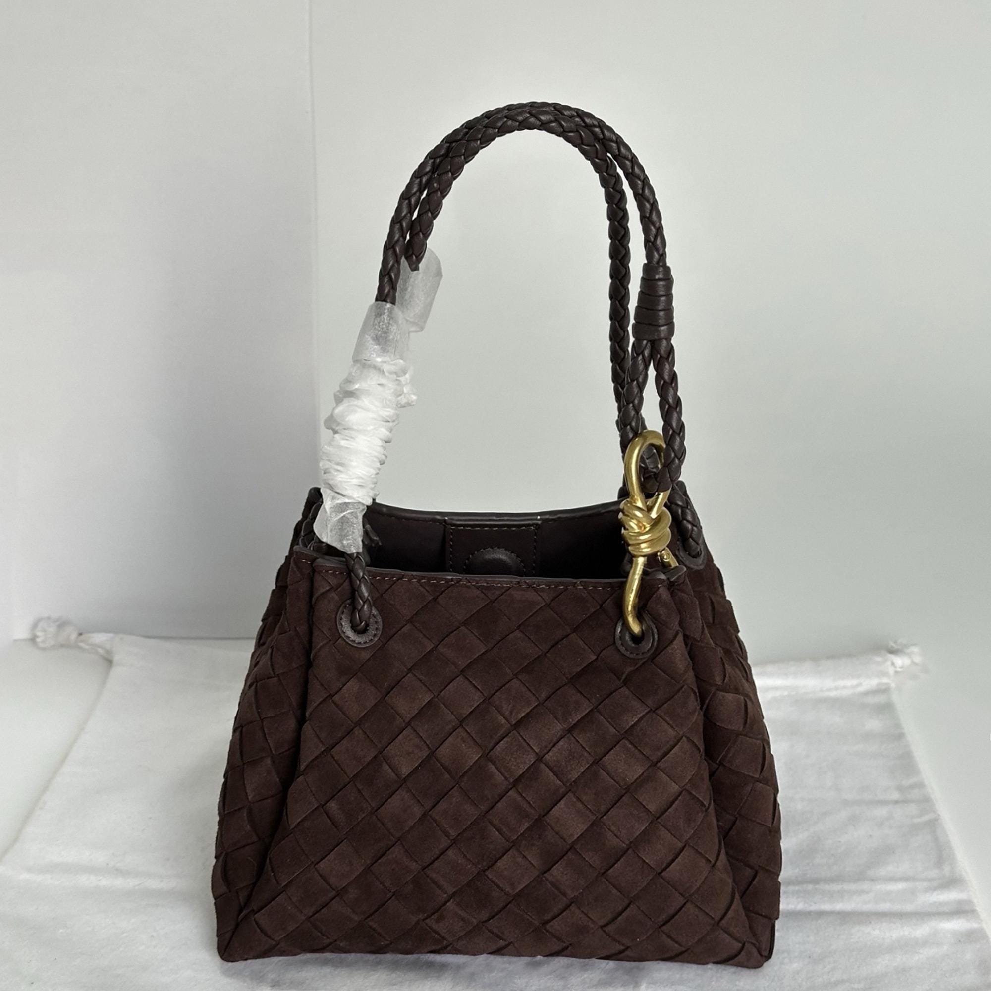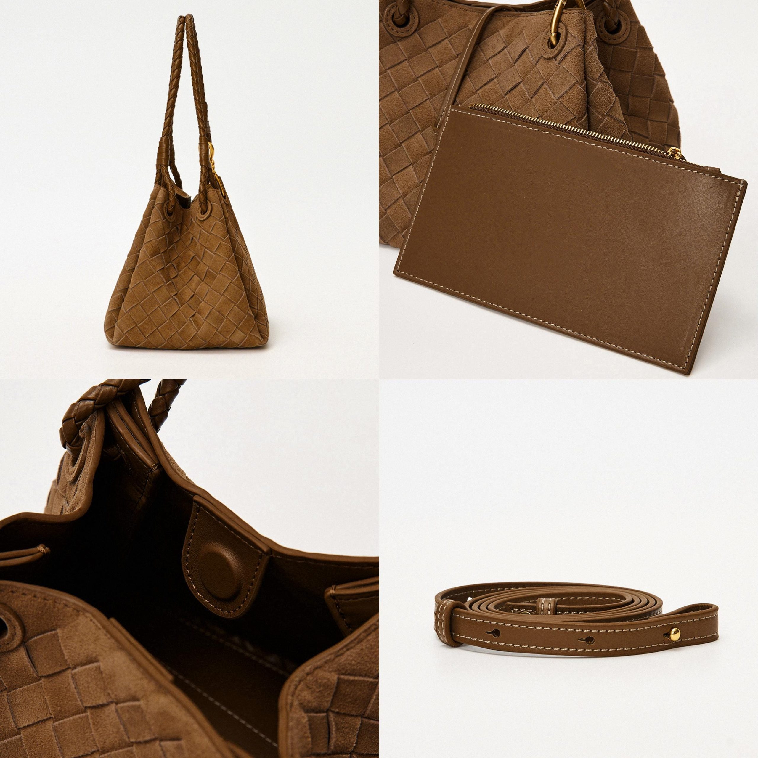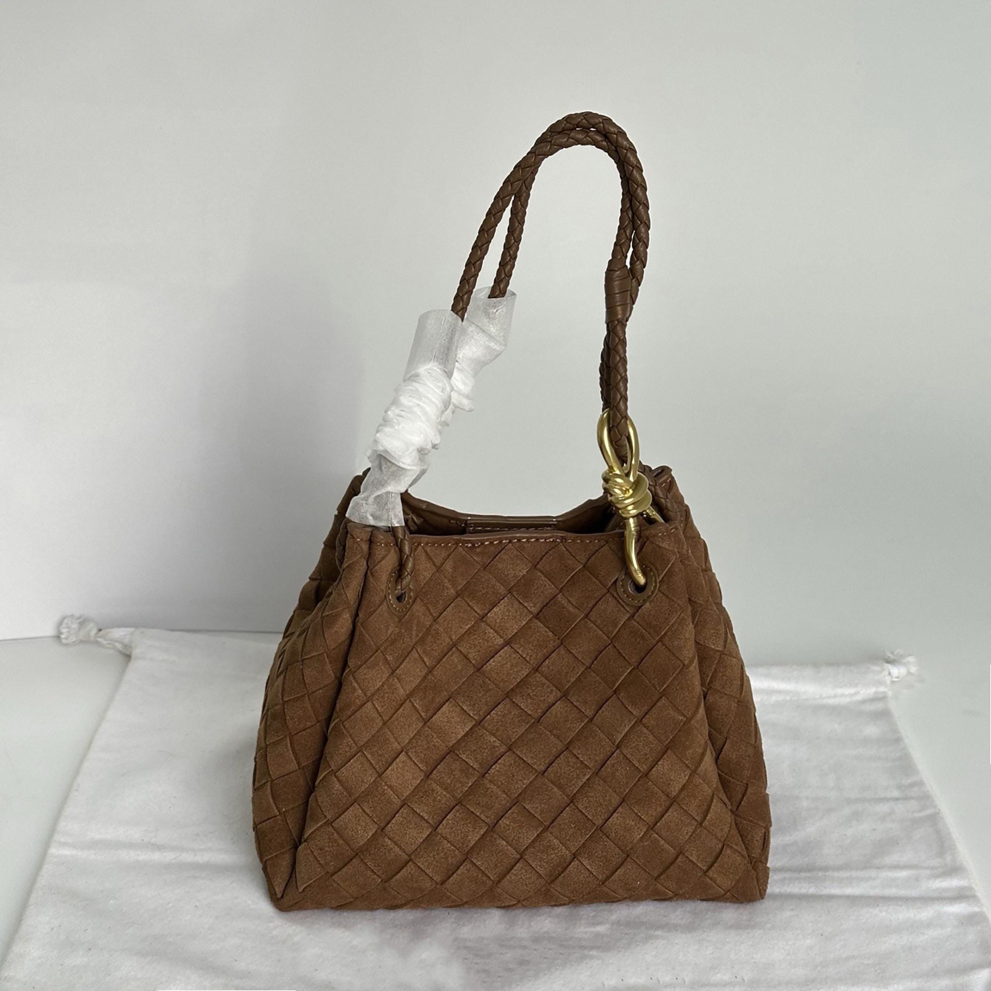 Suede Tote Bag, Woven Suede Top Handle Bag, Suede Shoulder Bag, Weaved Leather Handbag