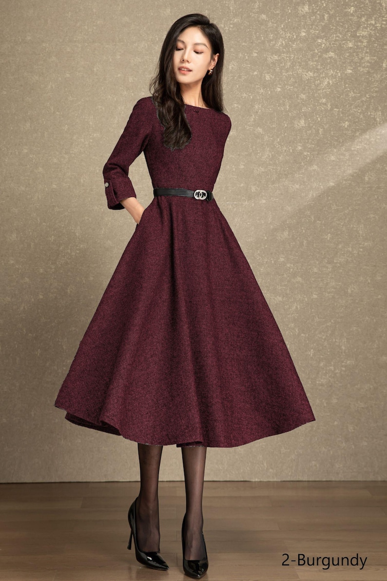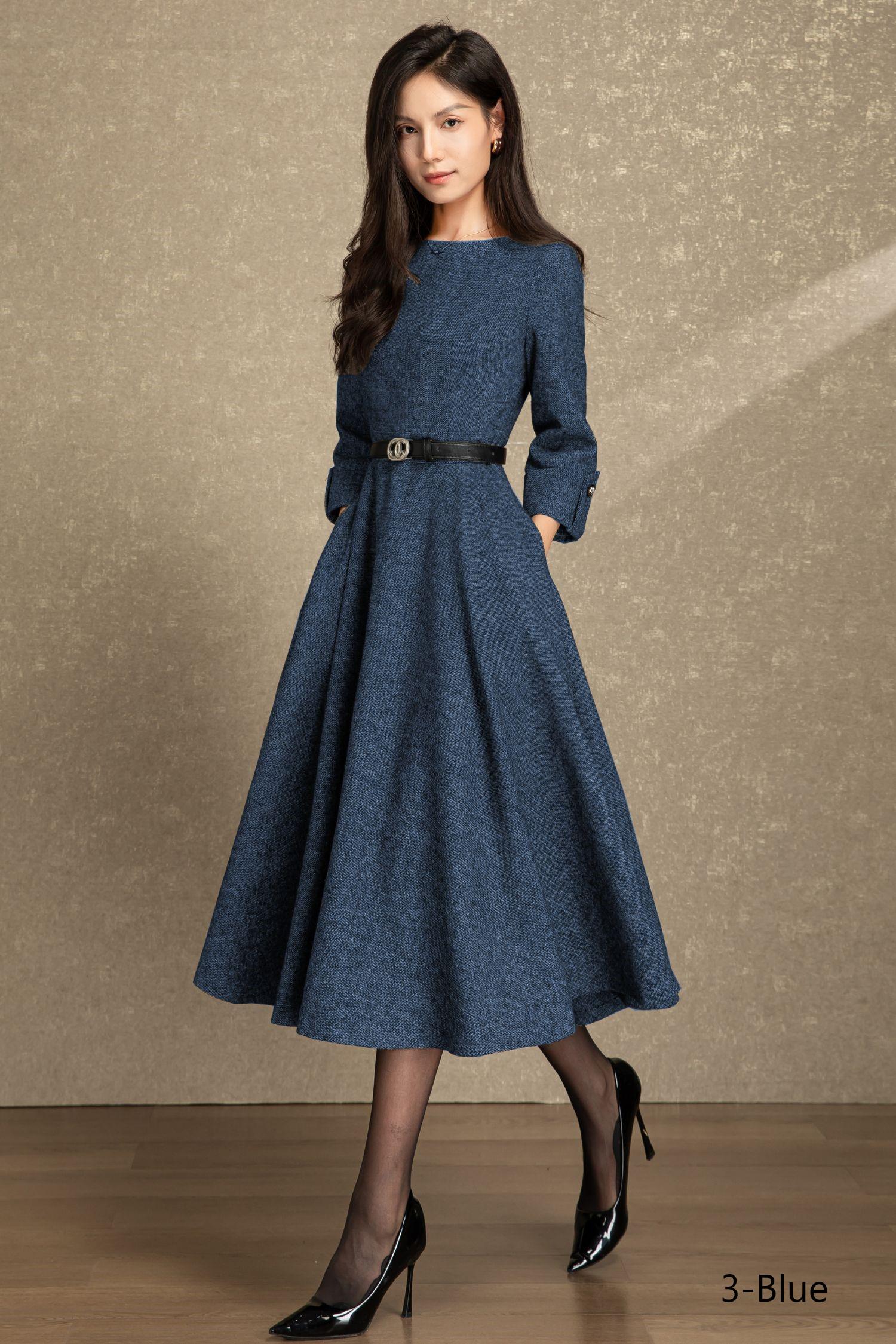 Rich Textured Fabric: Crafted from premium woven material with a subtle, refined texture, this dress offers exceptional softness and a structured drape—ensuring warmth for cooler seasons while maintaining an elegant, polished silhouette. The fabric holds its shape beautifully, balancing comfort with a sophisticated look.