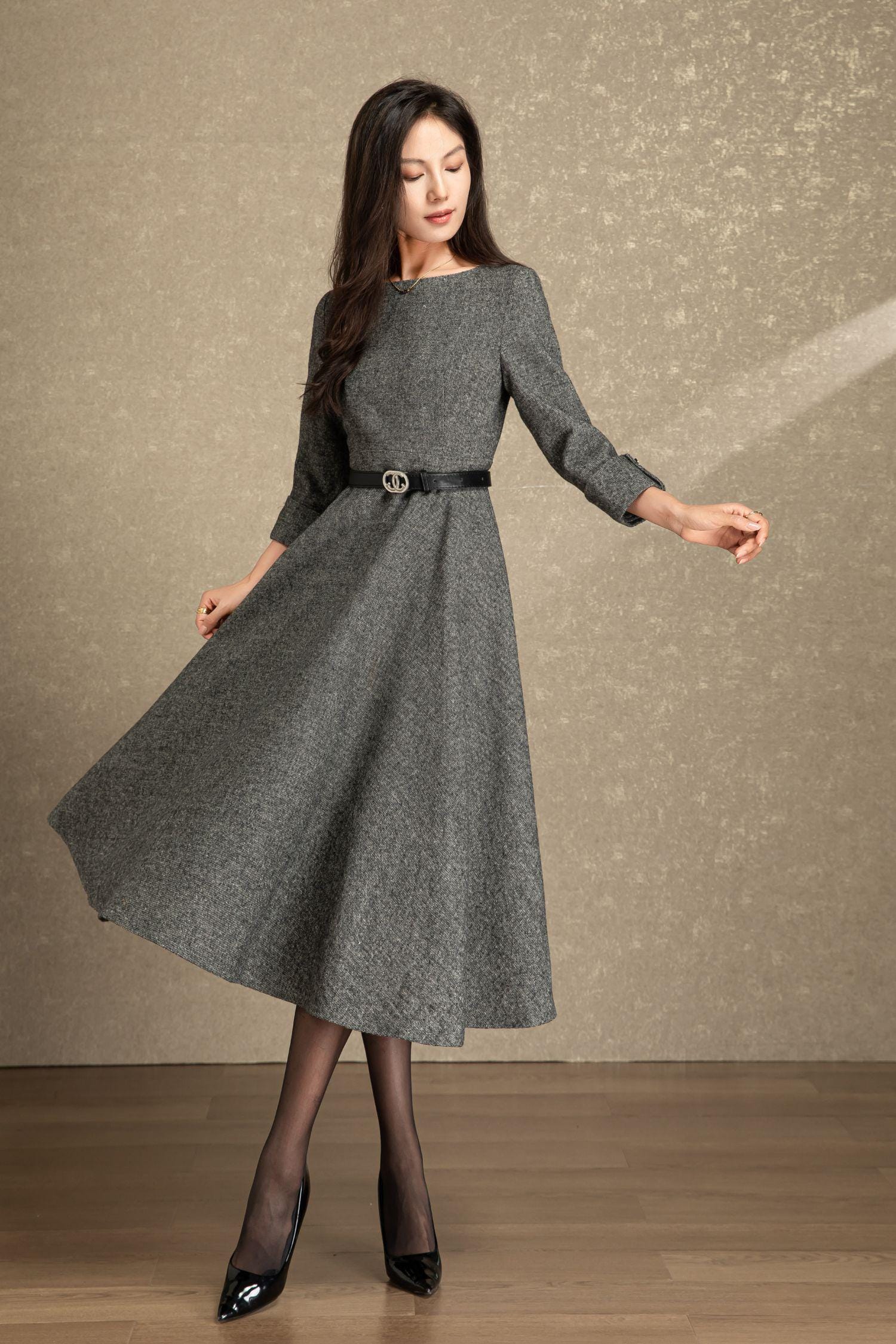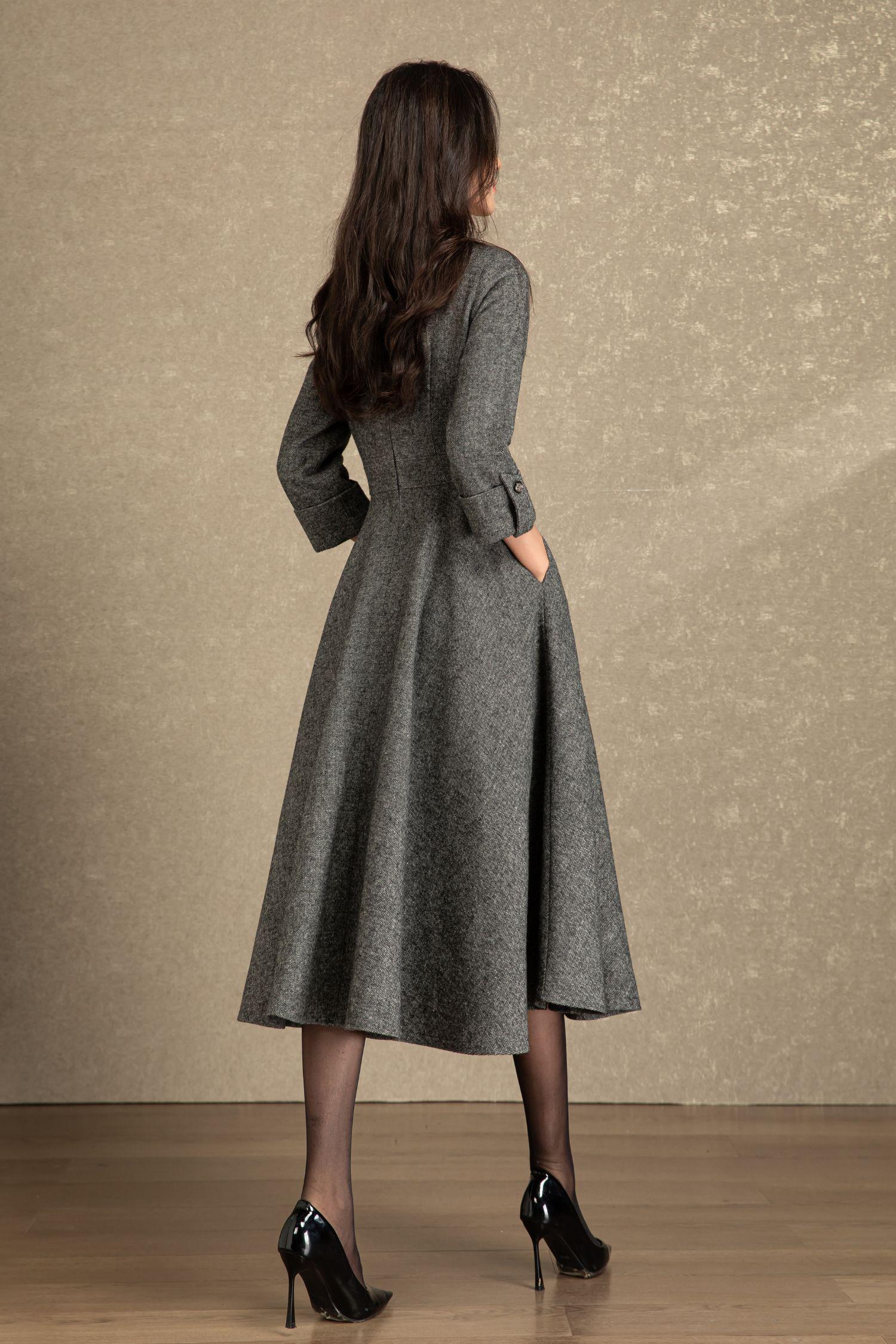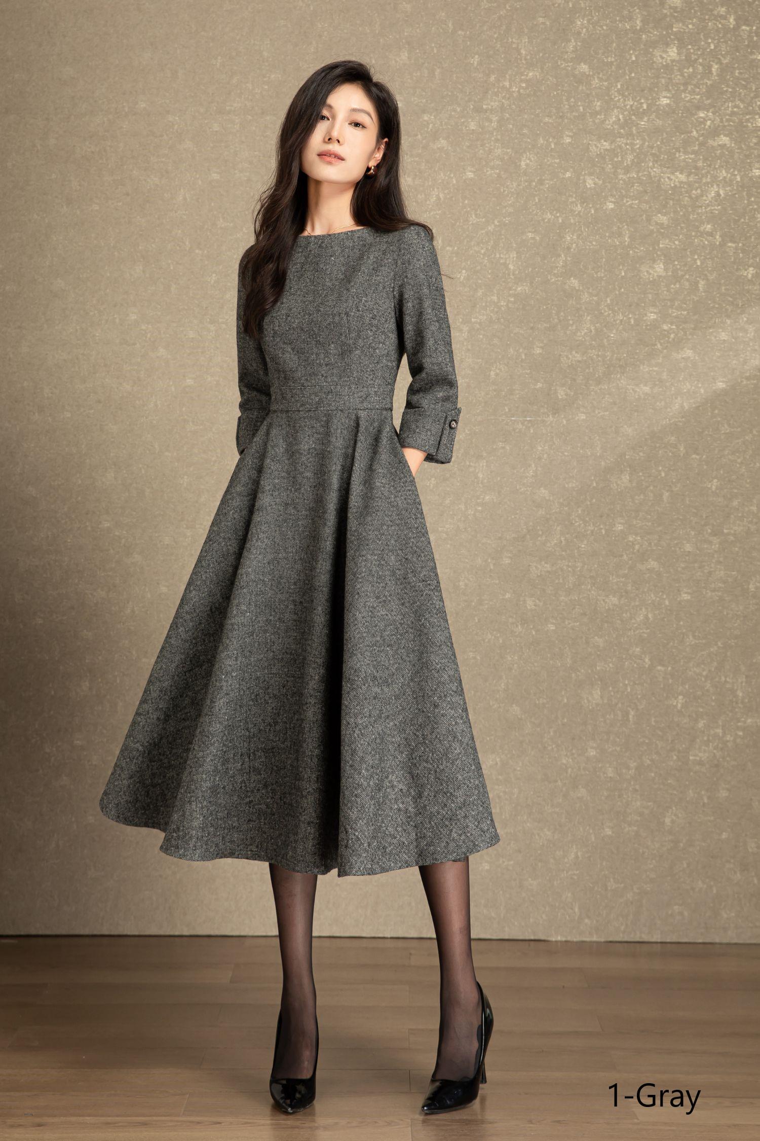 Swing wool dress women, Fit and flare dress, Grey wool dress, Midi wool dress, Warm Winter wool dress, Handmade dress, Ylistyle C4495