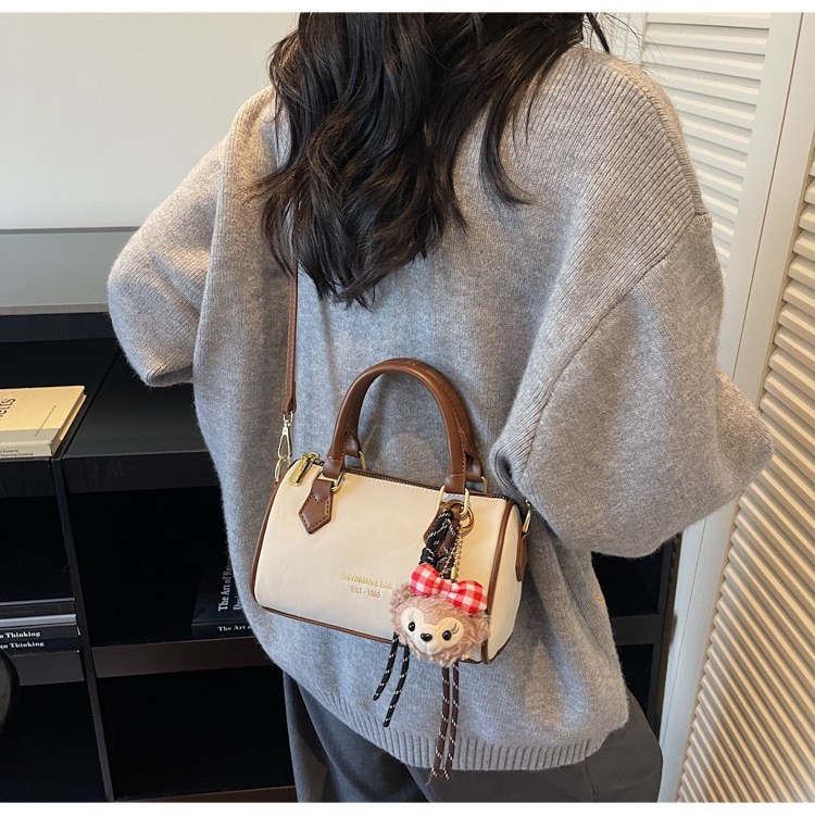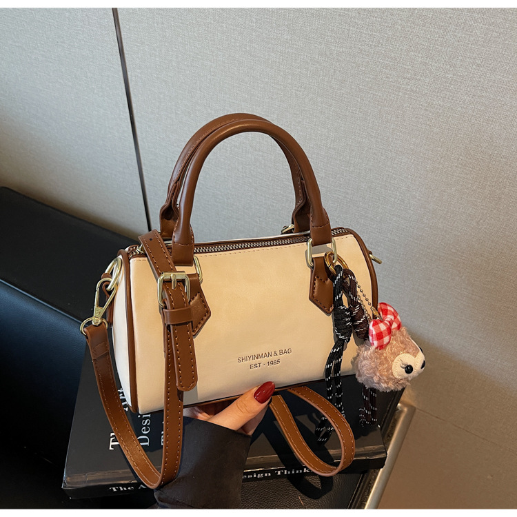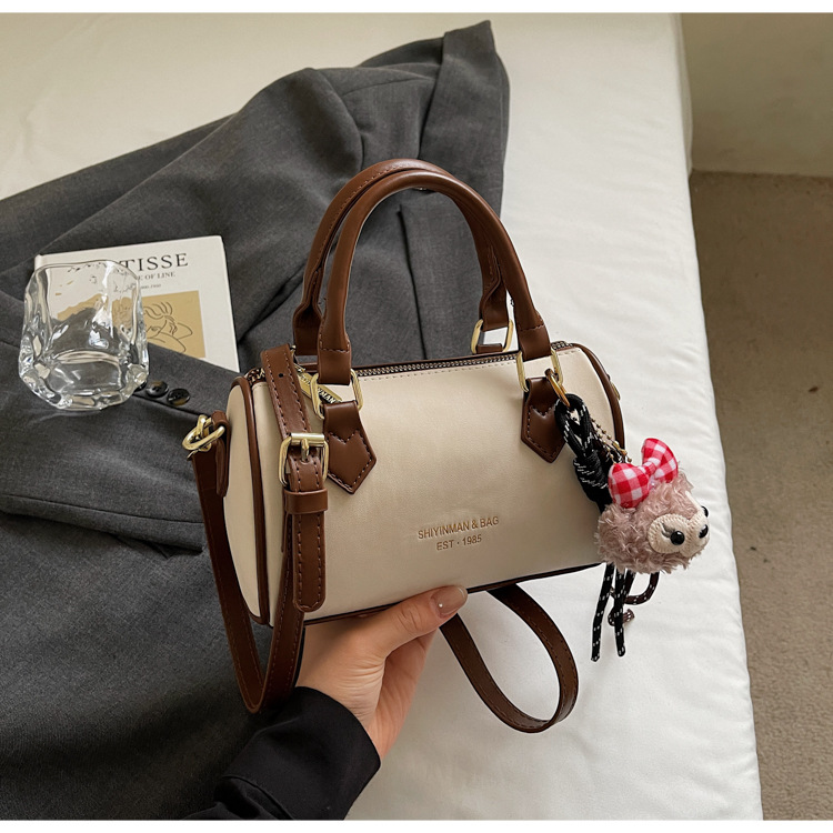 This two-tone mini satchel is a versatile staple for modern wardrobes. Made of premium durable material, it offers retro charm with flexible carry options top handle or detachable crossbody strap. The contrasting trim, metallic hardware, and plush charm add polished, playful details, while the compact interior caters to daily small essentials. Suitable for daily life, casual outings, or on-the-go days, it complements a range of outfits to create a chic, laid-back look that stays practical and fashionable.