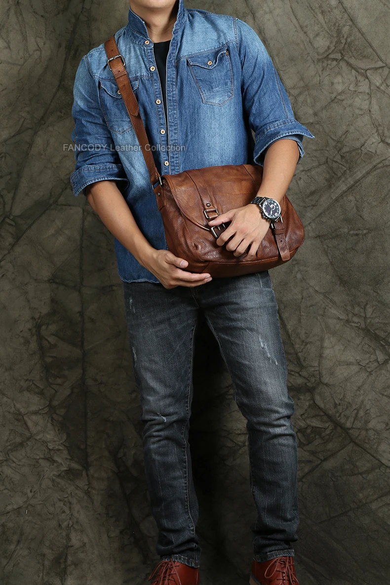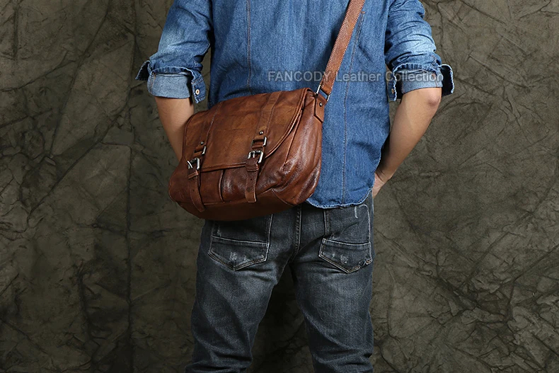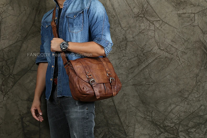 Vintage Genuine Leather Messenger Bag men Leather Shoulder Bag Men Crossbody Bag male Fashion Casual Sling Leisure Bags Brown