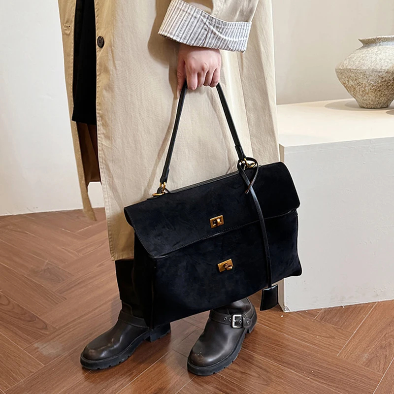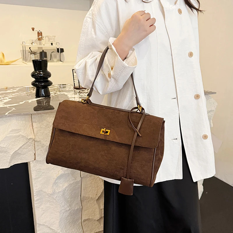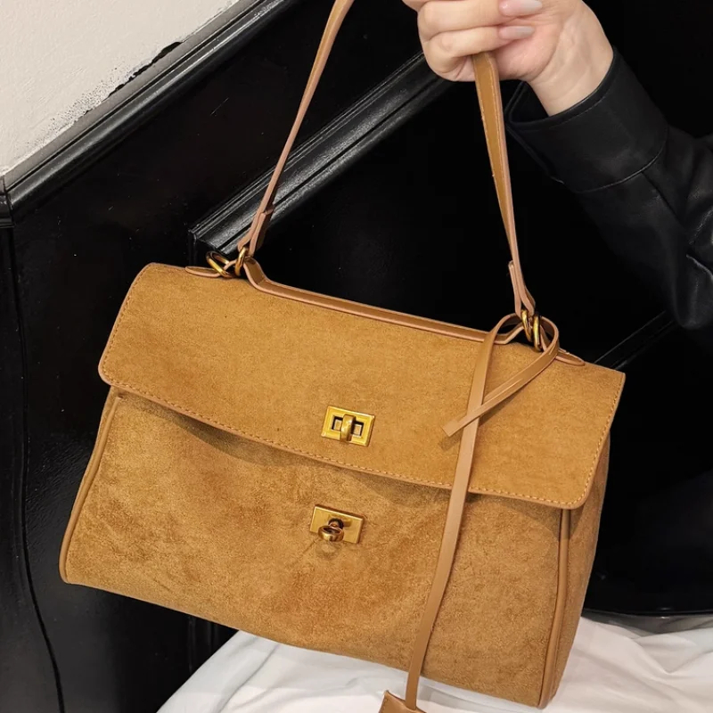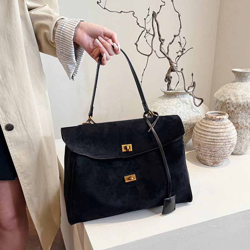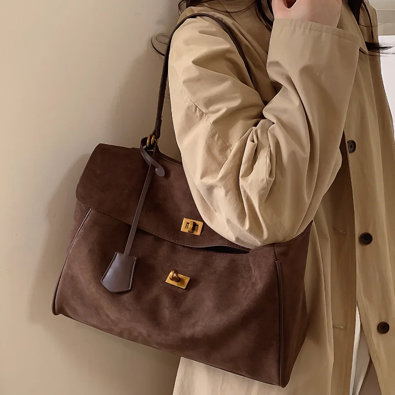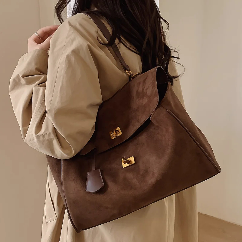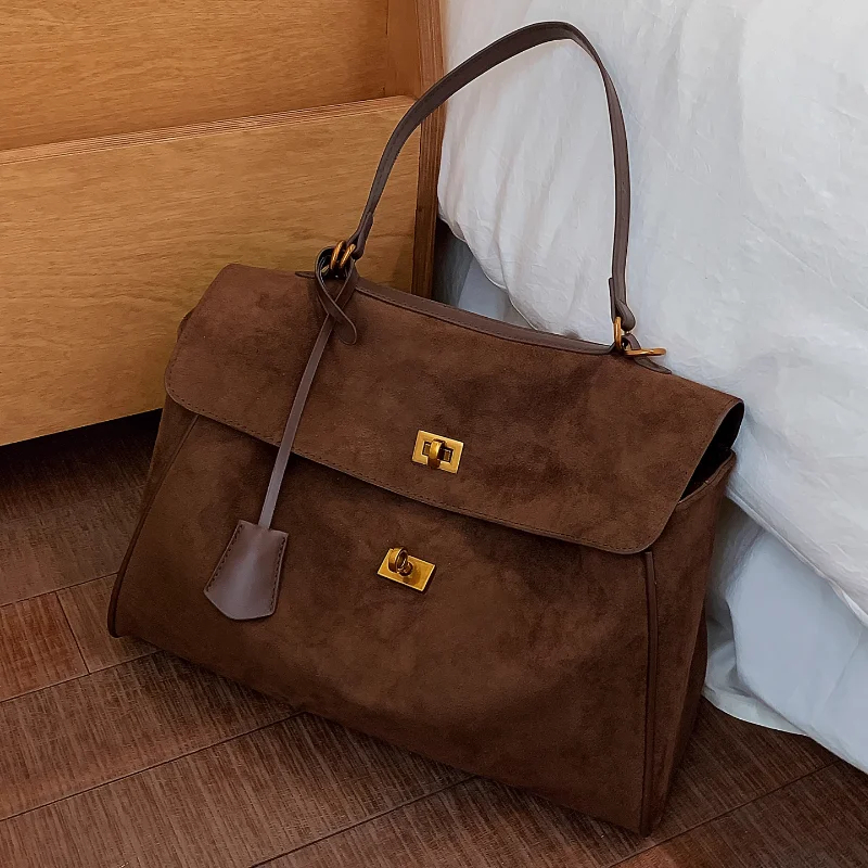 This multi-carry suede lock flap bag is a versatile staple for your accessory collection. Made of premium suede, it prioritizes luxurious comfort while ensuring practical use. The adjustable carry options offer flexible styling, and the metal lock detail adds sophisticated, stylish charm. Suitable for daily commutes, brunch outings, or work days, pair it with different outfits to create a chic look that adapts to any occasion. Stay organized and fashionably refined with this essential piece.