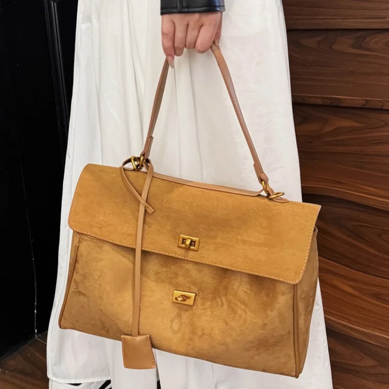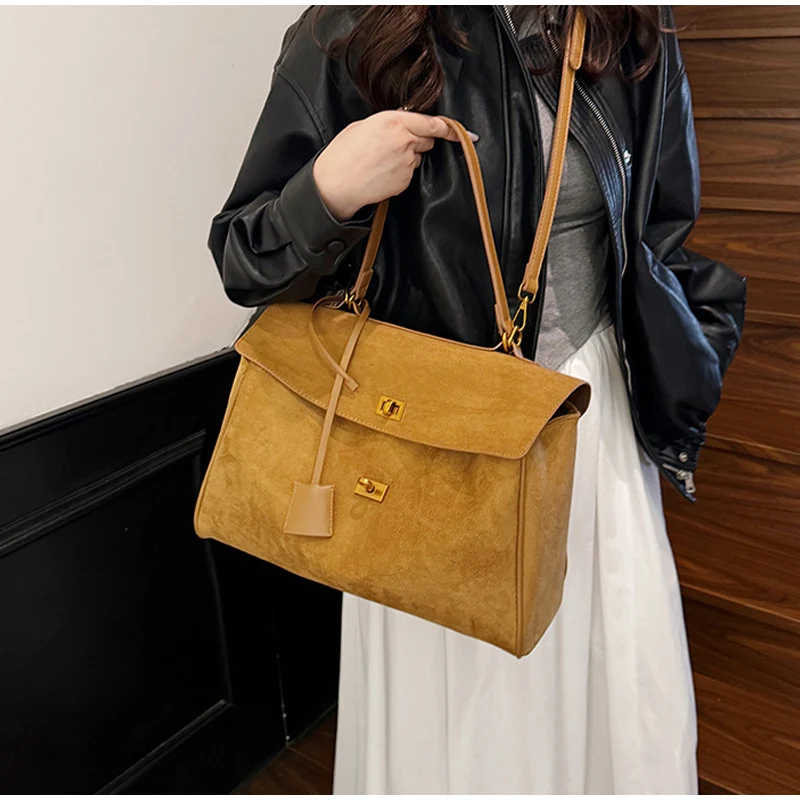 Vintage Ladies Tote Bag Brand Large Capacity Frosted Handbag High-end Pu Material Shoulder Messenger Bag Niche Simple Travel Bag