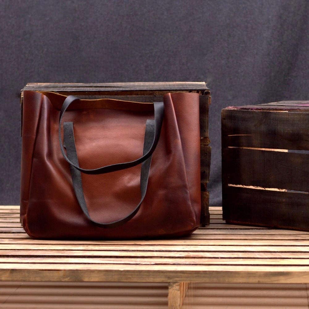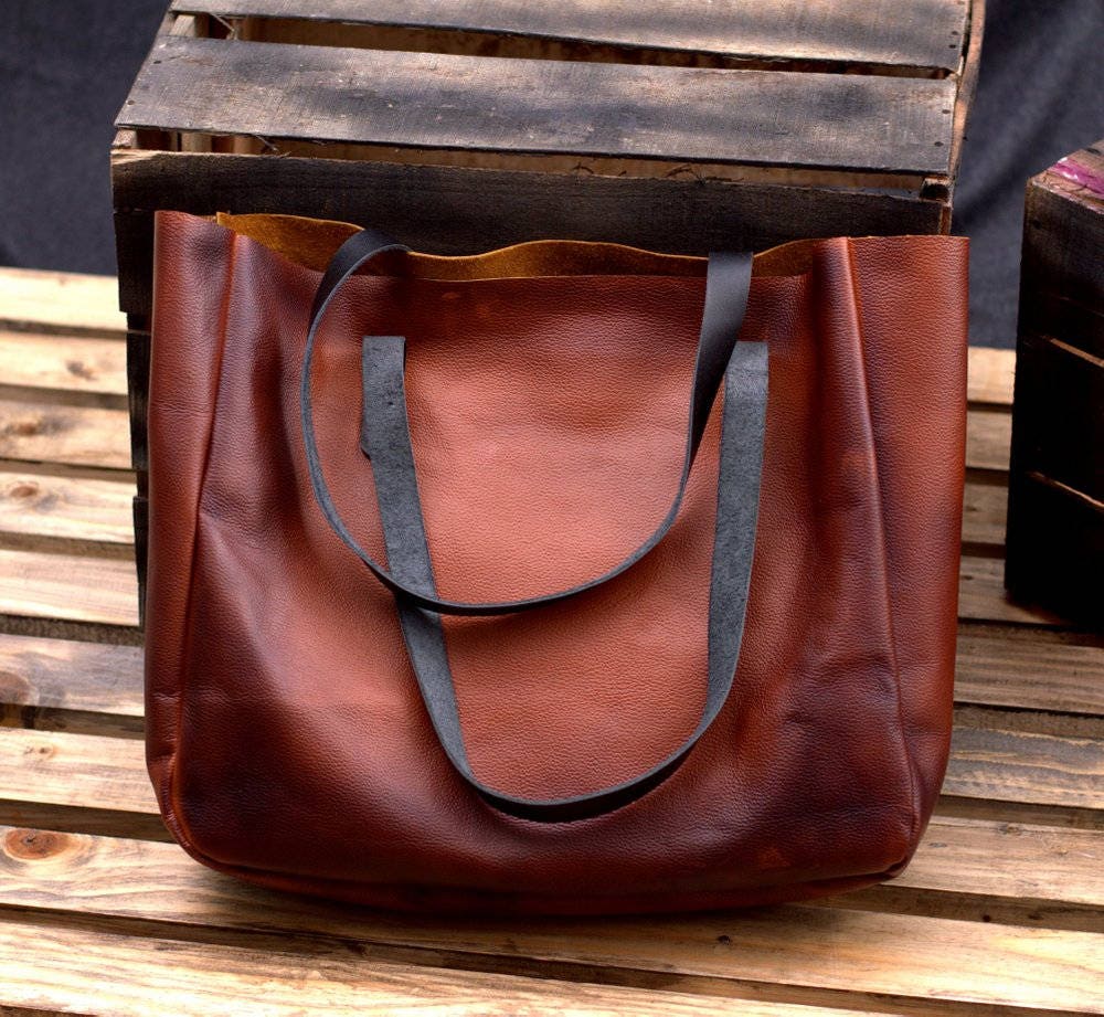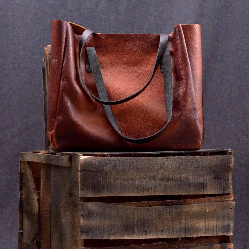 Crafted from premium full-grain leather, this tote bag blends warm amber tones with deep black accents for a bold, artisanal look. Its thick, durable material ages beautifully, developing a unique patina that adds rugged character—perfect for long-term, everyday use.