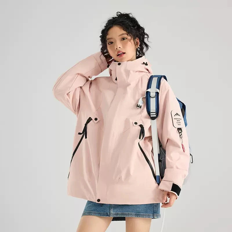 Description: This women’s jacket is a versatile addition to your wardrobe. Made of waterproof and durable technical fabric, it keeps you protected in rainy or windy weather. The adjustable hood and cuffs add a functional and personalized touch, and the multi-pocket design brings both style and practicality. The oversized fit allows for easy layering, making it suitable for daily wear, outdoor adventures, or casual street style. Pair it with different bottoms and accessories for a chic look that can be adapted to various occasions. Stay protected and fashionable with this trendy jacket.