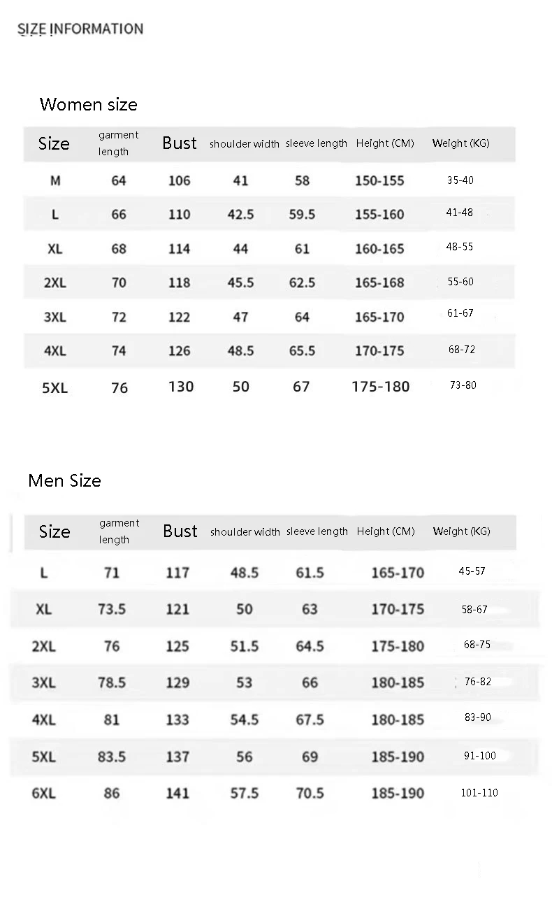 | Size | S, M, L, XL, XXL, XXXL |