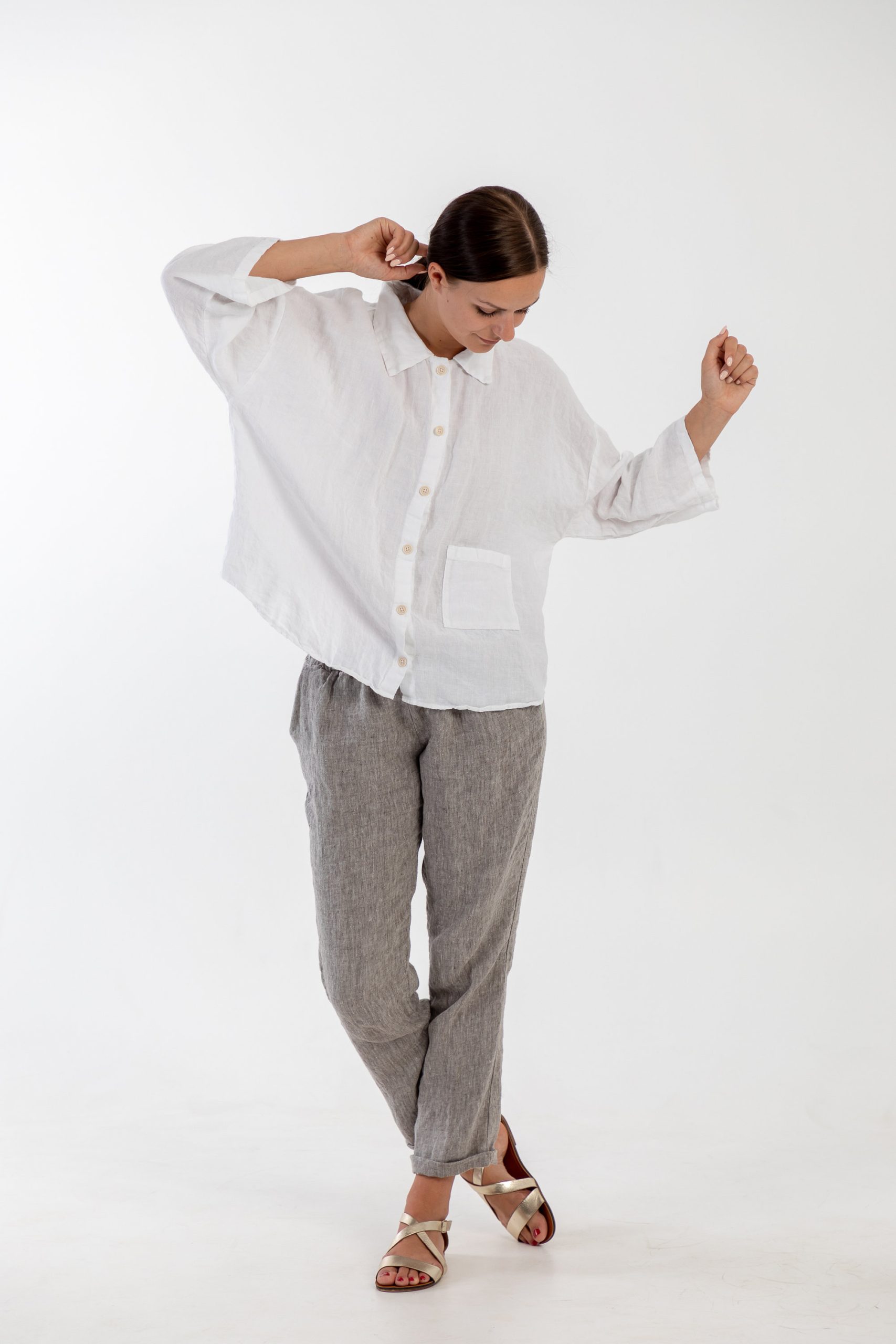 White Linen shirts Linen shirt women, 34 sleeves shirt , plus size shirt, tunic shirt , boho shirt