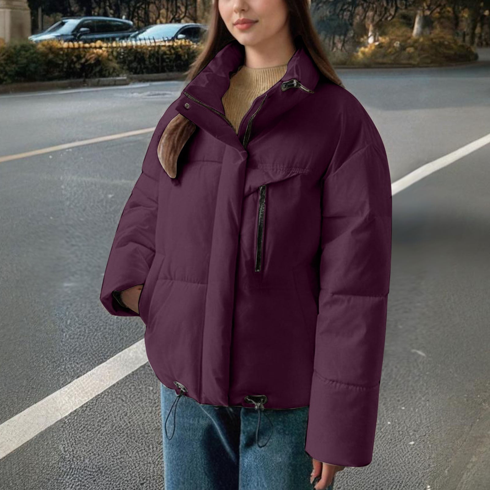 Crafted from premium smooth polyester, this cropped puffer jacket offers a soft, lightweight feel paired with targeted insulation. It locks in just the right amount of warmth for cool spring evenings, crisp autumn days, and mild winter outings — all while remaining breathable enough to avoid feeling bulky, so you stay comfortable without sacrificing style.