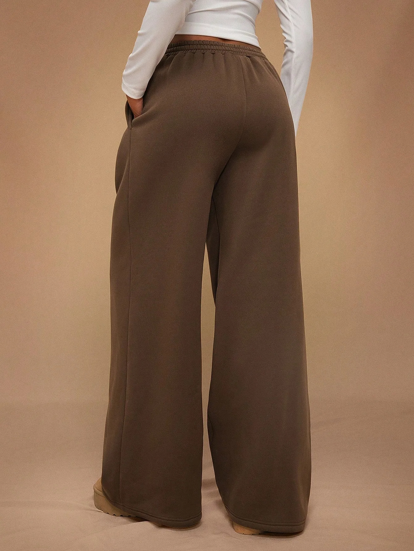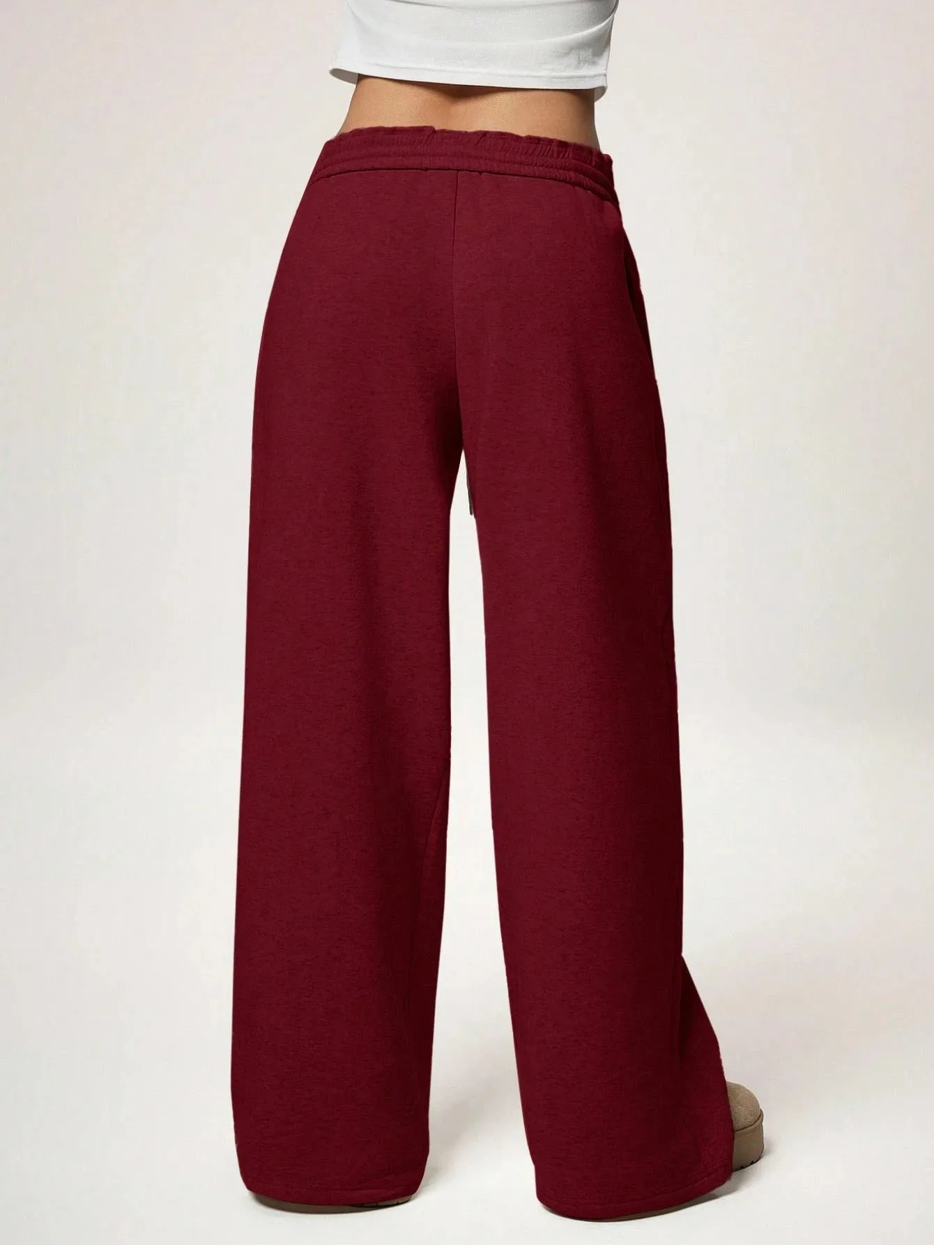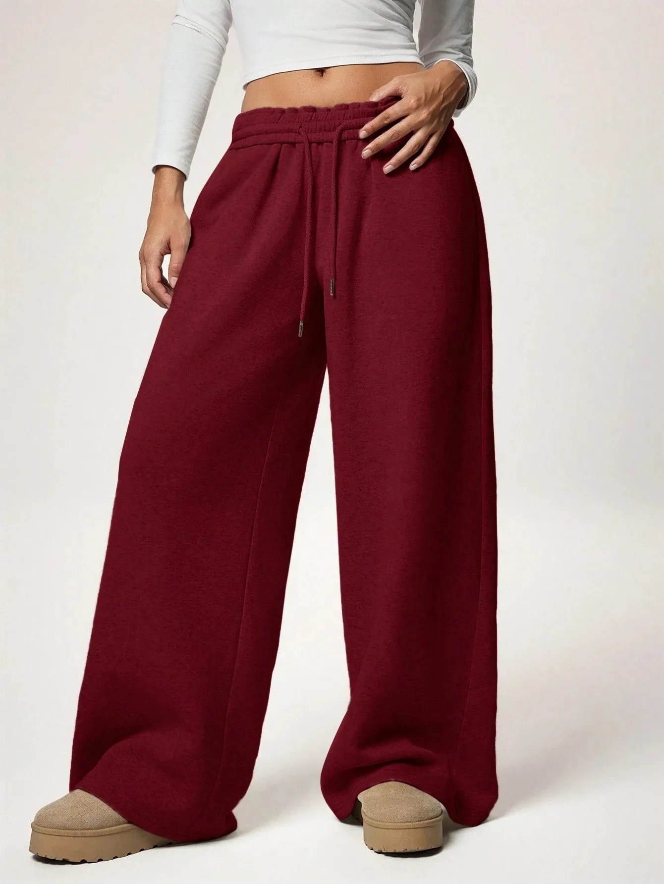 Soft & Cozy: Crafted from premium knit fabric, these pants offer exceptional softness and coziness, ensuring comfort in autumn and winter without compromising style.Elastic Waist & Drawstring: Featuring an elastic waist with an adjustable drawstring and a ruffled detail, these pants add a personalized and trendy touch to your look while providing practical functionality for a snug fit.Chic Pocket Detail: Elevate your outfit with the side pockets that add a casual flair to the design. The pockets not only enhance style but also offer convenient storage for small essentials.Relaxed Wide-Leg Fit: Designed in a relaxed wide-leg fit, these women’s pants offer a comfortable wearing experience and suit various body shapes, allowing you to showcase a confident and laid-back appearance effortlessly.Versatile Styling: Perfect for various occasions, these pants pair seamlessly with crop tops, sweaters, or casual jackets. Customize your look by accessorizing with different shoes, bags, and accessories to suit different settings from daily life to casual gatherings or cozy outings.