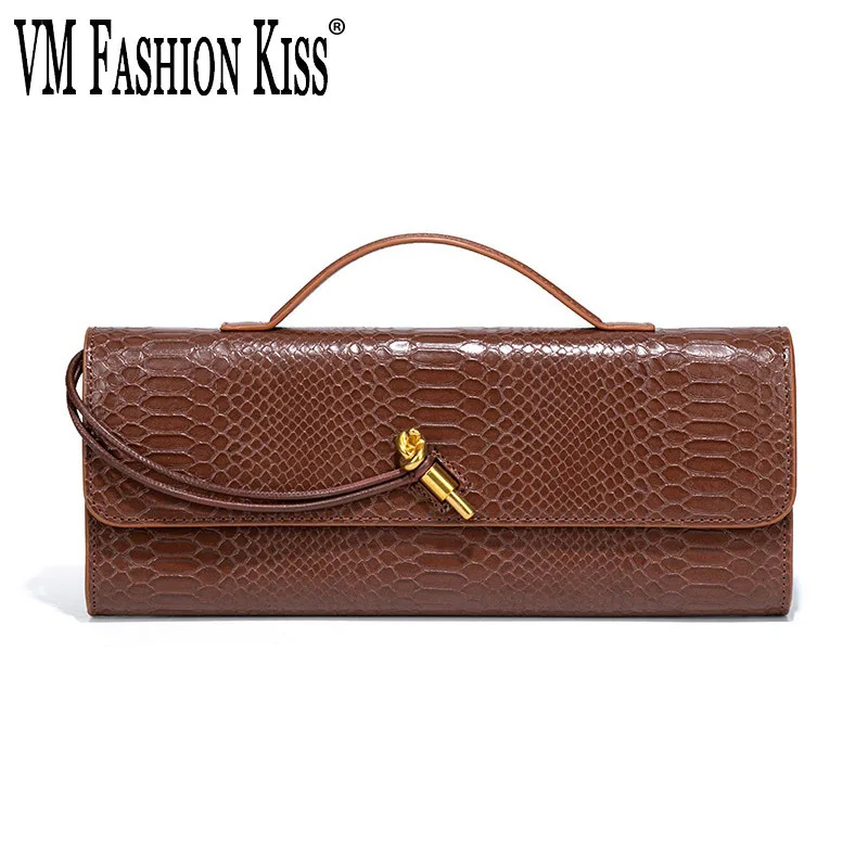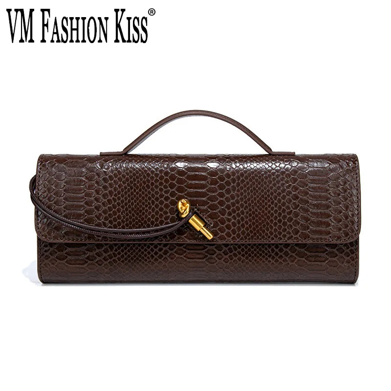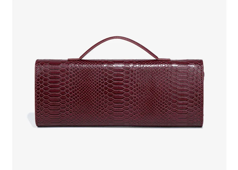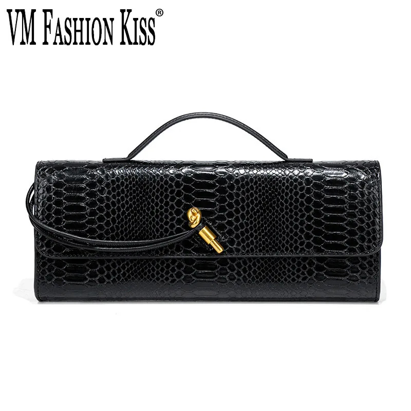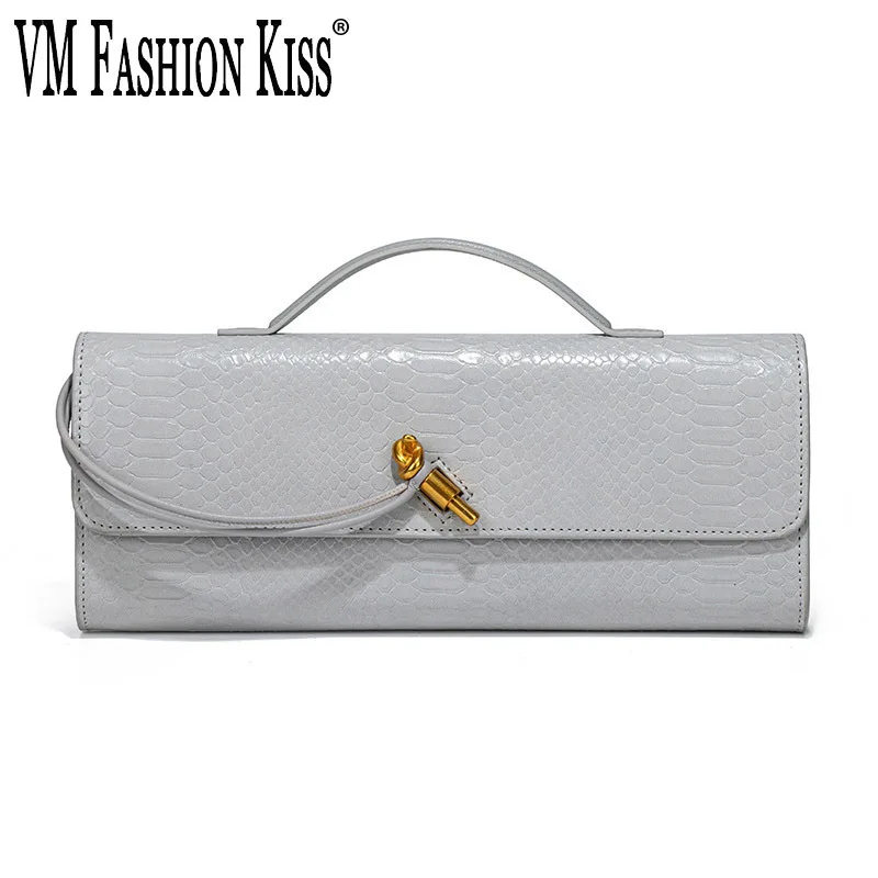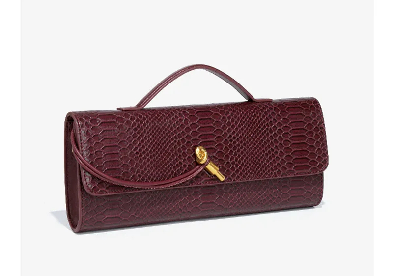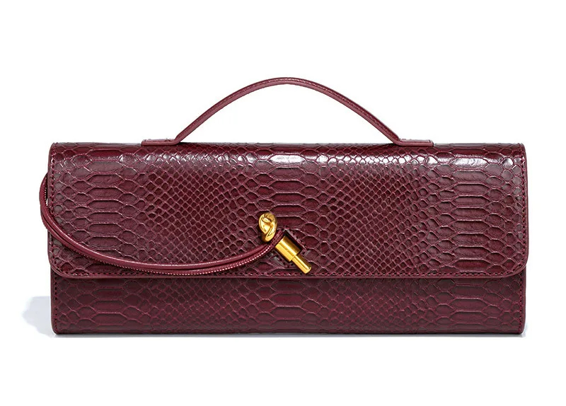 Description: This stylish bag is a versatile addition to your accessory collection. Made of luxurious snakeskin-patterned material, it ensures a refined aesthetic and longevity. The unique gold-tone hardware and dual-carry options add a fashionable element, while the clutch silhouette offers practical storage for essentials. Its formal design flatters any outfit, making it suitable for special events, evening wear, or upscale gatherings. Pair it with evening gowns, dresses, or suits for a chic look that adapts to various formal settings. Stay stylish and sophisticated with this trendy bag.