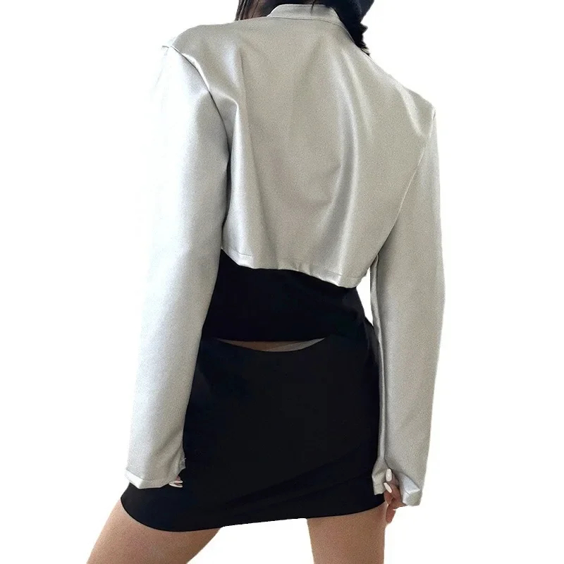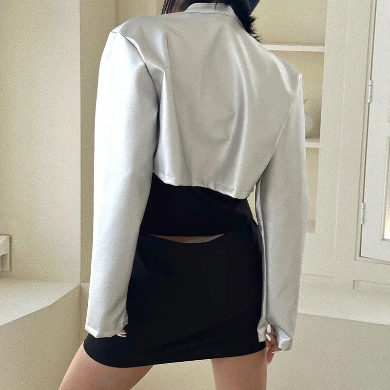 Sleek & Edgy: Crafted from premium faux leather fabric, this cropped jacket offers a smooth, structured texture that’s both durable and stylish—its lightweight material ensures comfort while maintaining a bold, modern silhouette.