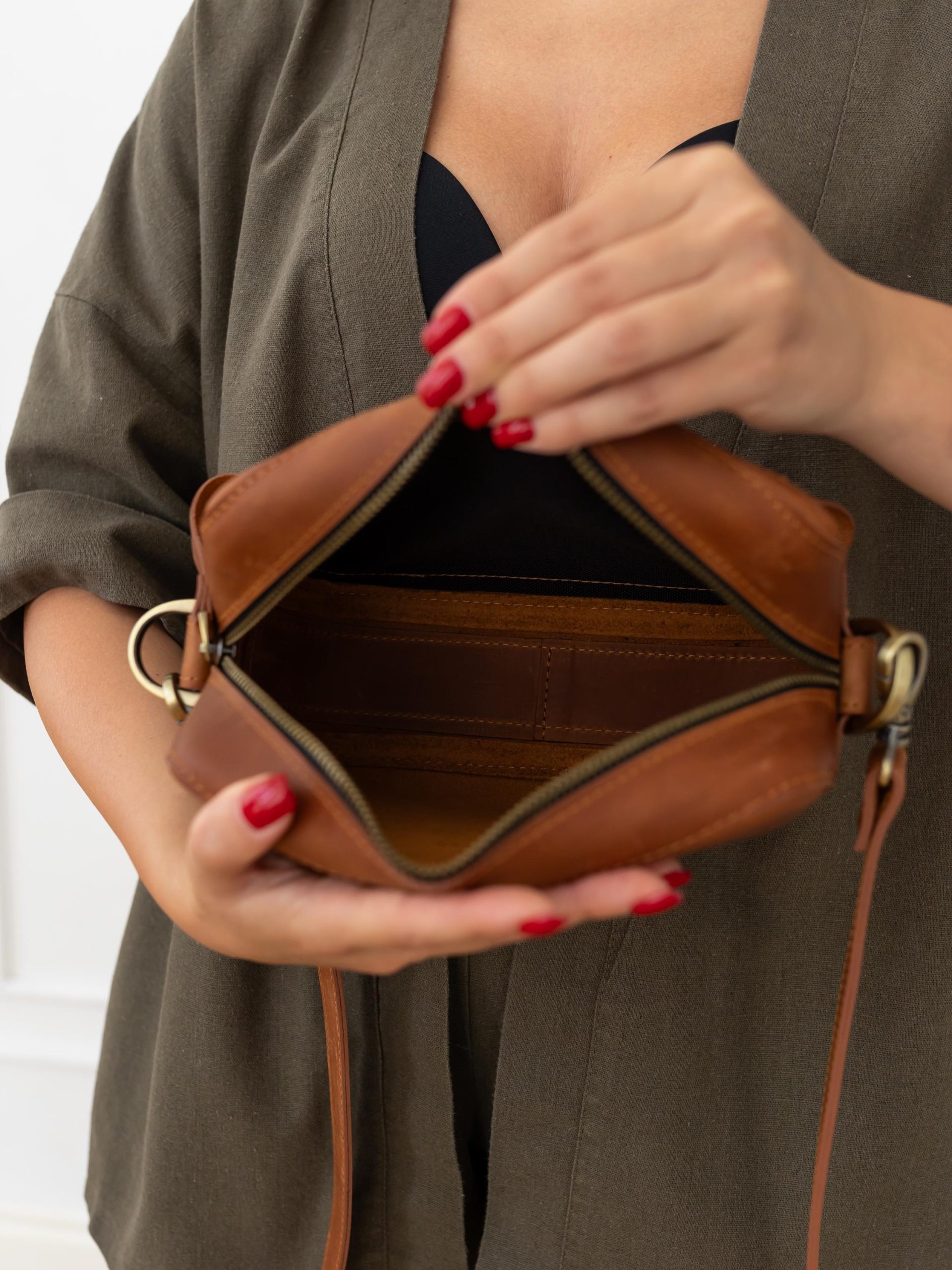 Women leather everyday handbag, small crossbody, minimalist daily bag