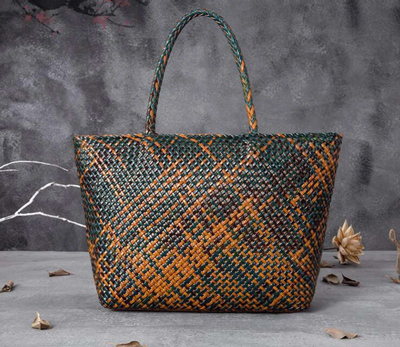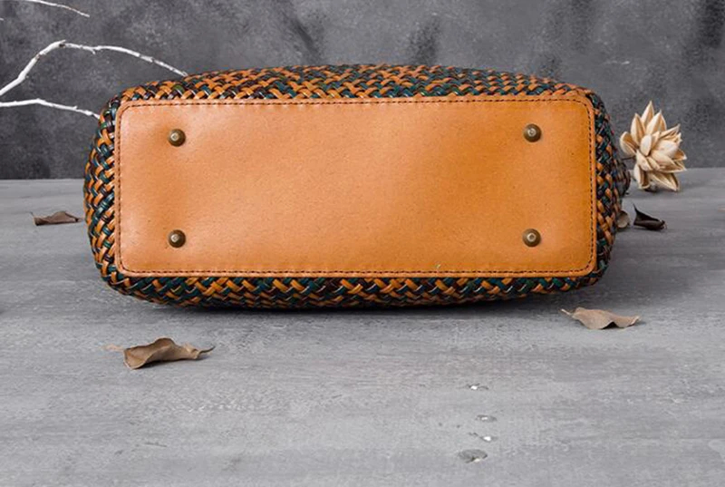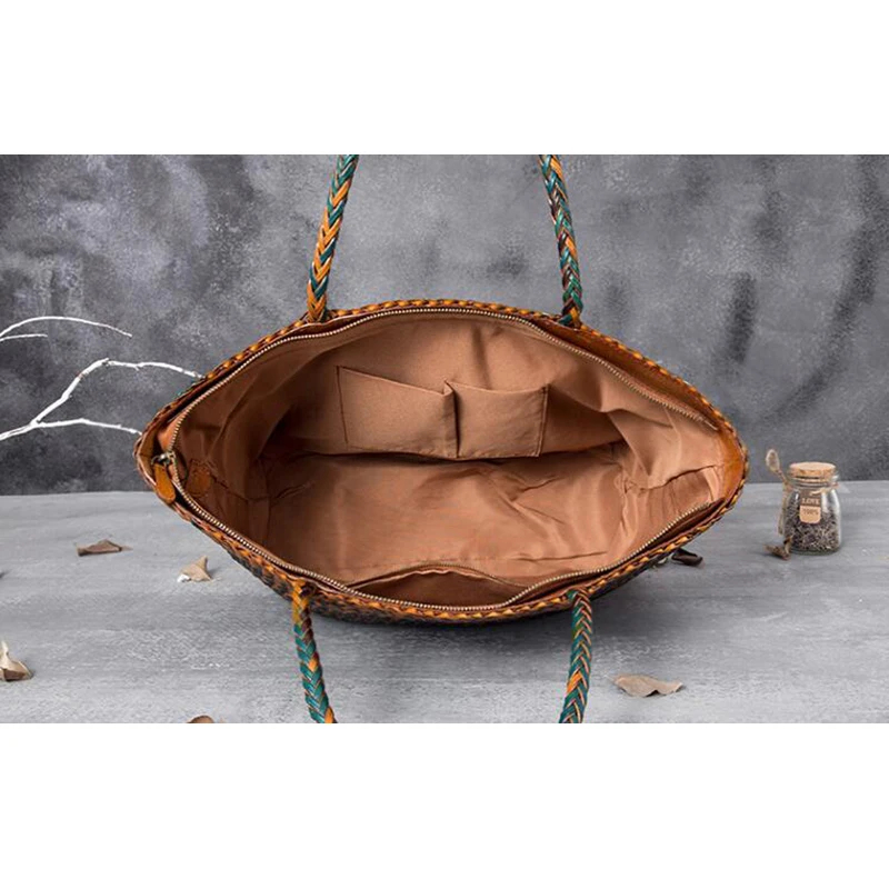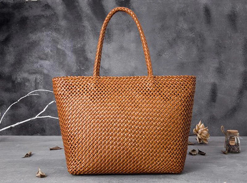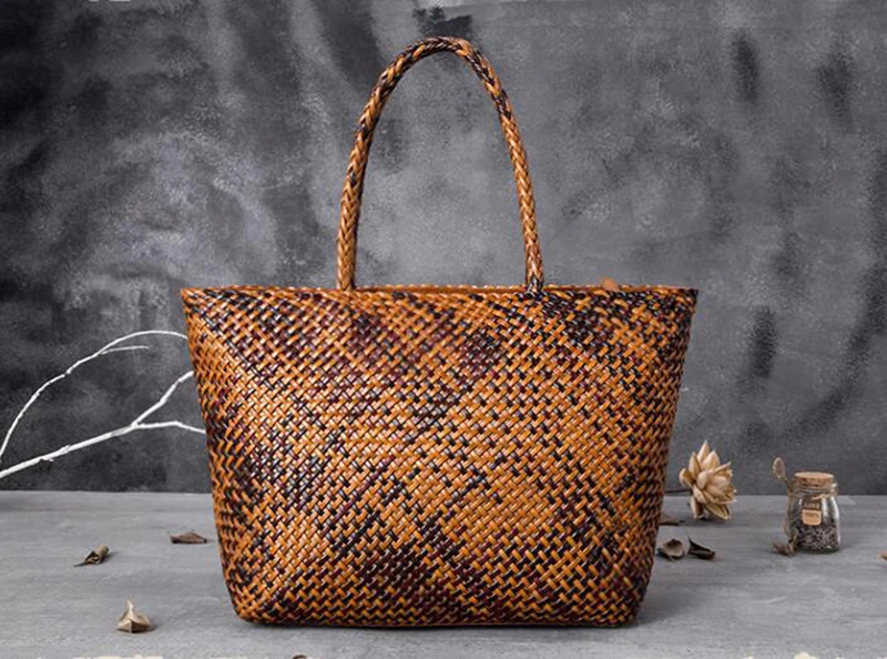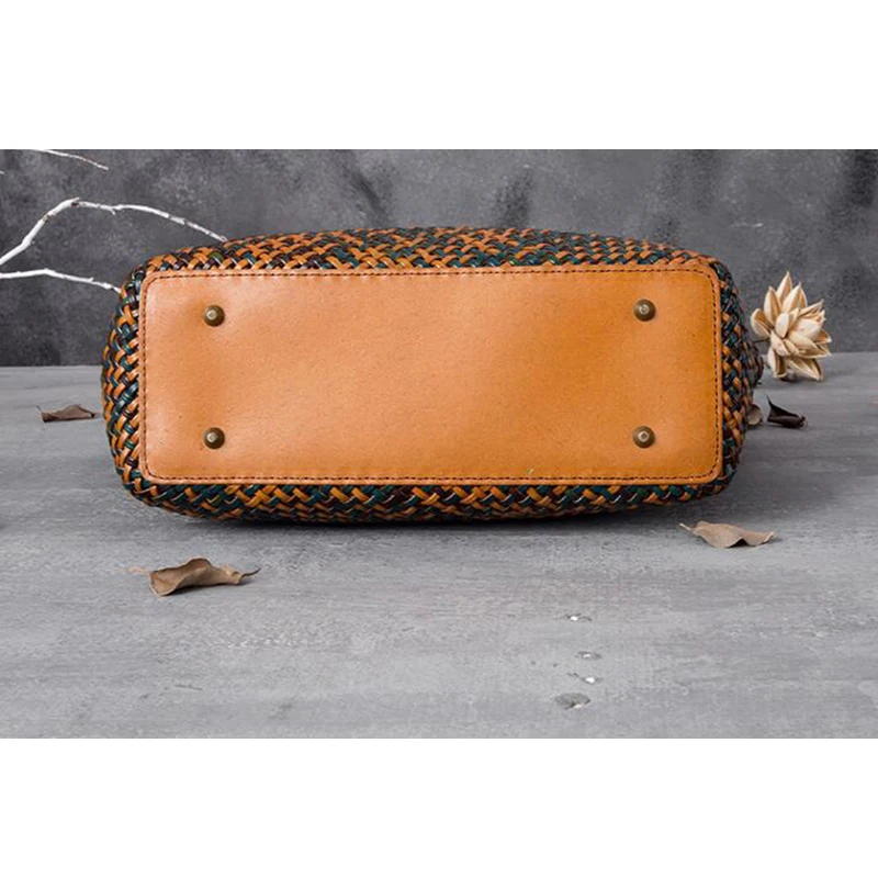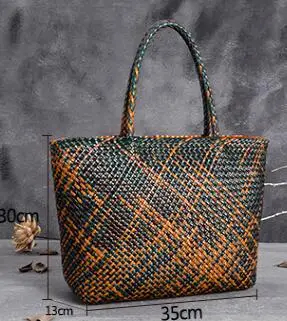 Women Leather Handbag Romantic Big Handmade Woven Totes Female Cowhide Big Holiday Bucket Bag Causal Beach Shoulder Handbags
