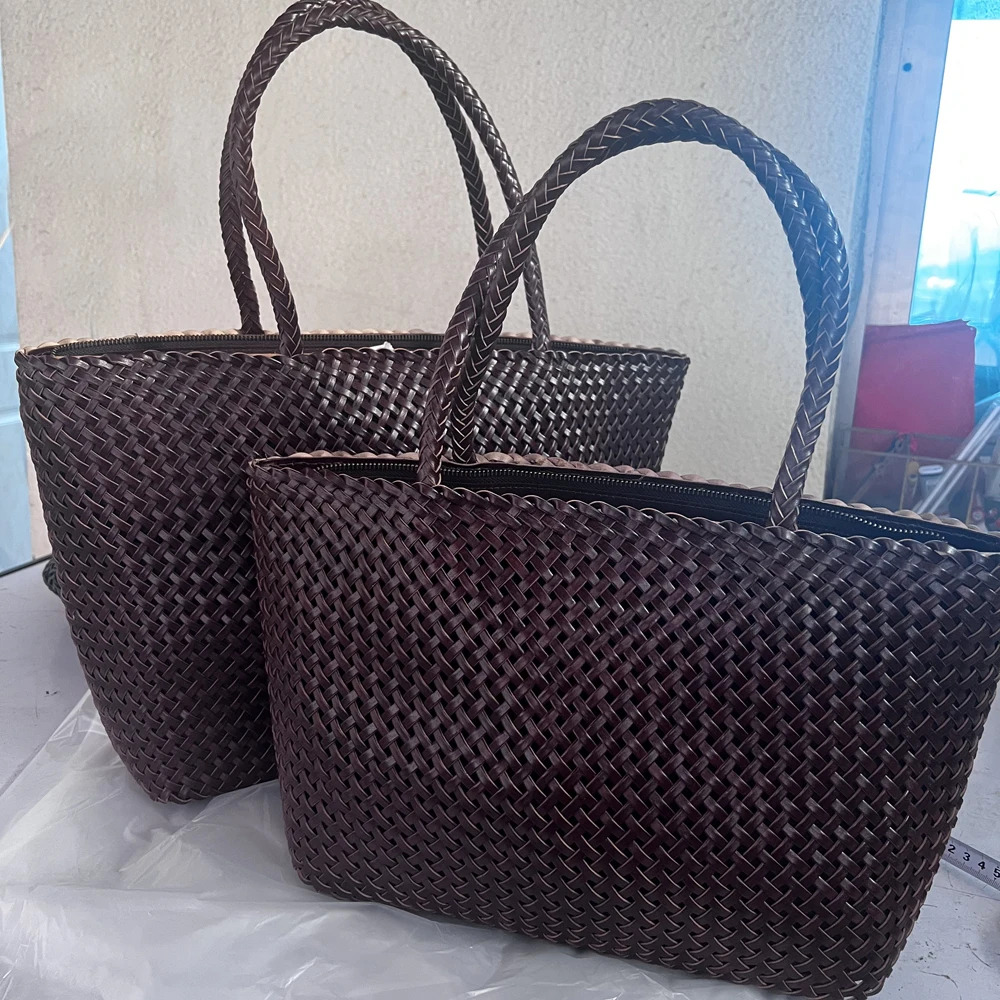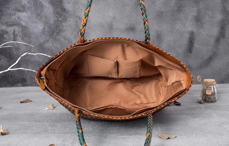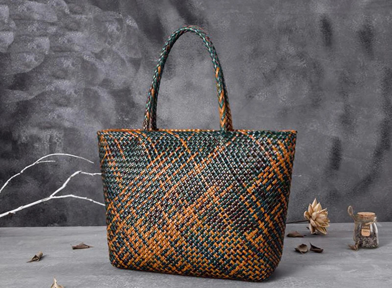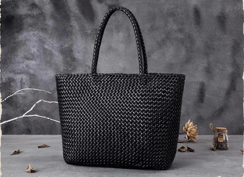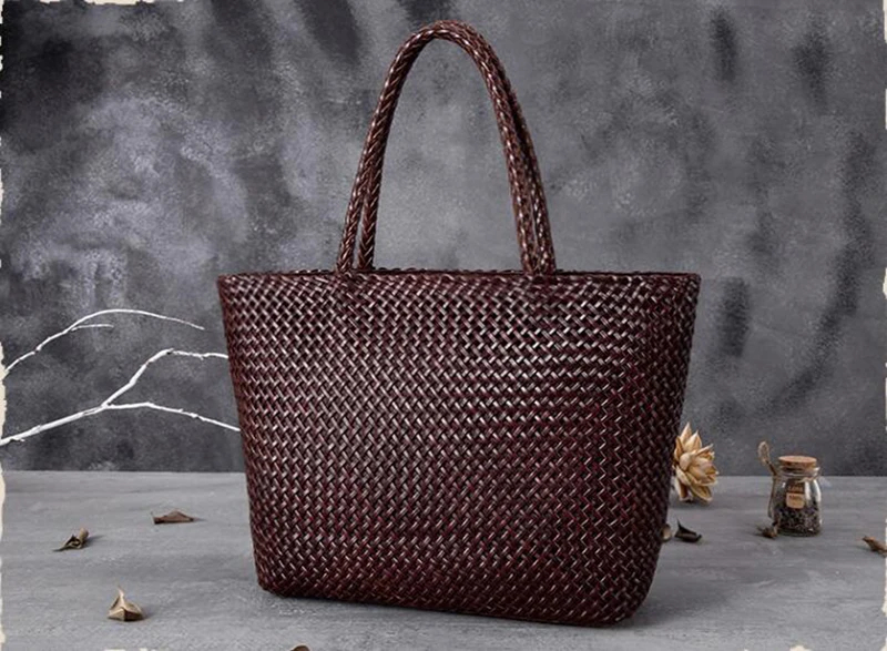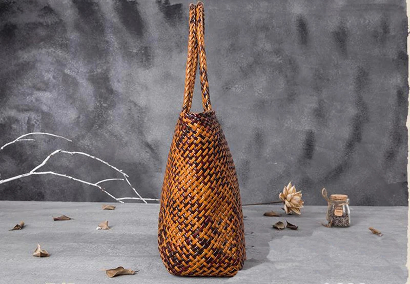 Women Leather Handbag Romantic Big Handmade Woven Totes Female Cowhide Big Holiday Bucket Bag Causal Beach Shoulder Handbags