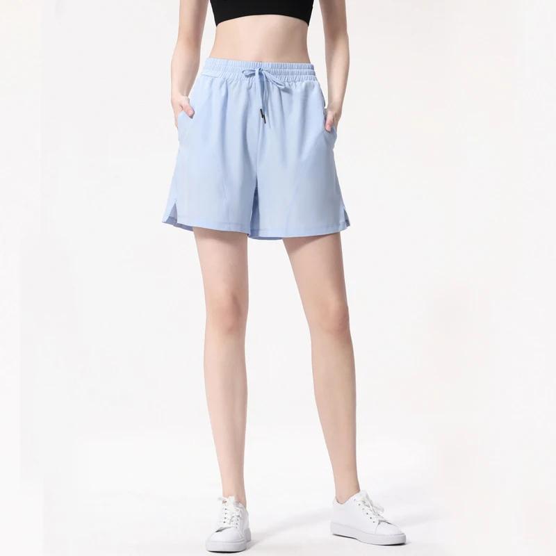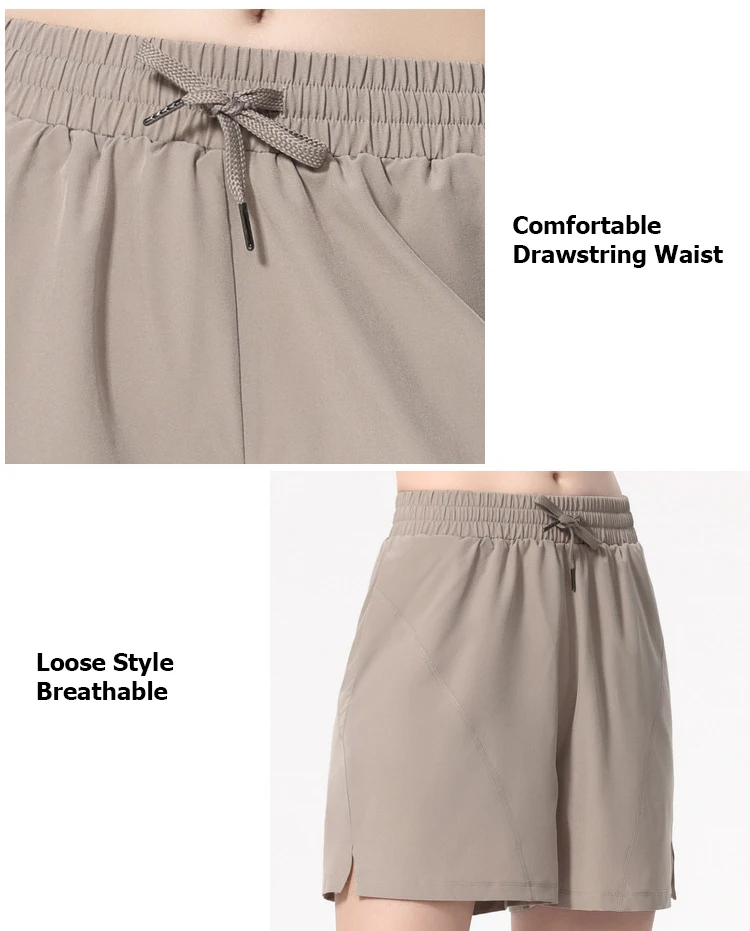 Women Loose Sports Shorts Drawstring Waist Pocket Running Shorts Breathable Quick Dry Workout Clothes Female Sportswear