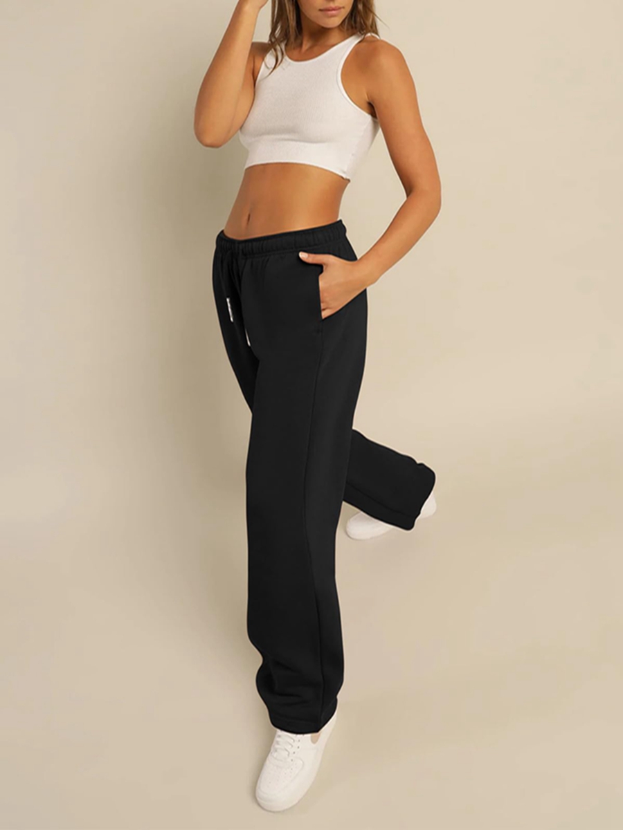 Women s Causal Trouser Drawstring High Waist Jogger Pants Baggy Straight Wide Leg Sweatpants with Pockets
