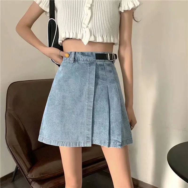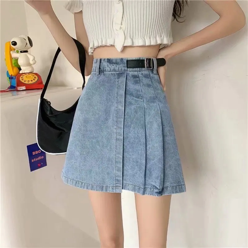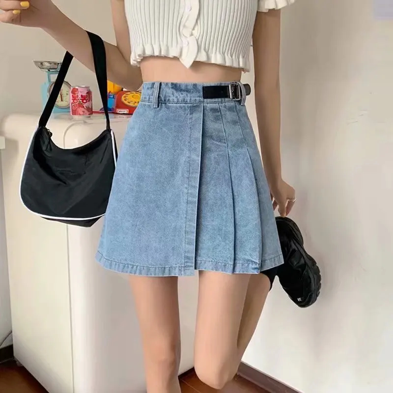 Women Sexy A-line Mini Jean Pleated Skirt for Hot Girls Slimming Bodycon Denim Skirts Wear Clothing