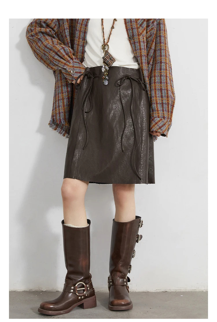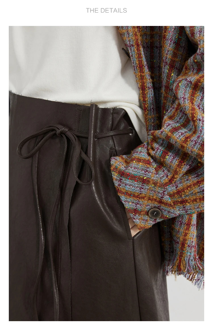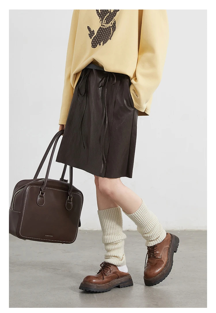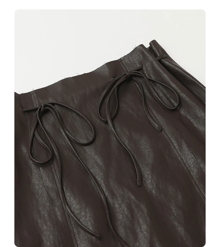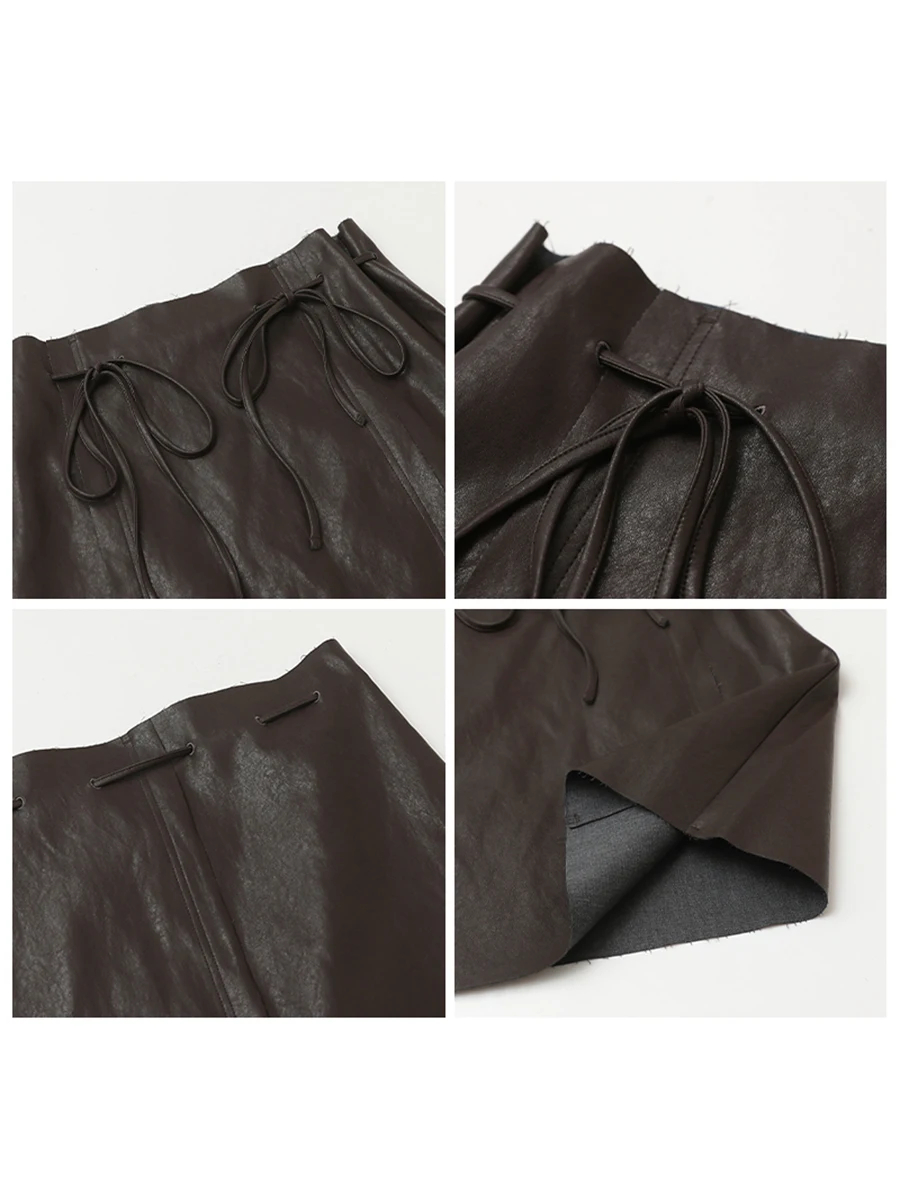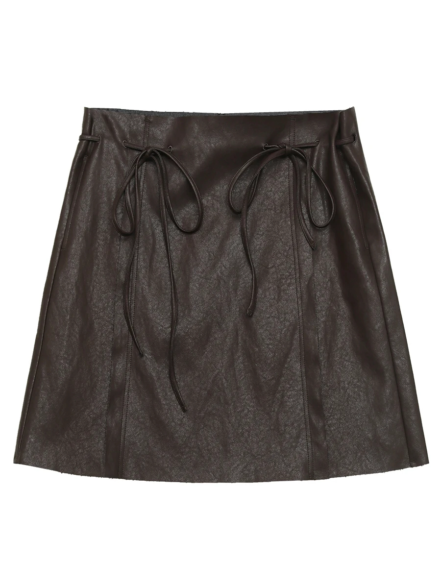 Women Skirts Solid Loose Casual New Drawstring High Waist A-line Office Ladies PU Short Mini Skirt Autumn Winter 2025
