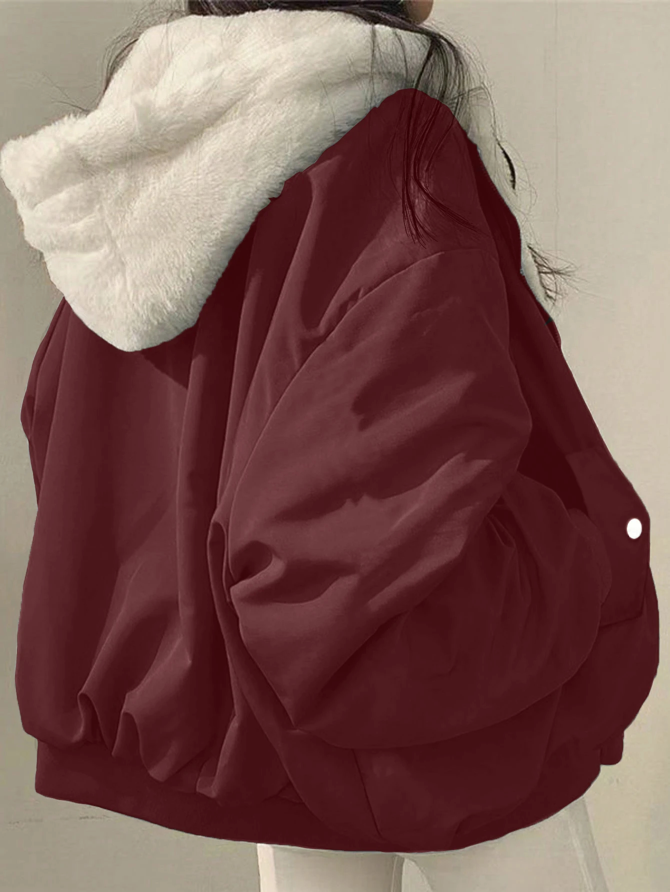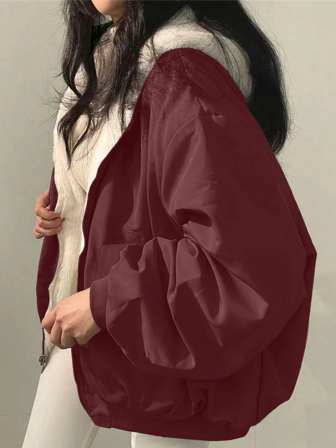 Oversized Flattering Fit: Designed in an oversized fit, this women’s long-sleeved jacket balances comfort and style, showcasing a relaxed silhouette that boosts confidence for casual or winter settings.