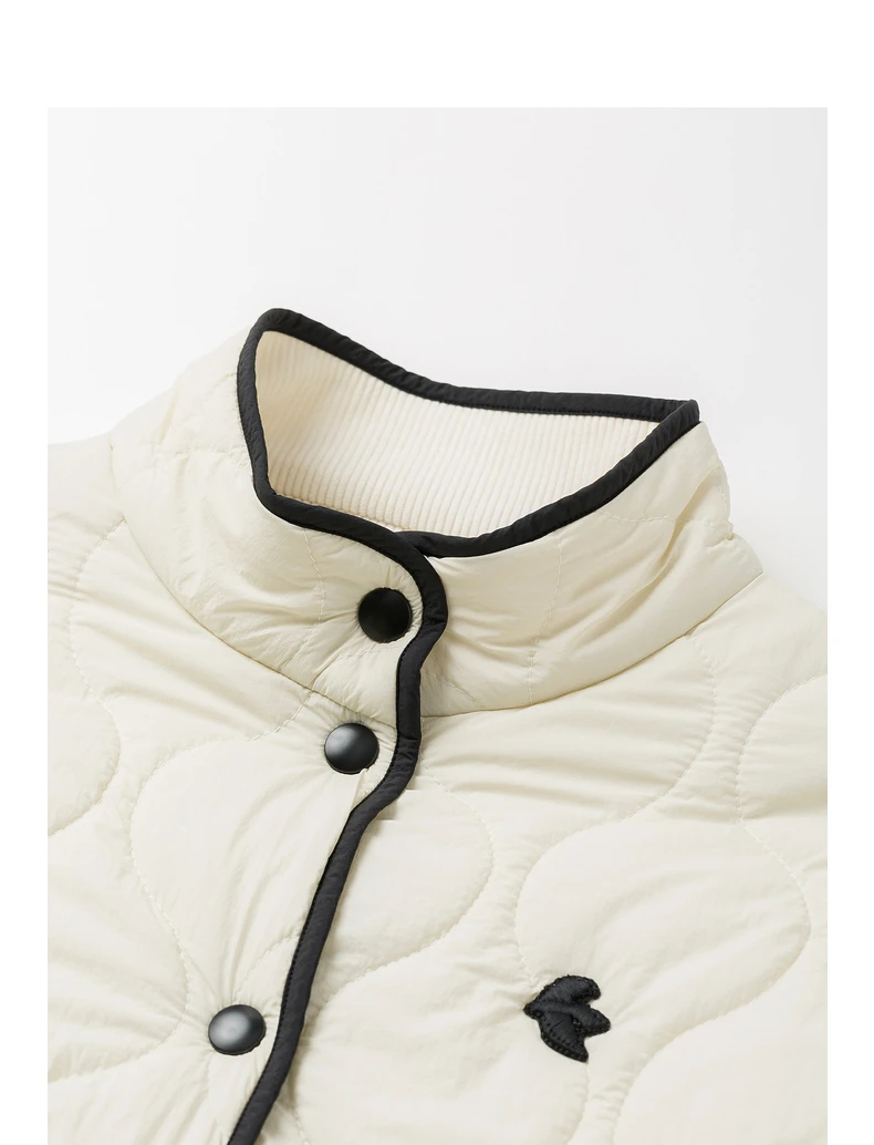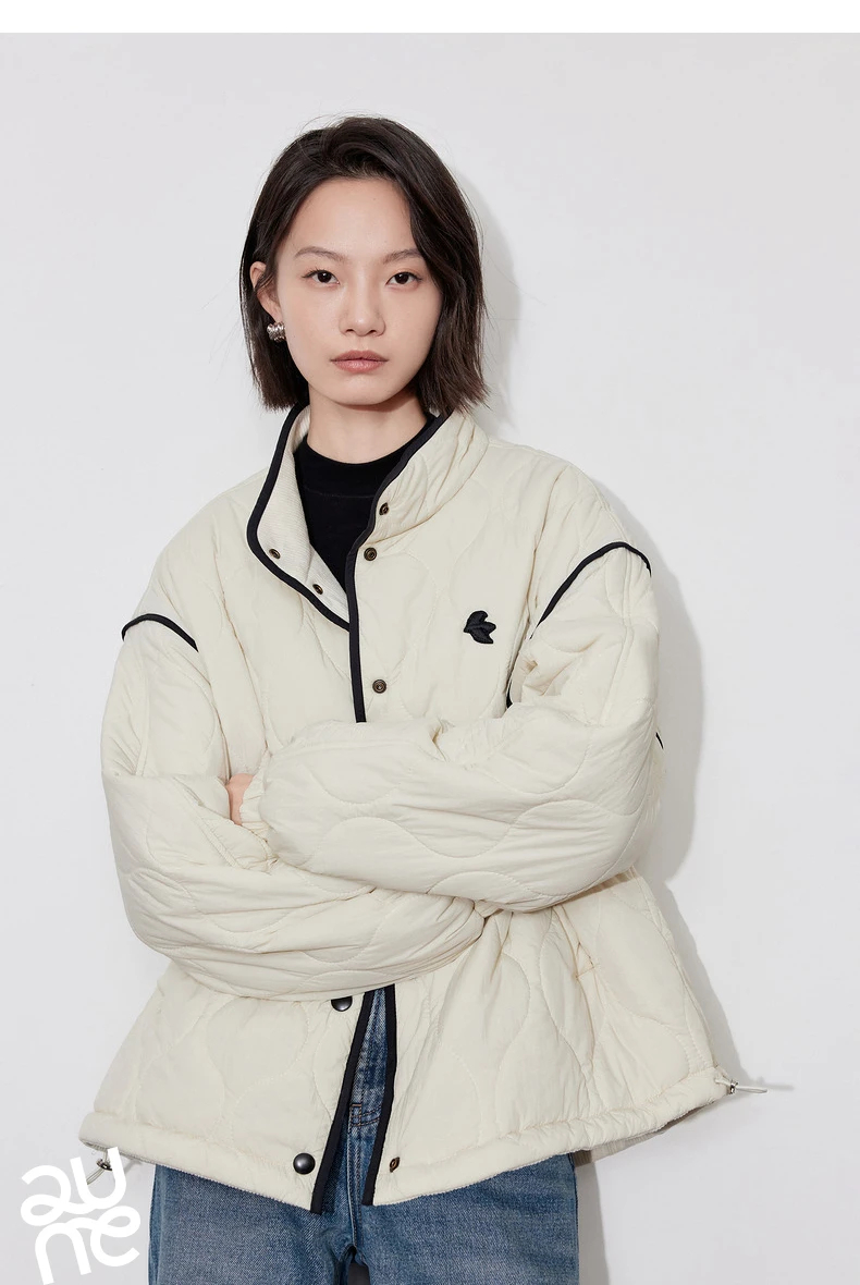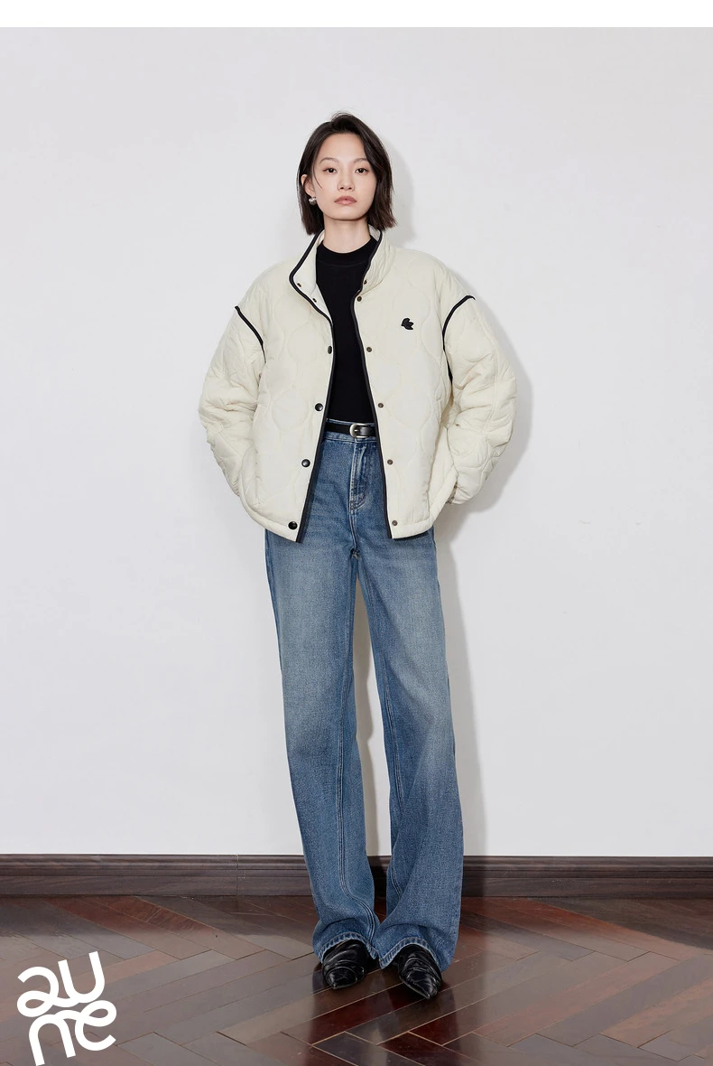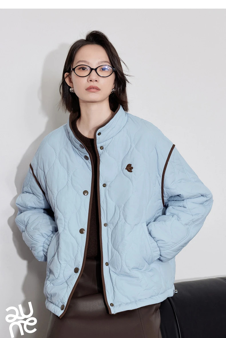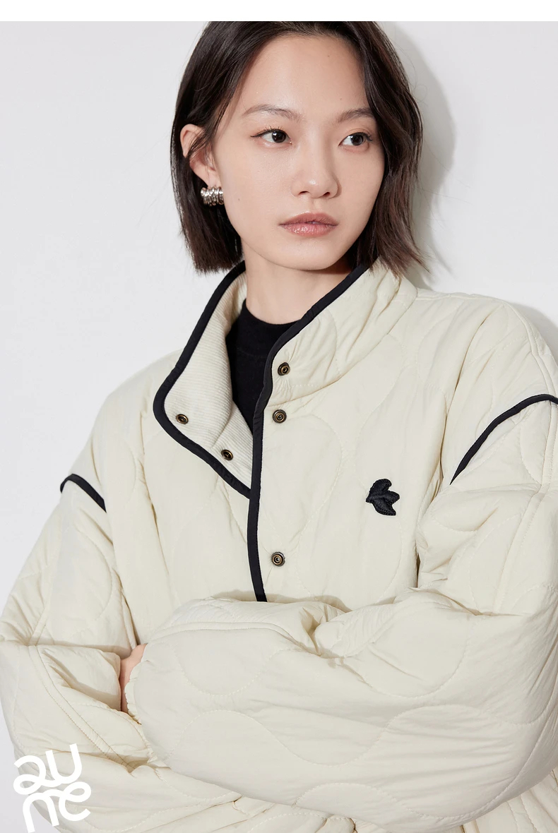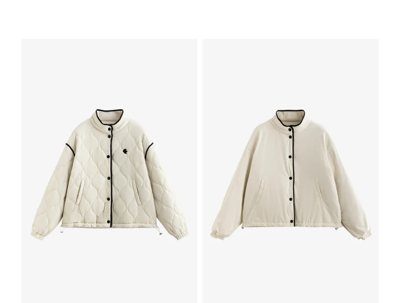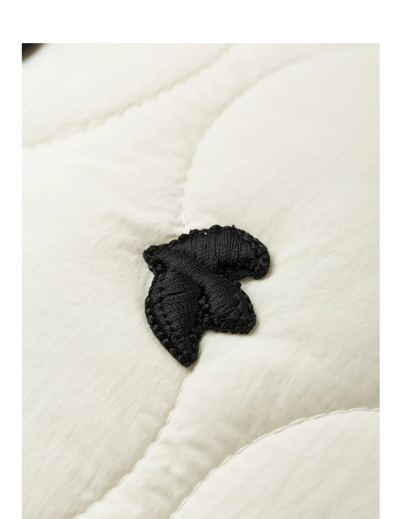 Warm & Stylish: Made from premium quilted fabric, this jacket provides excellent warmth and a stylish appearance, ensuring comfort in autumn and winter while keeping your style on point.Stand-Up Collar & Button Design: Featuring a sleek stand-up collar and classic button-front closure, this jacket adds a sophisticated and trendy touch to your outfit, perfect for creating a chic look.Chic Embroidered Detail: Elevate your outfit with the cute embroidered motif on the front. It adds a unique and fashionable element to the design, making the jacket stand out.Relaxed Fit: Designed in a relaxed fit, this women’s long-sleeved jacket offers a comfortable wearing experience and flatters various body shapes, allowing you to show off your confidence and style effortlessly.Versatile Styling: Perfect for many occasions, this jacket can be paired easily with jeans, wide-leg pants, or even skirts for different looks. You can accessorize it with various bags, shoes, and accessories to adapt to settings from daily commutes to casual outings.