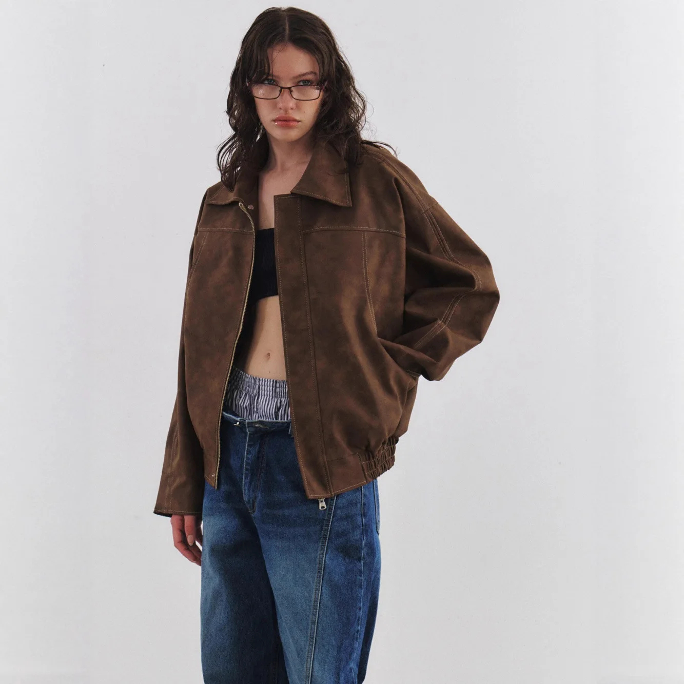 Description: This women’s oversized faux suede jacket is a versatile addition to your wardrobe. Made of stylish faux suede fabric, it keeps you fashionable in autumn and winter. The classic collar and zip design add timeless flair, while the oversized fit ensures comfort. Pair it with skirts, trousers, or tops for a chic look that can be adapted to different occasions. Stay fashionable and confident with this trendy jacket.