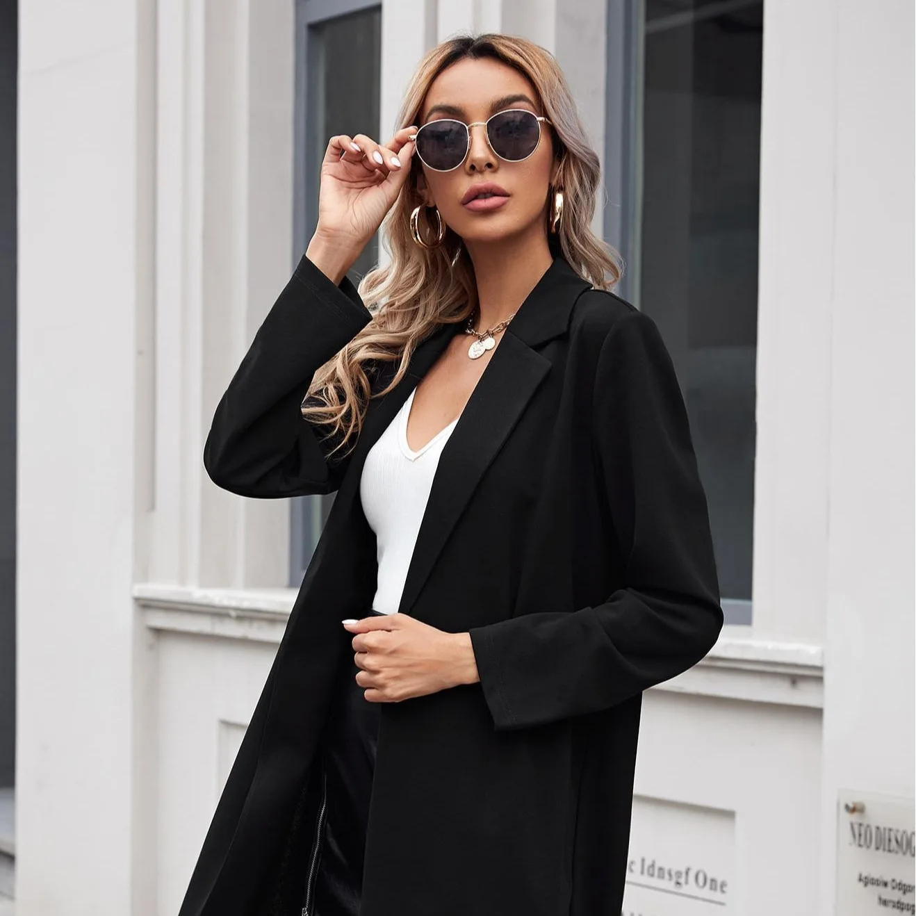 Description: This women’s long-sleeved blazer coat is a versatile addition to your wardrobe. Made of sleek and refined woven fabric, it brings a touch of elegance to any outfit. The classic lapel design adds a timeless detail, and the tailored fit flatters your figure, making it suitable for work, social events, or casual wear. Pair it with trousers, skirts, or jeans and accessorize to create looks that suit various occasions. Stay sophisticated and fashionable with this chic coat.