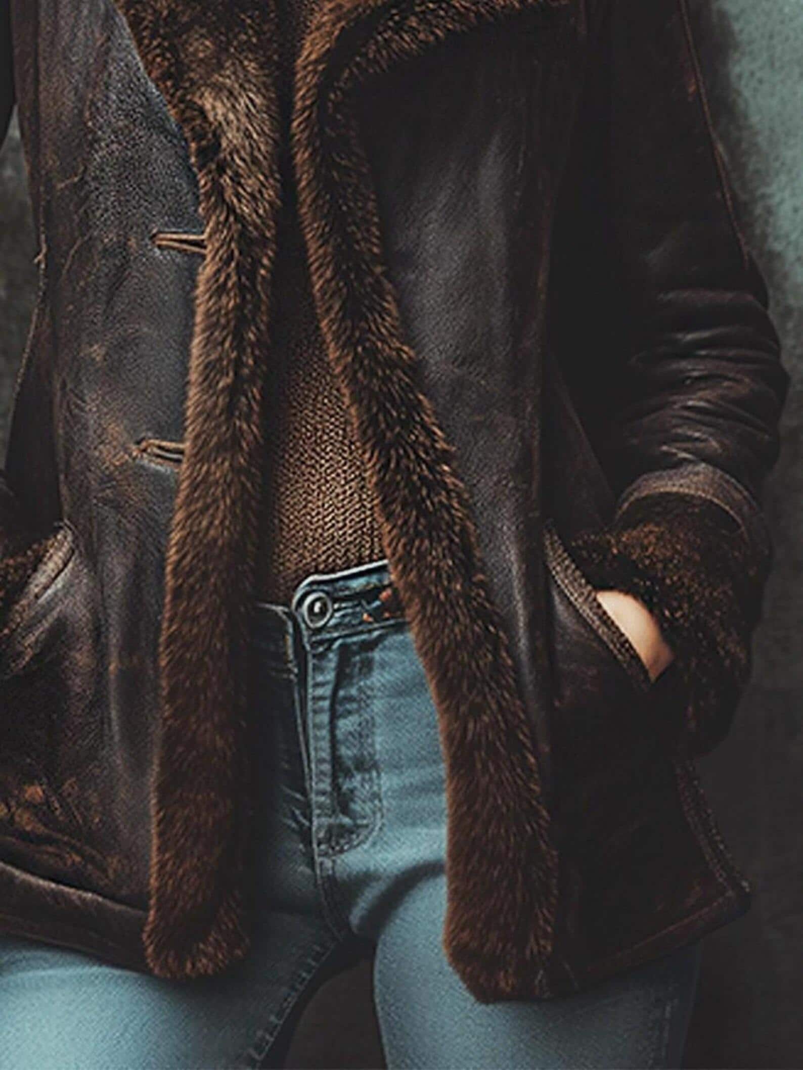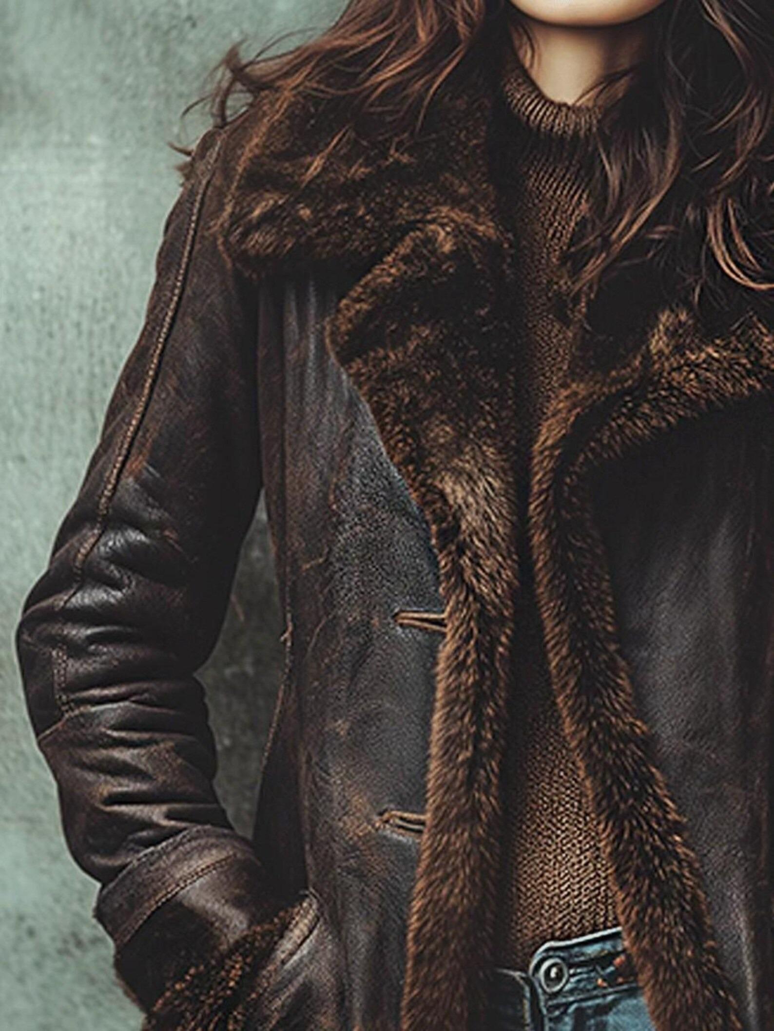 This women’s long-sleeved coat is a luxurious staple for your wardrobe. Made with a sleek faux leather exterior and plush faux fur details, it balances warmth and style for cool-weather wear. The bold fur collar/cuffs, functional pockets, and tailored fit merge practicality with lavish charm, flattering your figure while suiting settings from daily errands to casual gatherings. Pair it with your favorite bottoms and accessories to create a look that feels cozy and confidently stylish—stay fashionable and comfortable with this timeless piece.