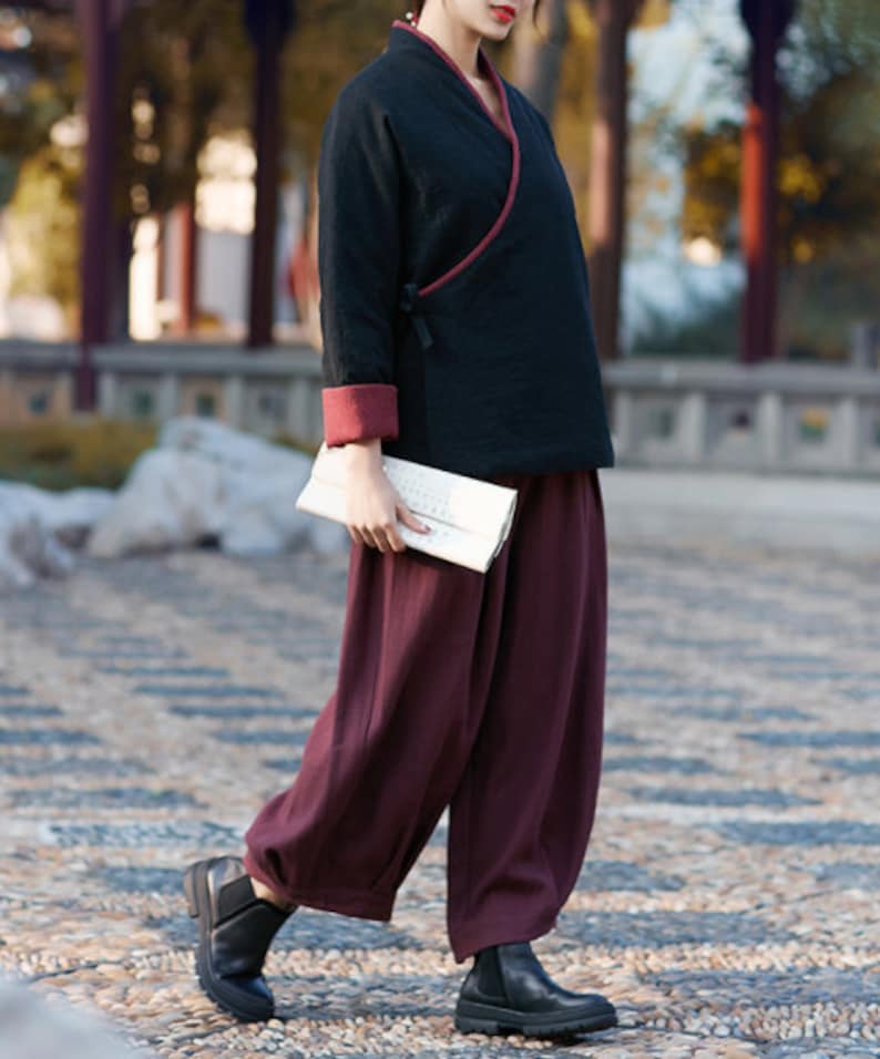 These pants pair effortlessly with structured tops, traditional blouses, or lightweight sweaters. Their adaptable shape works for cultural events, casual outings, or relaxed gatherings—dress them up with boots and accessories, or keep them understated with a simple top, to match any refined occasion.