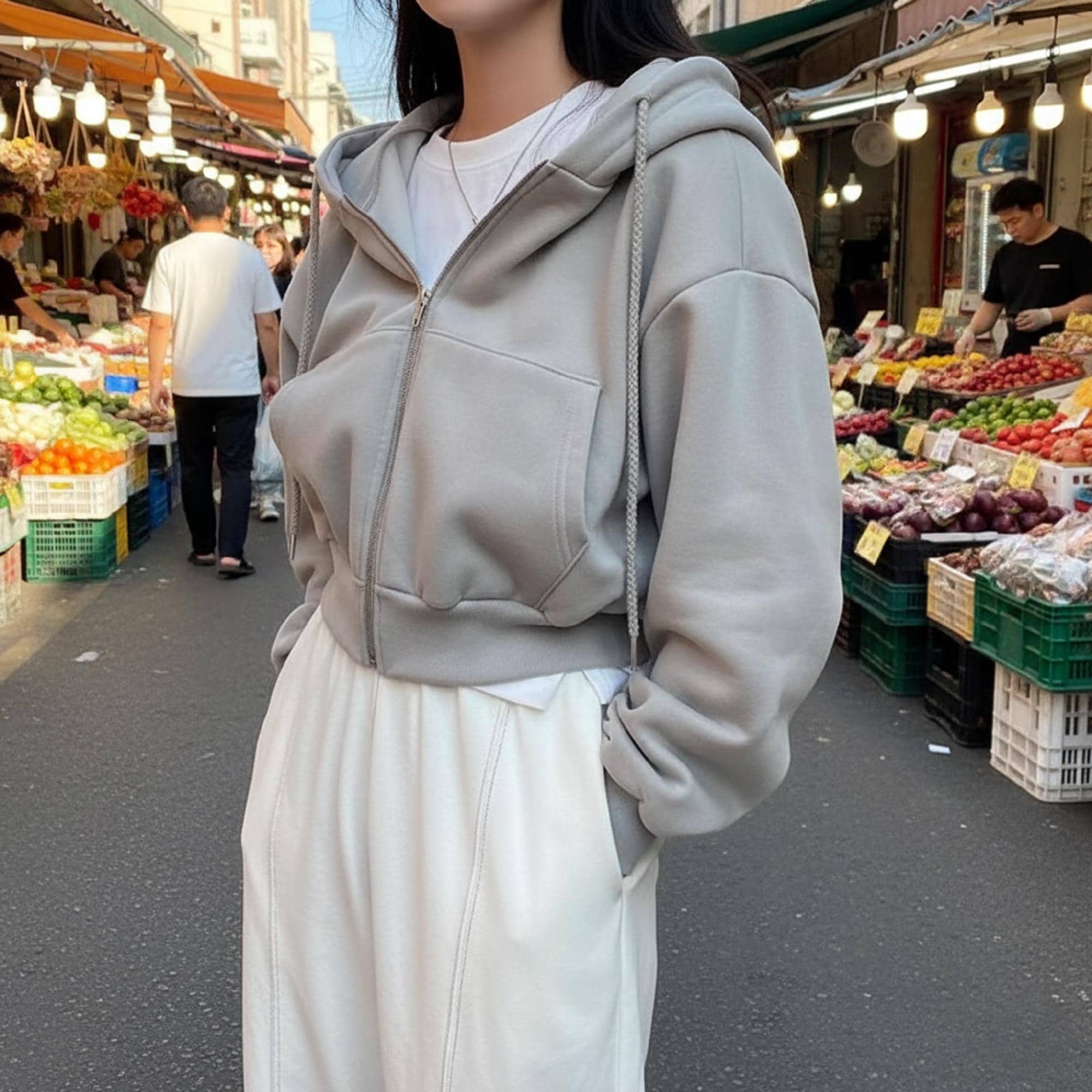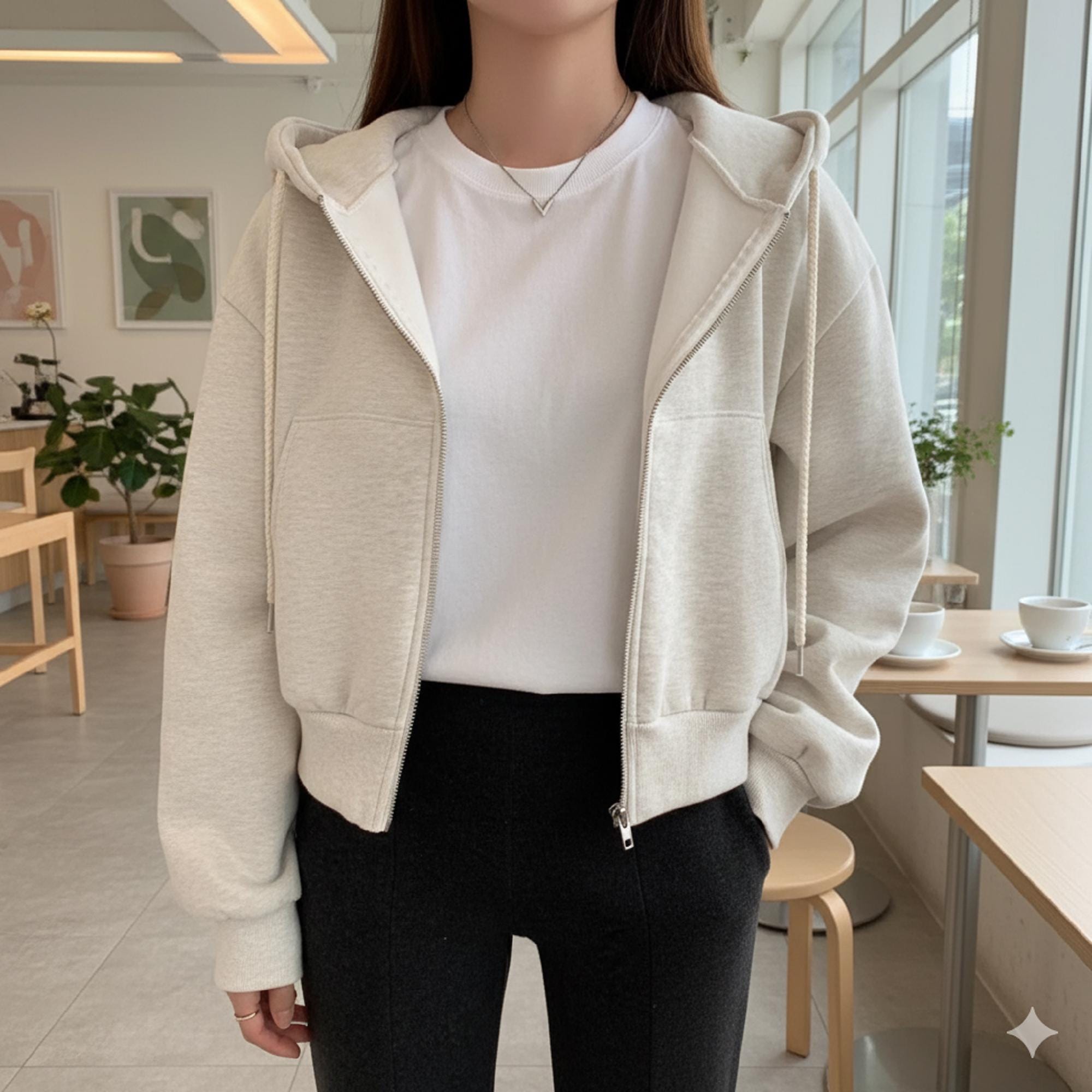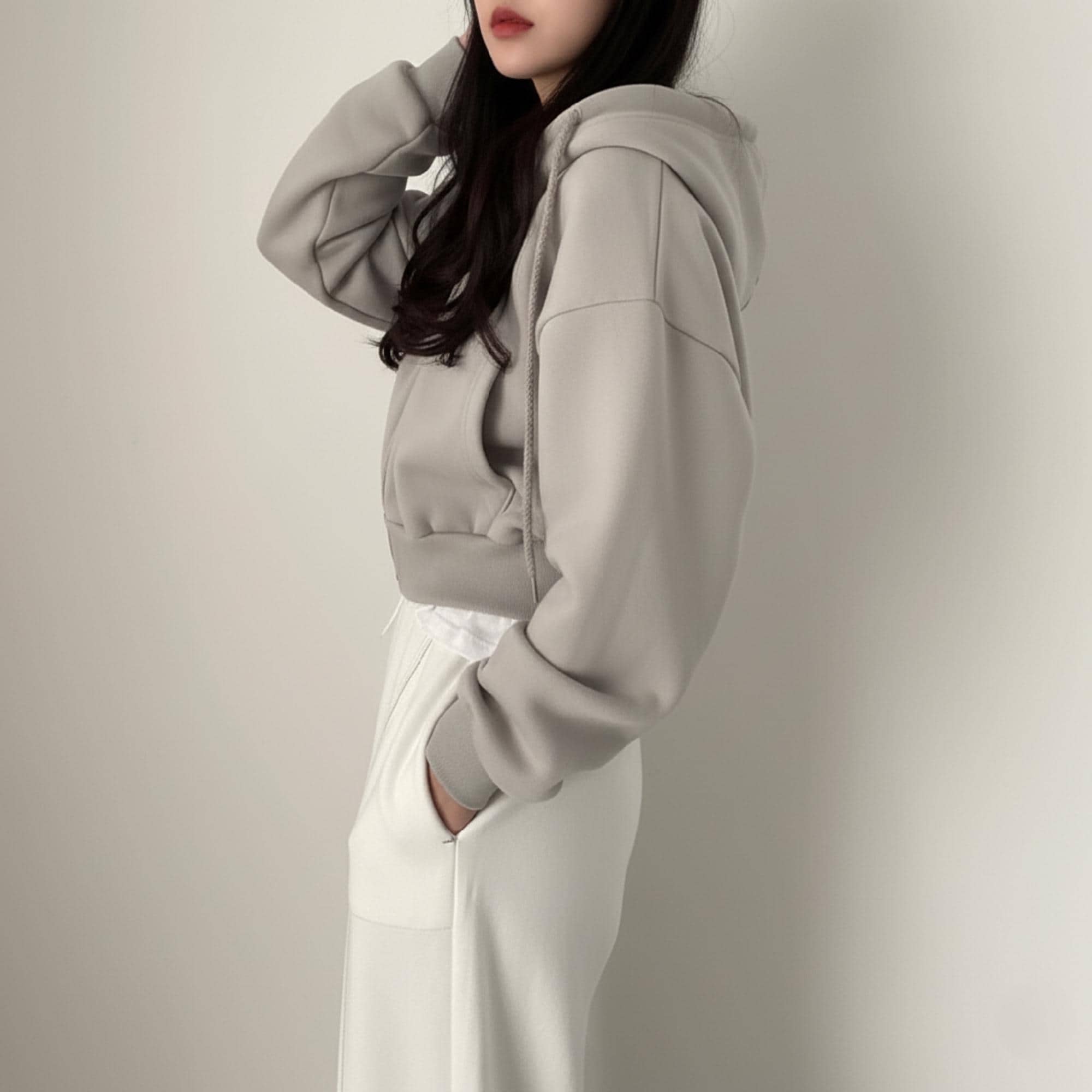 This cropped hoodie is a wardrobe staple that pairs with high-waisted jeans for a casual daily look, wide-leg pants for a polished relaxed outfit, or skirts layered with tights for a chic, modern vibe. Accessorize with sneakers, a crossbody bag, or delicate necklaces to tailor the look to errands, brunch dates, or casual hangouts.