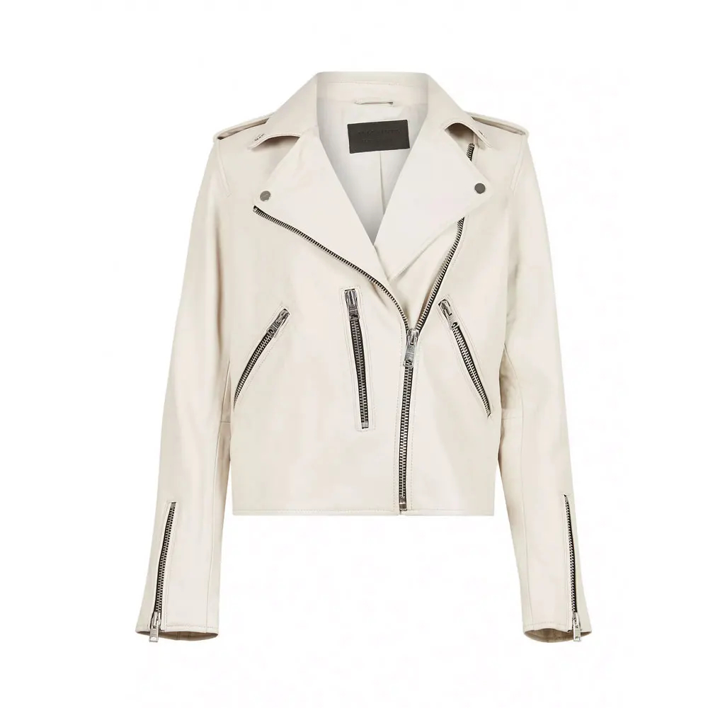 Designed in a tailored moto jacket fit, this long-sleeved piece accentuates your silhouette with a structured collar and asymmetrical front closure. The cropped length adds a modern touch, balancing sophistication and casual cool.
